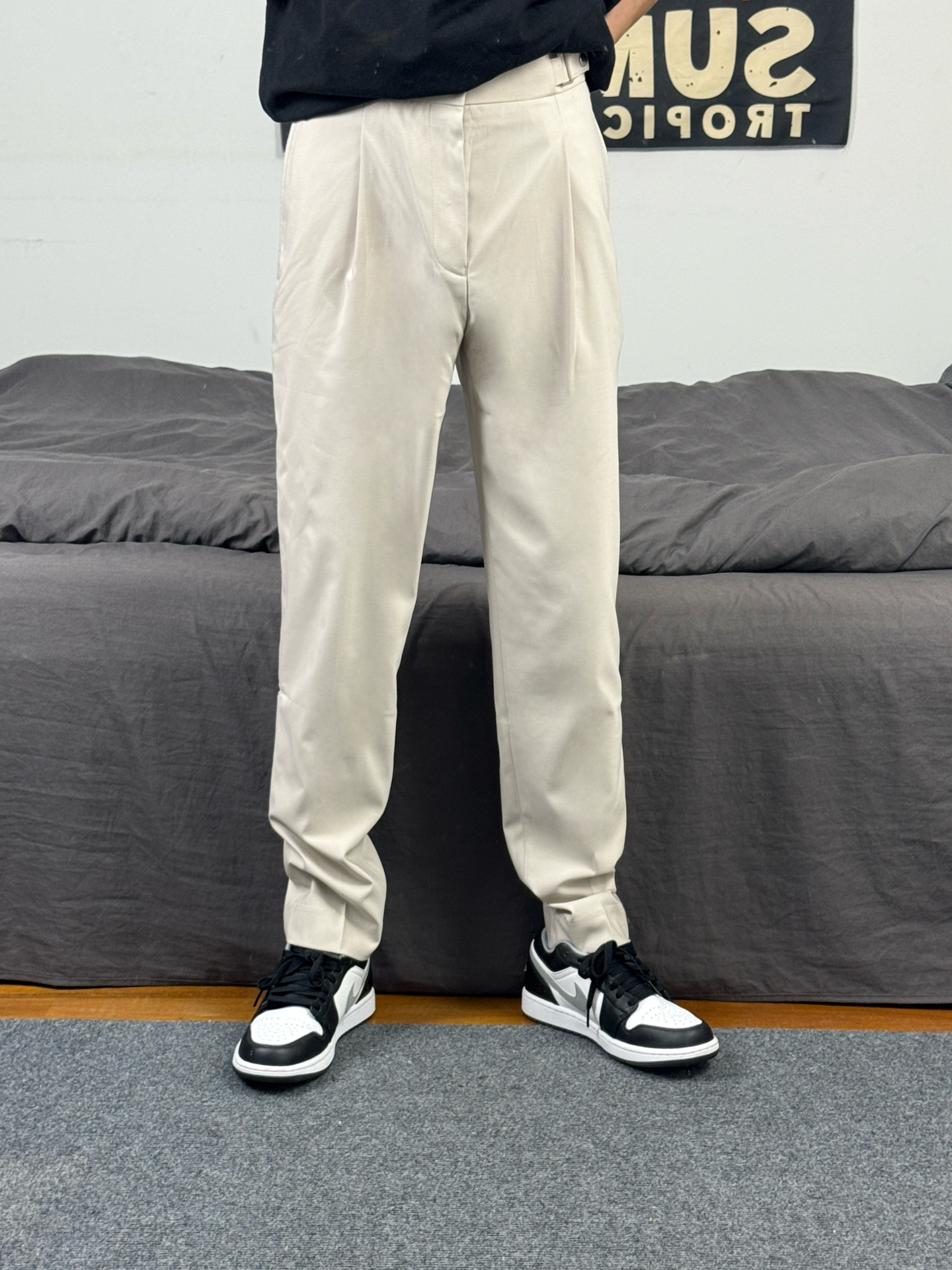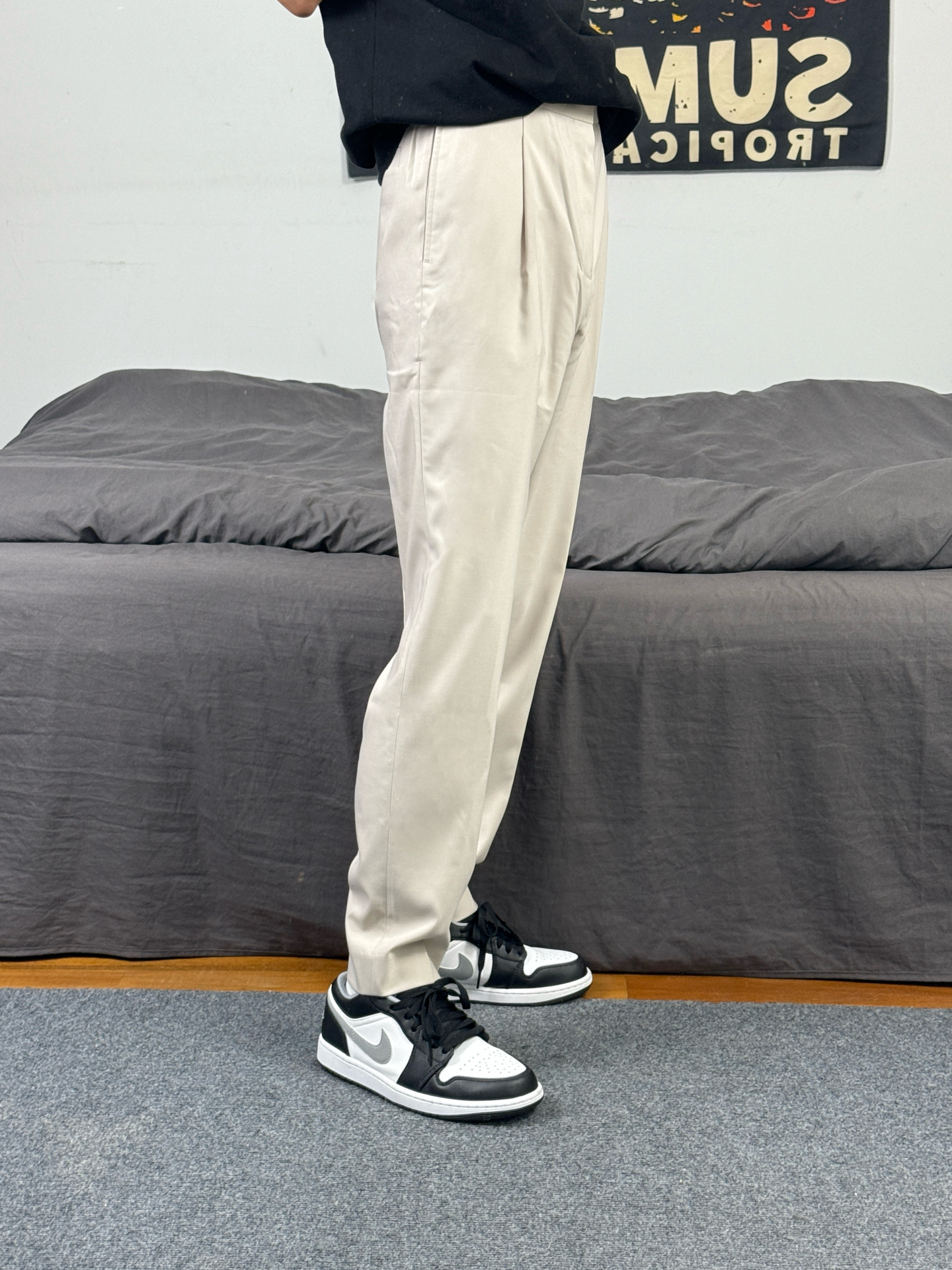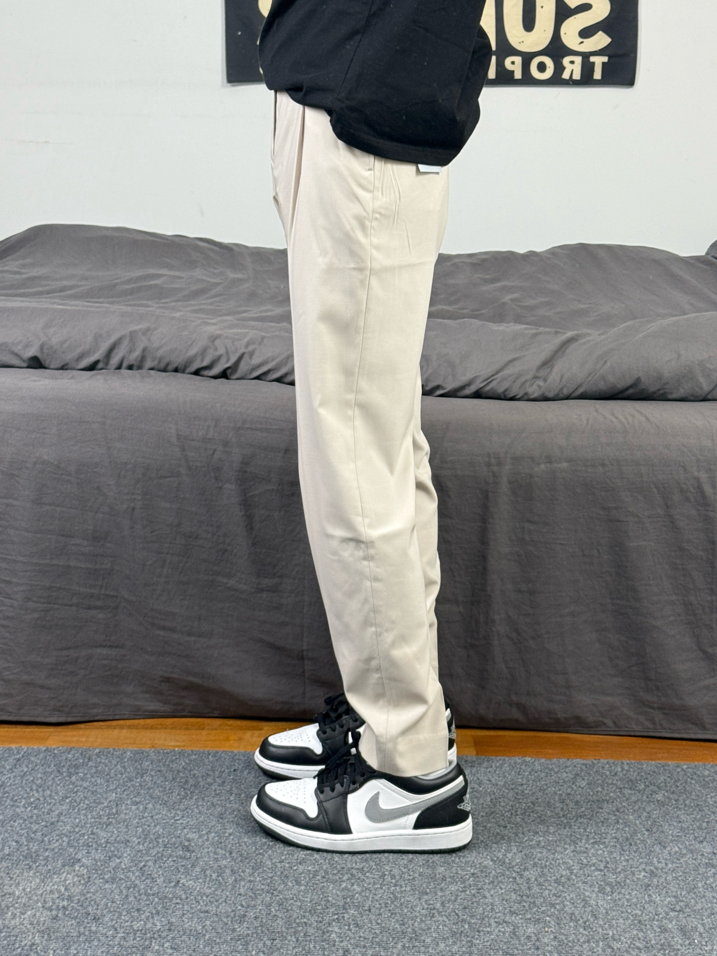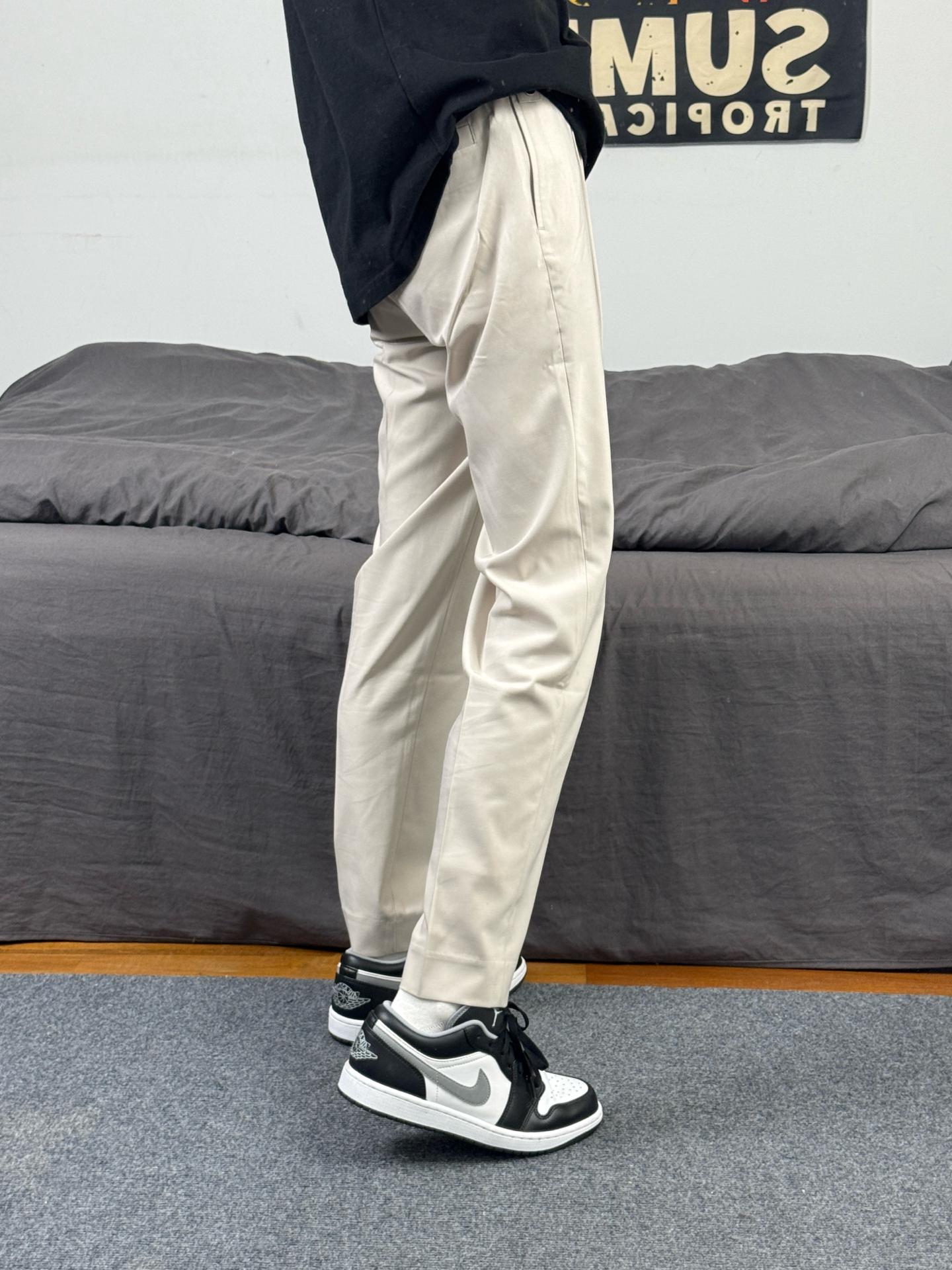 身高174体重48kg 今日上身 黑色短袖+西装裤+aj1影子灰 👕是ck家的黑色重磅短袖 简约版型,胸口有小logo设计 材质偏重磅,上身立挺还舒适 尺码偏大,上身s码宽松效果 👖搭配的 #九牧王男裤专家 家的休闲西裤 款式属于这种直筒版型 上身垂坠还有型 穿在身上特别的舒适 不管是日常穿搭 还是商务出行都能很好的驾驭 👟是aj1影子灰 #这条裤子包舒服的 #春日男生穿搭氛围感 #九牧王...