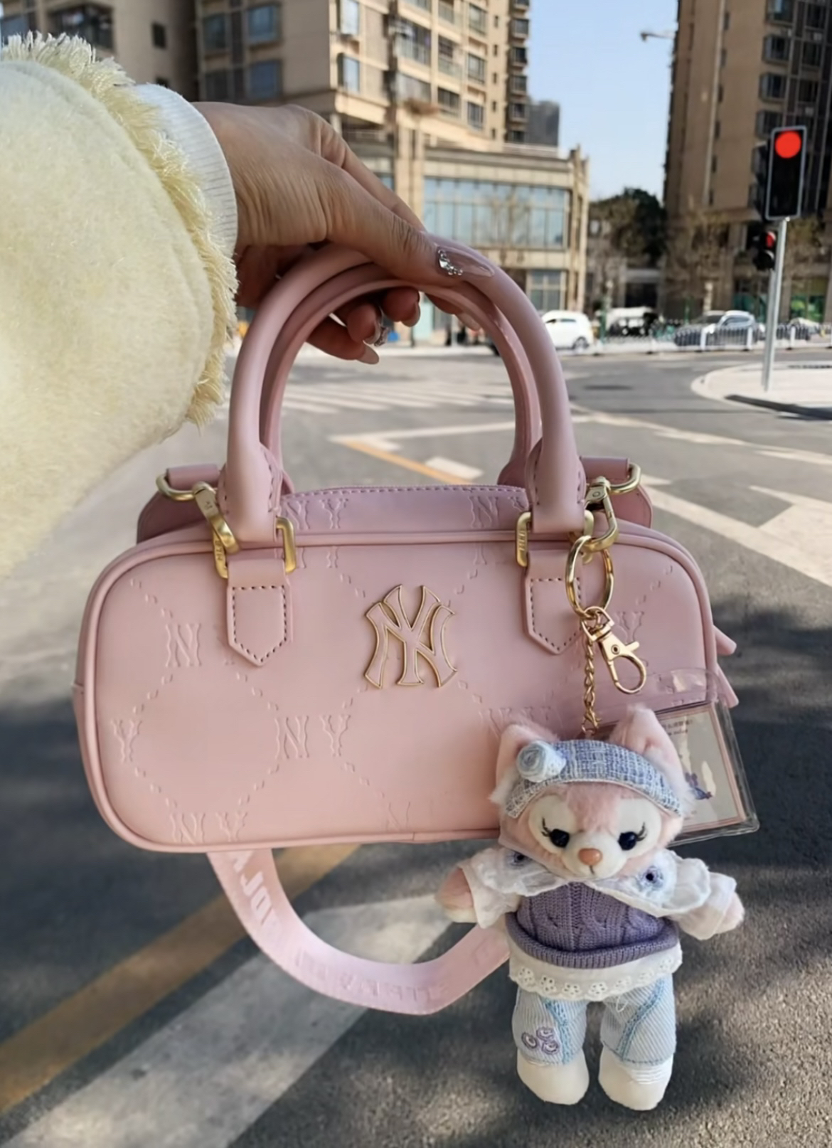 本篇笔记关联了MLB 微标暗纹Logo拉链开合钻石老花混合材质单肩斜挎手提包 粉色等商品,为用户提供真实的使用体验和购买参考。
