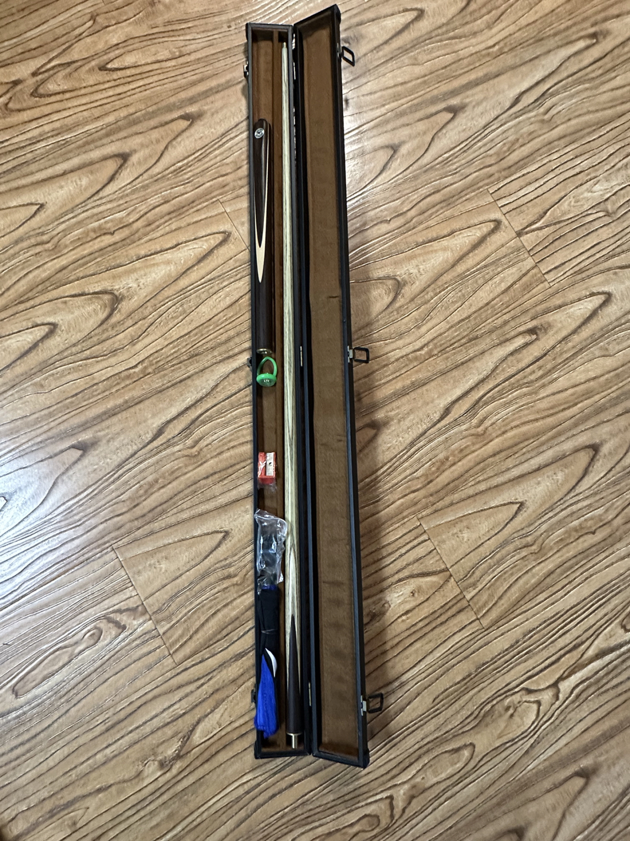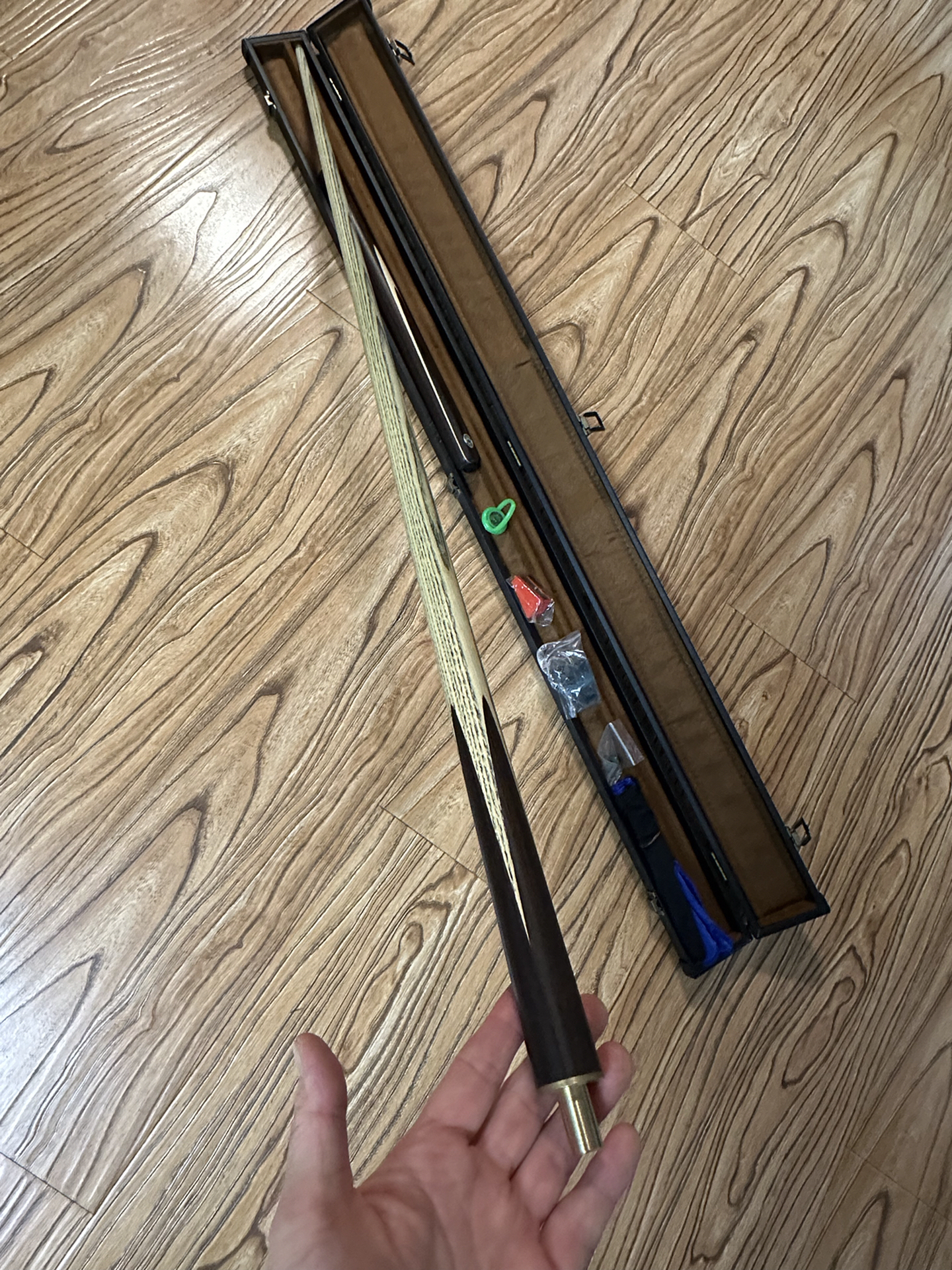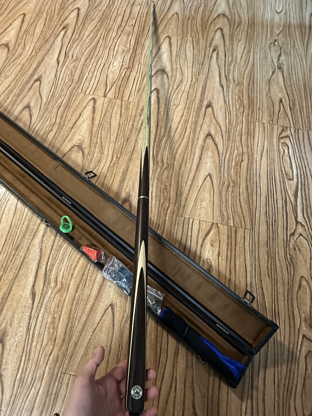 新入的这个健英台球杆还不错 实物拿在手上很有质感,材质好,用着很顺手,比我原来的旧球杆好用多了 打一宿都不觉得累,在朋友们面前也特别有面子哈哈哈哈