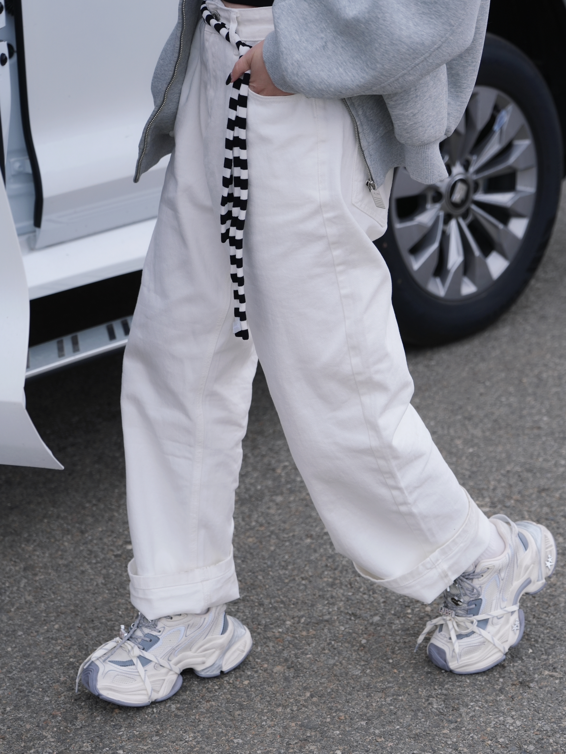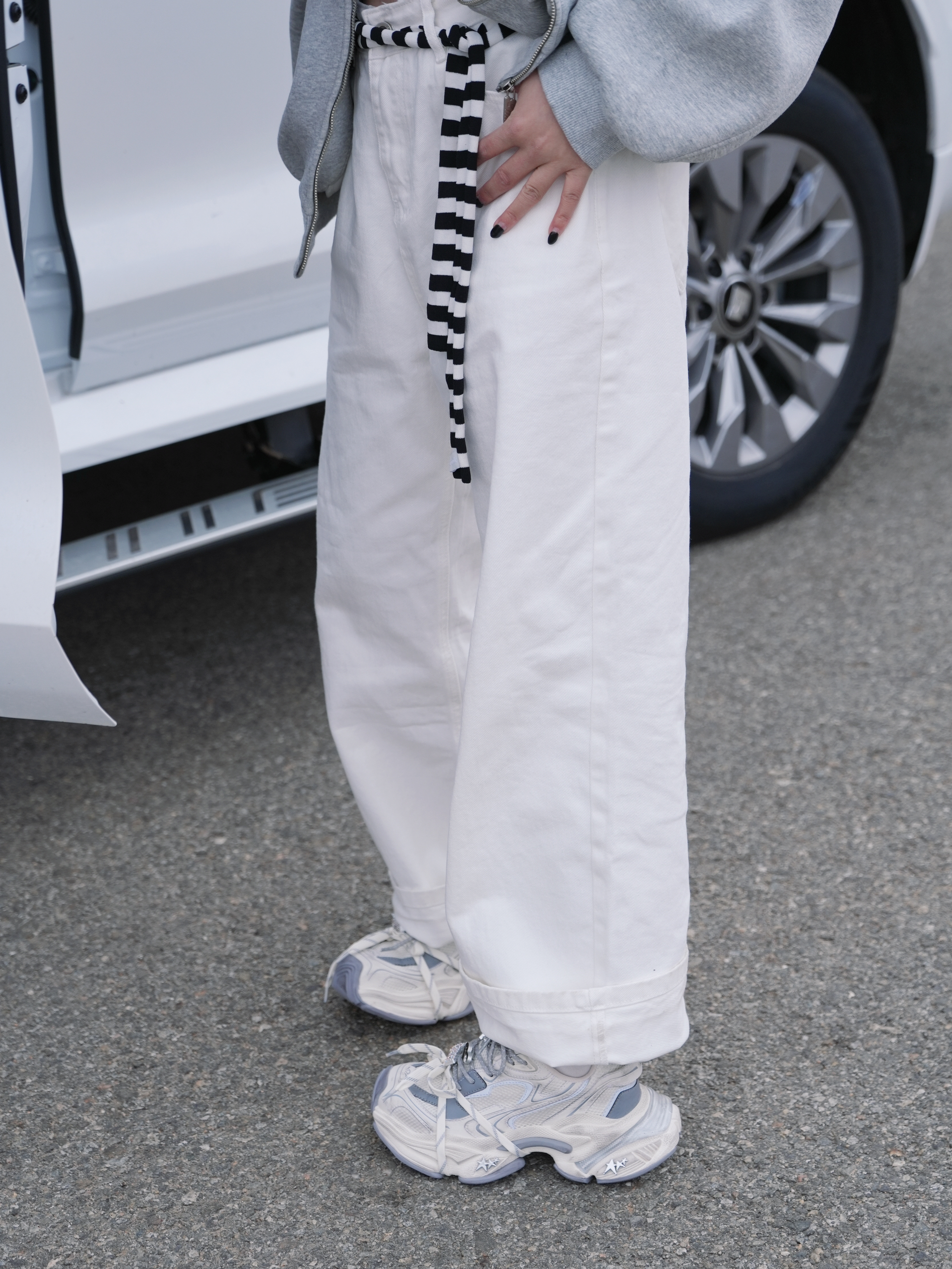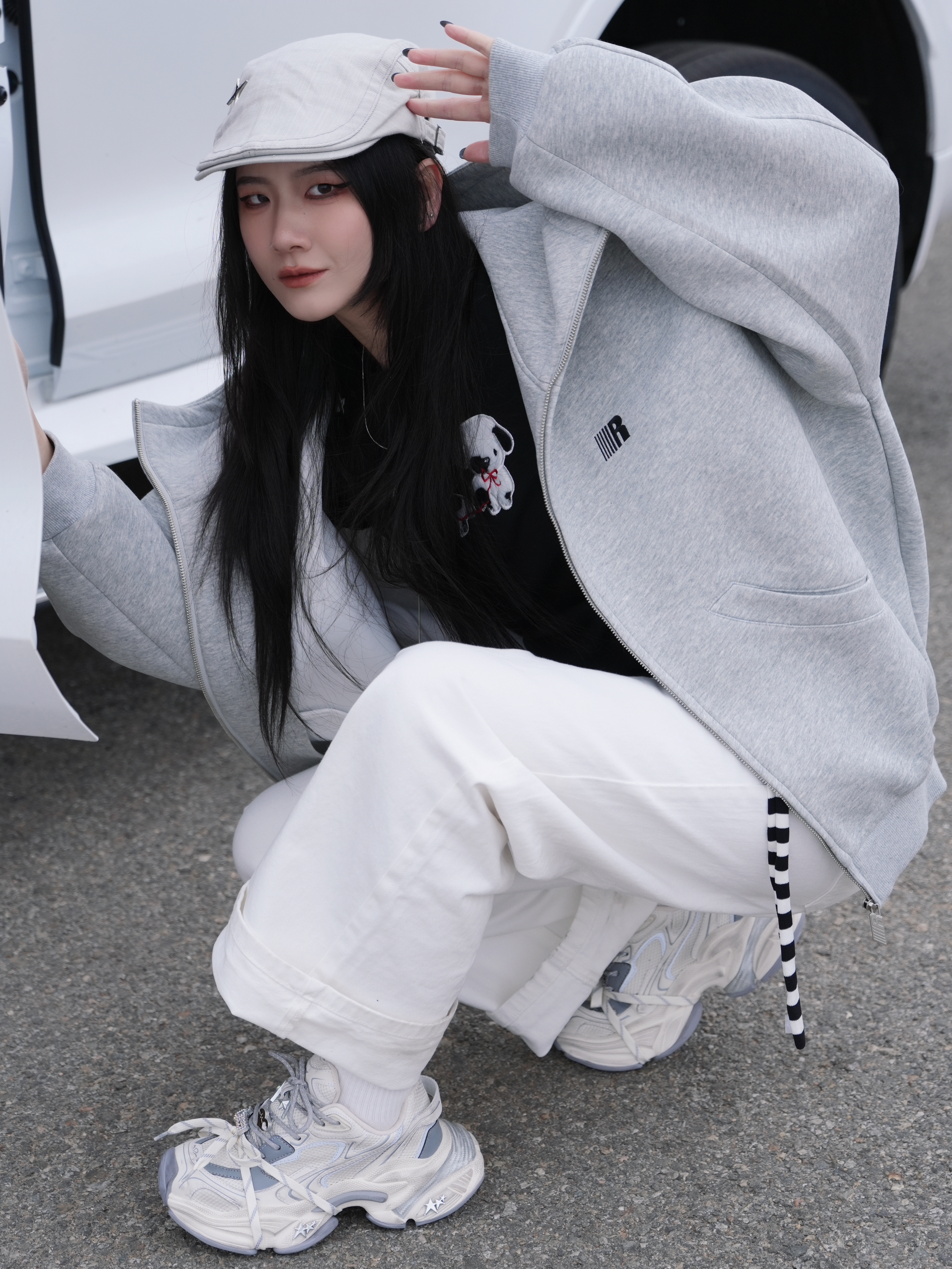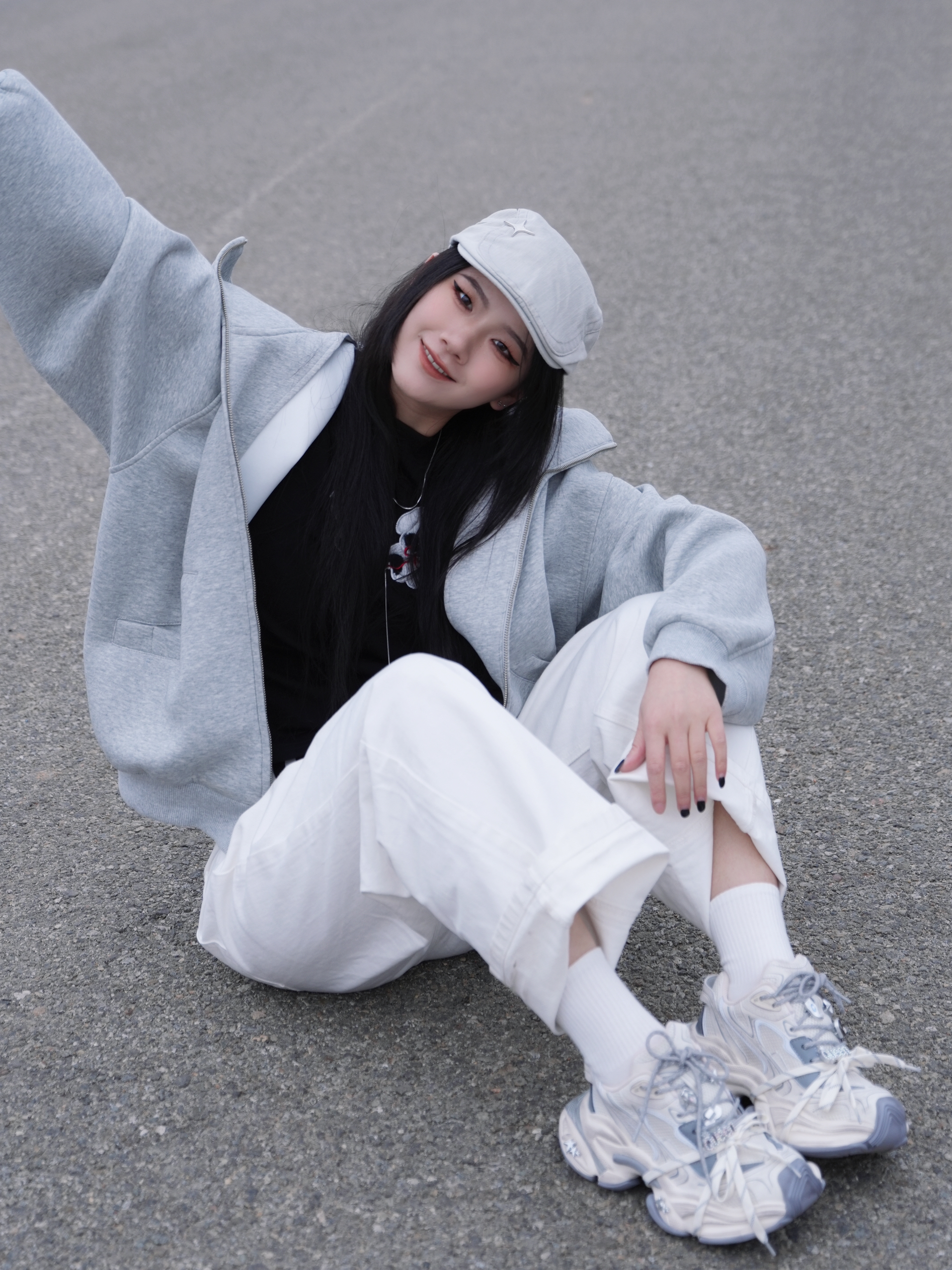 今日份浅色系太适合春夏啦 灰色➕白色就是干净舒适🩶 而且超级清新有活力 连帽卫衣搭配白色直筒裤 美式复古感满满啦 搭配银色的复古老爹鞋 看起来就超🆒超有feel 腰间加了一条黑白撞色丝带 让look更有时髦度啦 这套穿出门就是自由随性的复古girl啦✌️