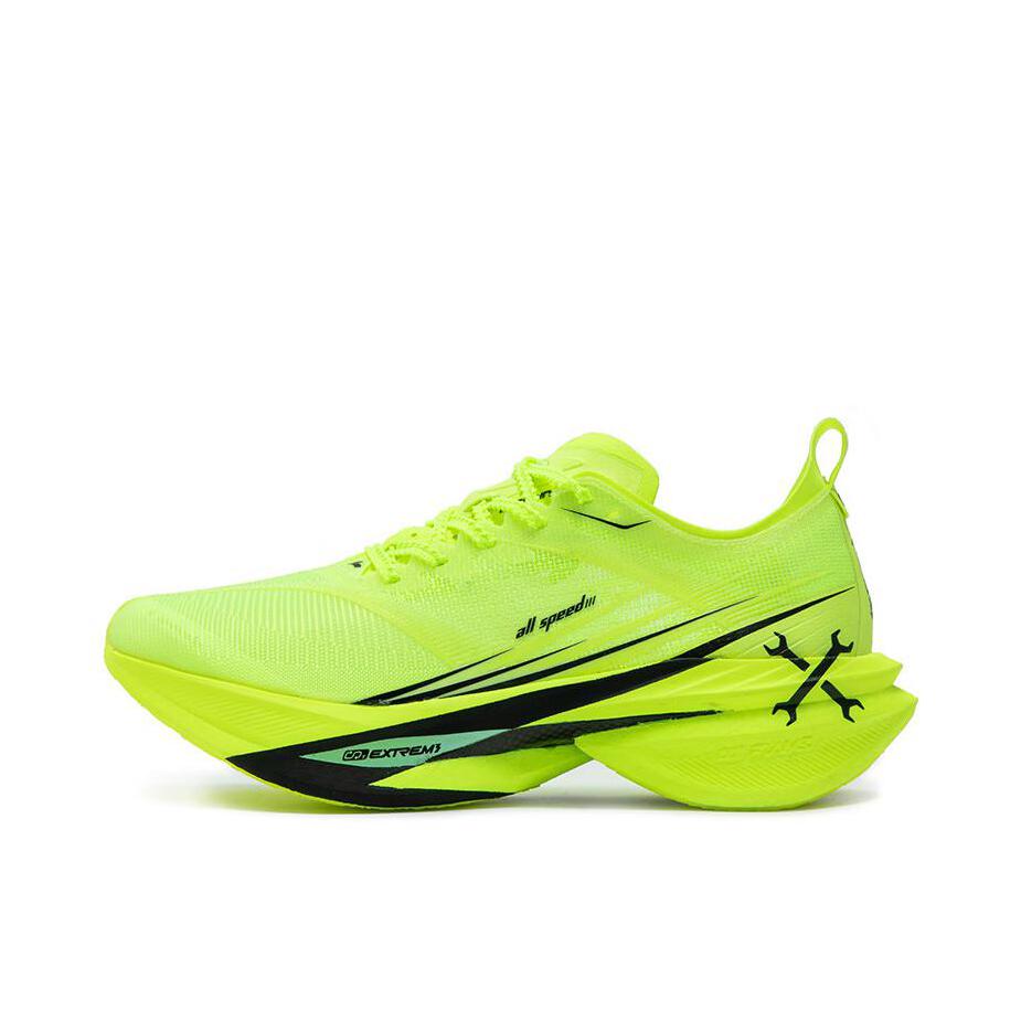 全掌CQT中底搭配加强筋异形碳板,提供强劲回弹和缓震。 前掌推进力提升15%,后跟缓冲量达20mm。 大底采用PRU材质,抓地力强,适合多种路面。 分离式中底设计,适配90%跑姿。 能量回馈效率高,适合长距离跑步。