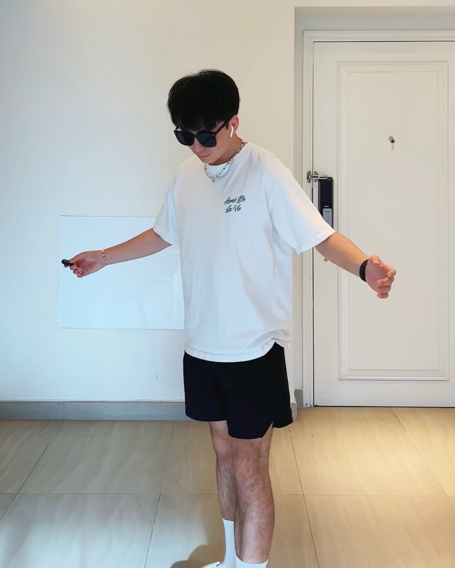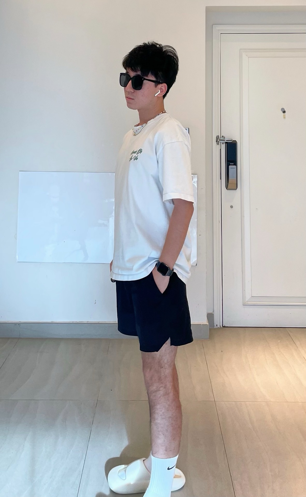 👔: 简单宽松的白T 我很喜欢的是这种前面小logo 背后大logo的设计 前面后面都有料 背后的绿色印花不是简单的热熔胶,而是很有质感的材质 上身会显得更有气质 ——— 🩳: 短裤就是一条低调的黑色直筒短裤 裤子长度在膝盖以上,更显高 Logo也是设计成了黑色的样子,让整条裤子更干净 再搭配白袜白鞋 简单的夏天Cleanfit穿搭就大功告成啦! ——— 尺码: 我173 124 T:1码 裤:1...