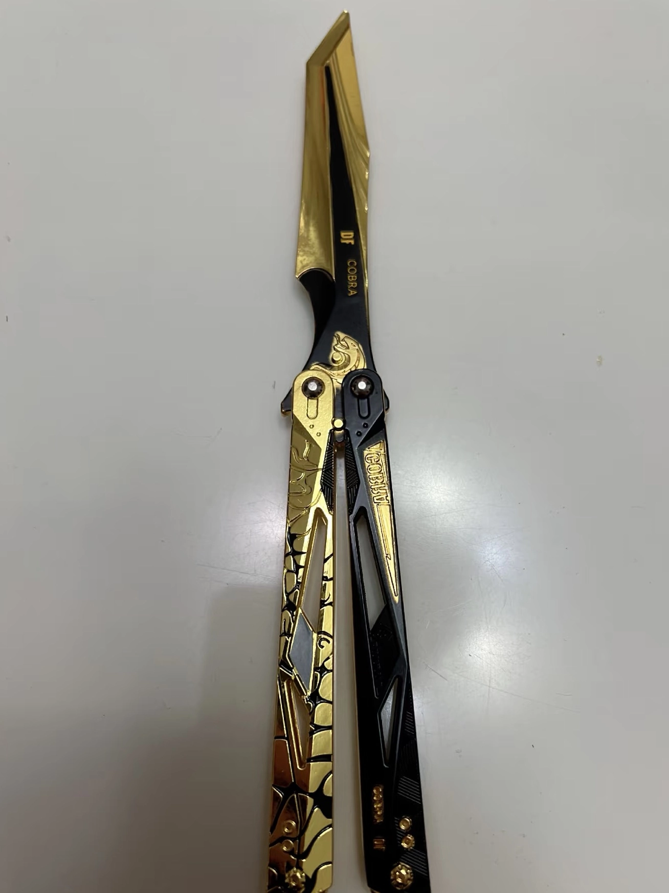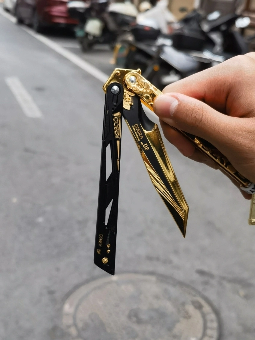 《三角洲行动》粉丝有福啦!这款金色影锋蝴蝶刀周边,将游戏里的帅气装备完美复刻。它以蛇为灵感,刀柄精准还原蛇鳞纹理,摸起来顺滑又带着恰到好处的摩擦感。中部那条金色的蛇装饰,逼真灵动,与整体黑金配色相得益彰,奢华质感扑面而来。 虽为周边,但开合设计流畅,把玩时刀片翻飞,金色刀身反射出耀眼光芒,仿佛自带聚光灯。它不仅是酷炫摆件,更能让你在家中尽情模仿游戏里的耍刀动作,沉浸式体验三角洲战场的紧张刺激,彰显...