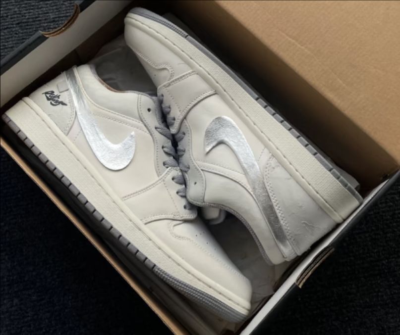 以为AJ1只能当收藏品?这双「海盐苏打」直接穿进生活圈🔥!奶白皮质泼上冰蓝颜料,银色大钩像被零下50℃速冻的液态金属,上脚瞬间连地铁闸机都为我降了3℃🌬️。实测通勤两小时彩蛋: ✅ 鞋舌暗藏冰川裂纹字体,蹲下系鞋带时被同事误认成神秘潮牌logo📸 ✅ 减震鞋垫踩着像踩碎海盐奶盖,暴走两万步后脚底板还在哼《冰与火之歌》🎶 ✅ 网眼内衬透气到能听见风穿鞋而过——昨天穿它挤早高峰,隔壁大哥盯着我鞋问:“...