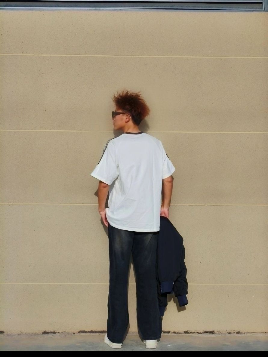 🔗183cm/65kg/XL码 肩膀处三道杠的设计 真的是点睛之笔 很吸引人☺️ 这件短袖给人的感觉就是很适配 满满的少年感🌞 ~~~ 穿搭技巧答案 穿上就是直接出门 不会有搭配出错的烦恼 这就是百搭短袖的魅力😍