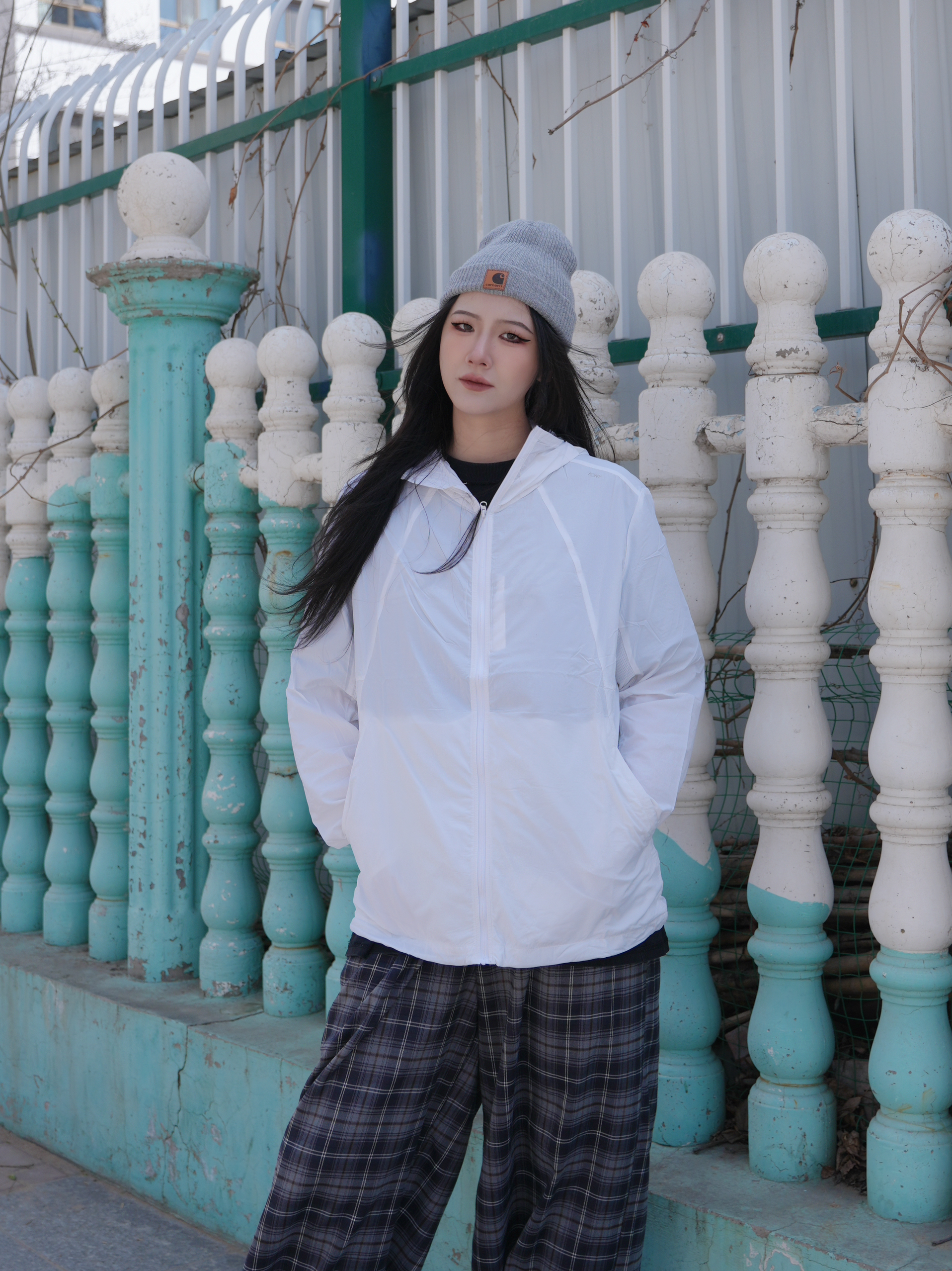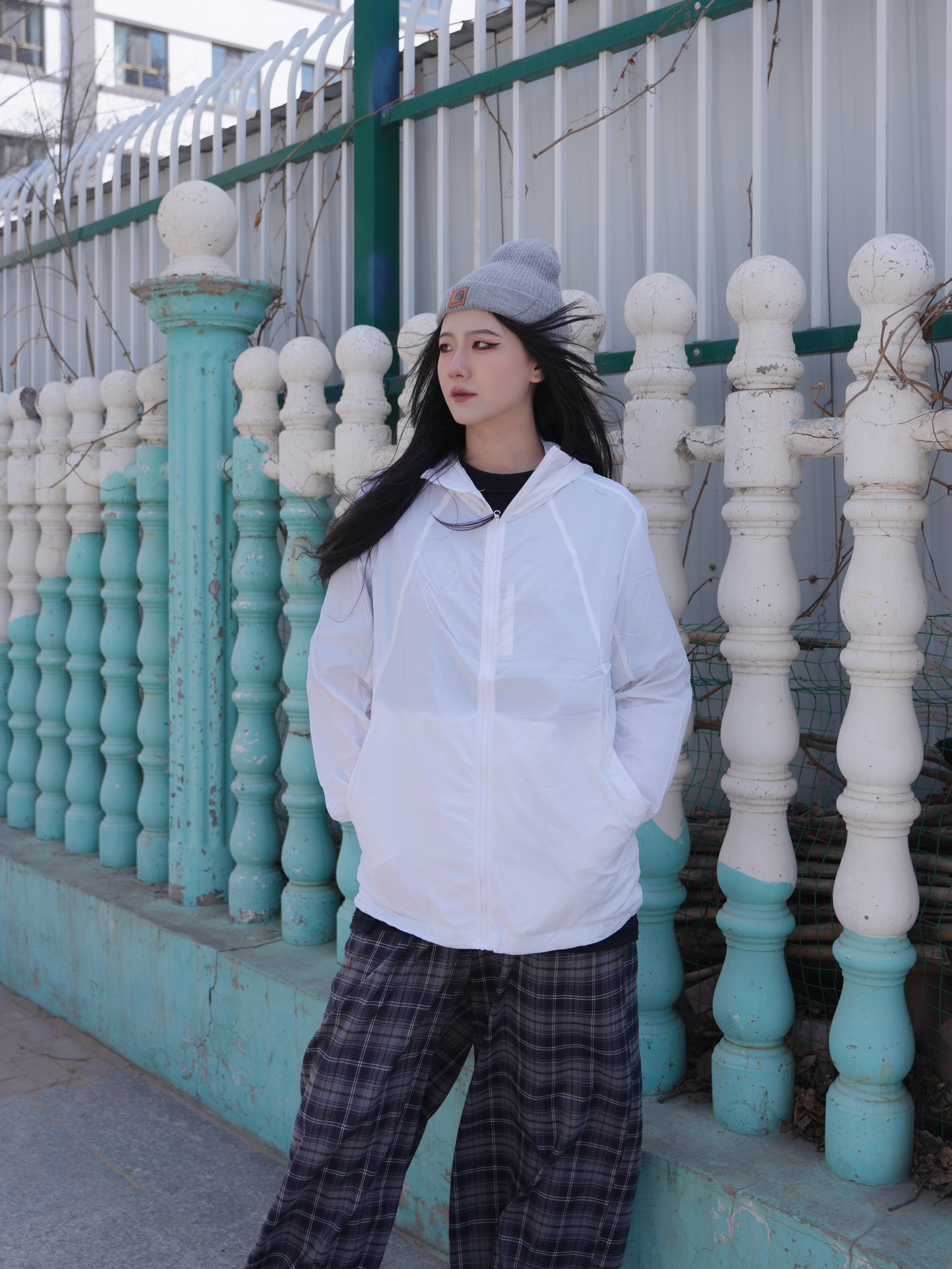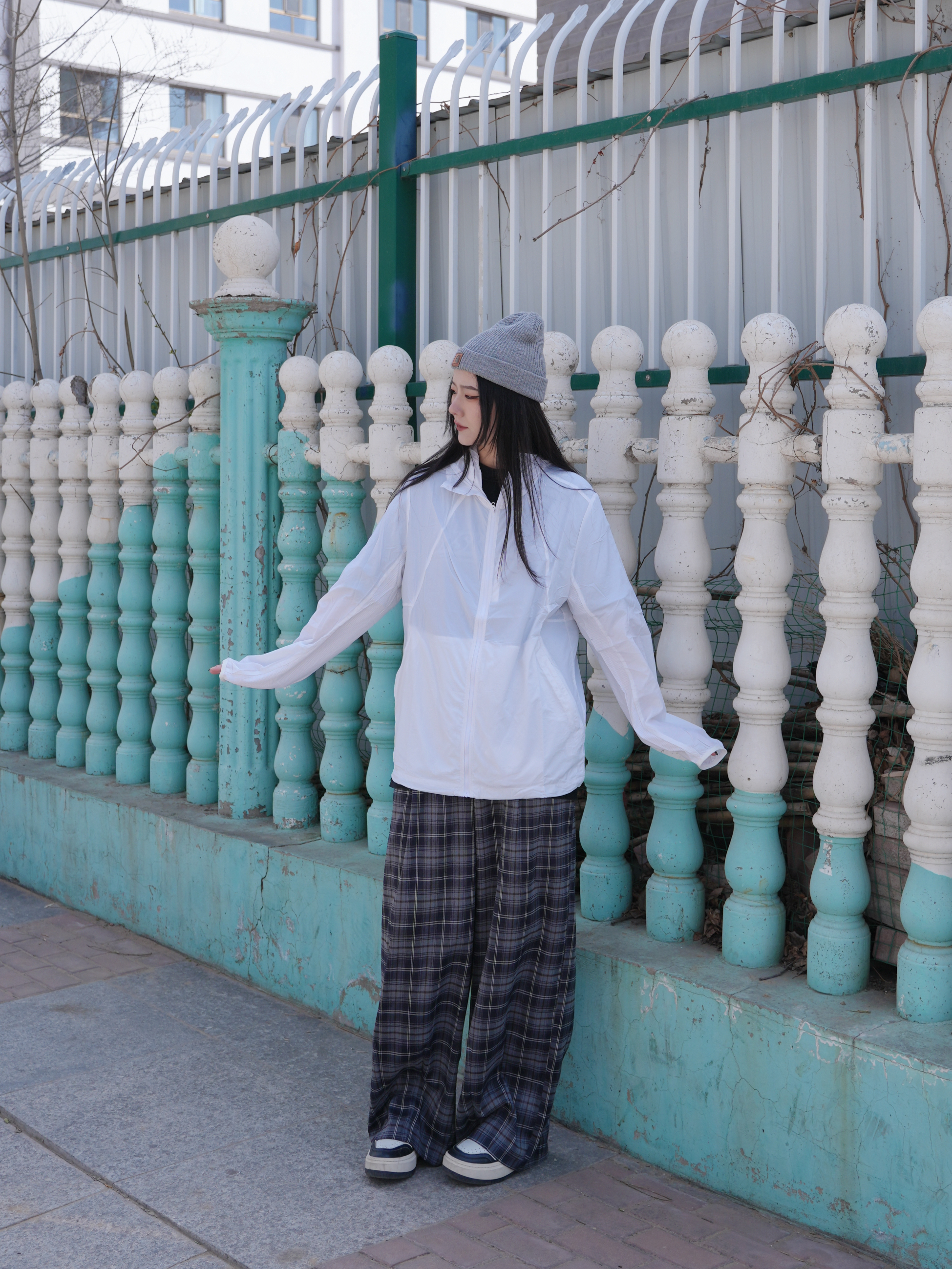 今日份升温天气出门 一件防晒➕短袖就刚好 白色系也是很适合春夏啦 搭配格子阔腿裤就是小日系松弛感 内搭黑色可以增加一点层次✌️ 帽子选了中和色灰色 看起来就是简简单单很舒适 这套也是小出片的感觉啦~ ————