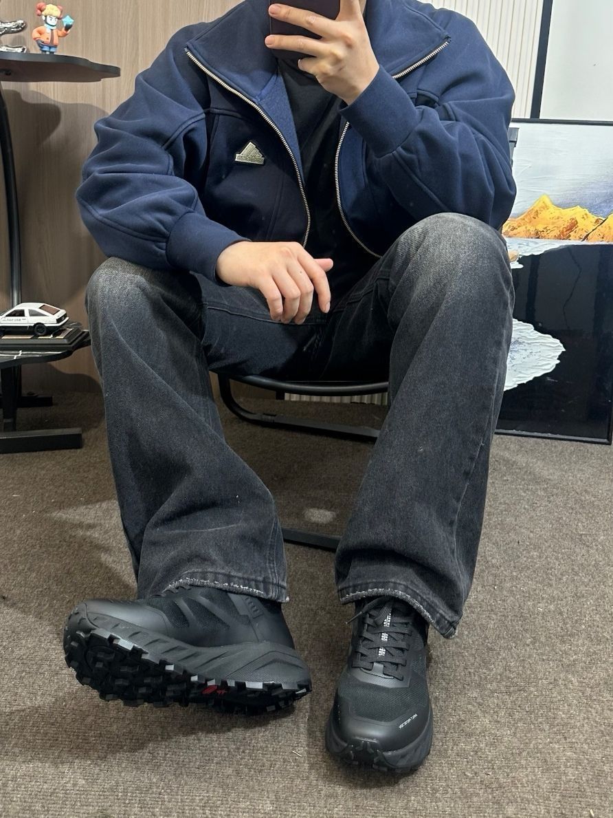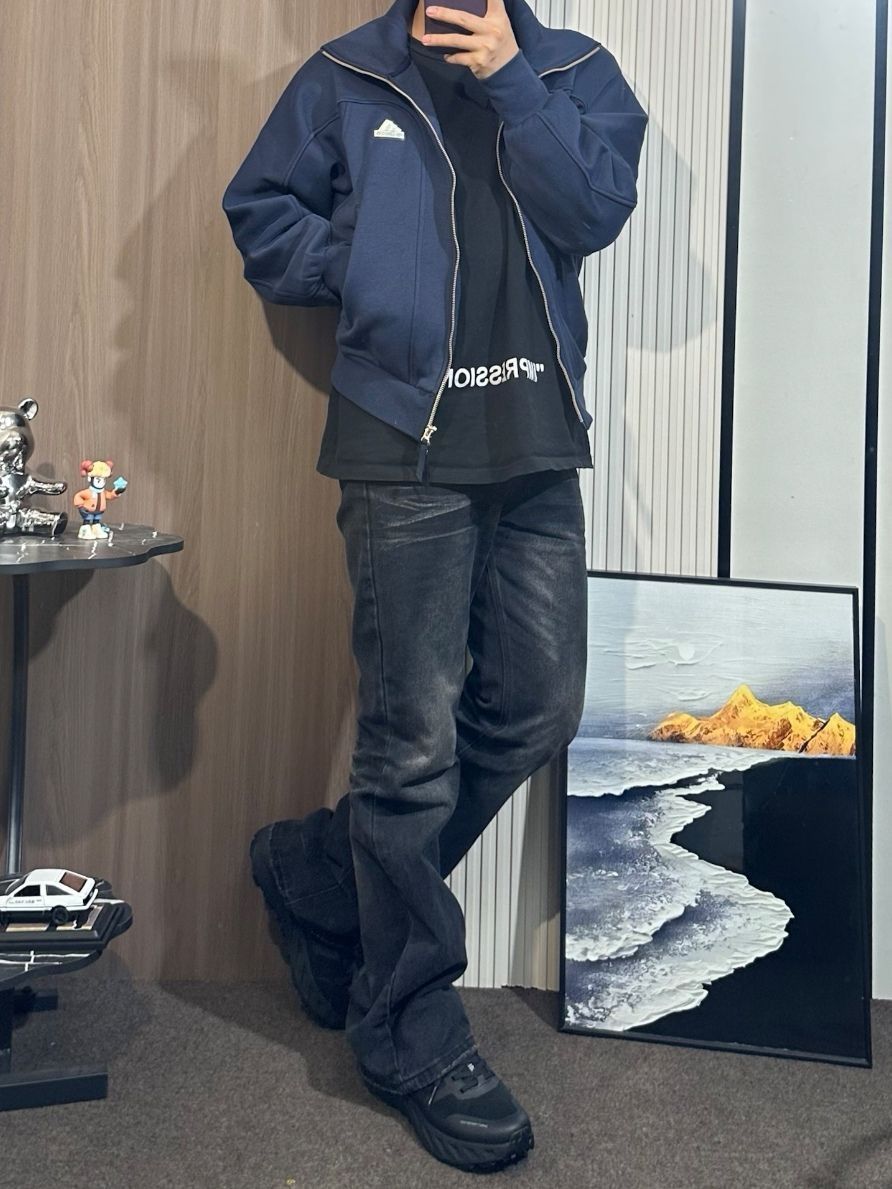 🤣堪称松弛运动风的灵魂单品! 😎立领设计简洁利落,水墨蓝配色高级独特,针织面料亲肤柔软,大幅度活动也不会有束缚感。 😍内搭黑色T恤,下身搭配灰色水洗牛仔裤,随性中又透着活力。 图源网络侵删