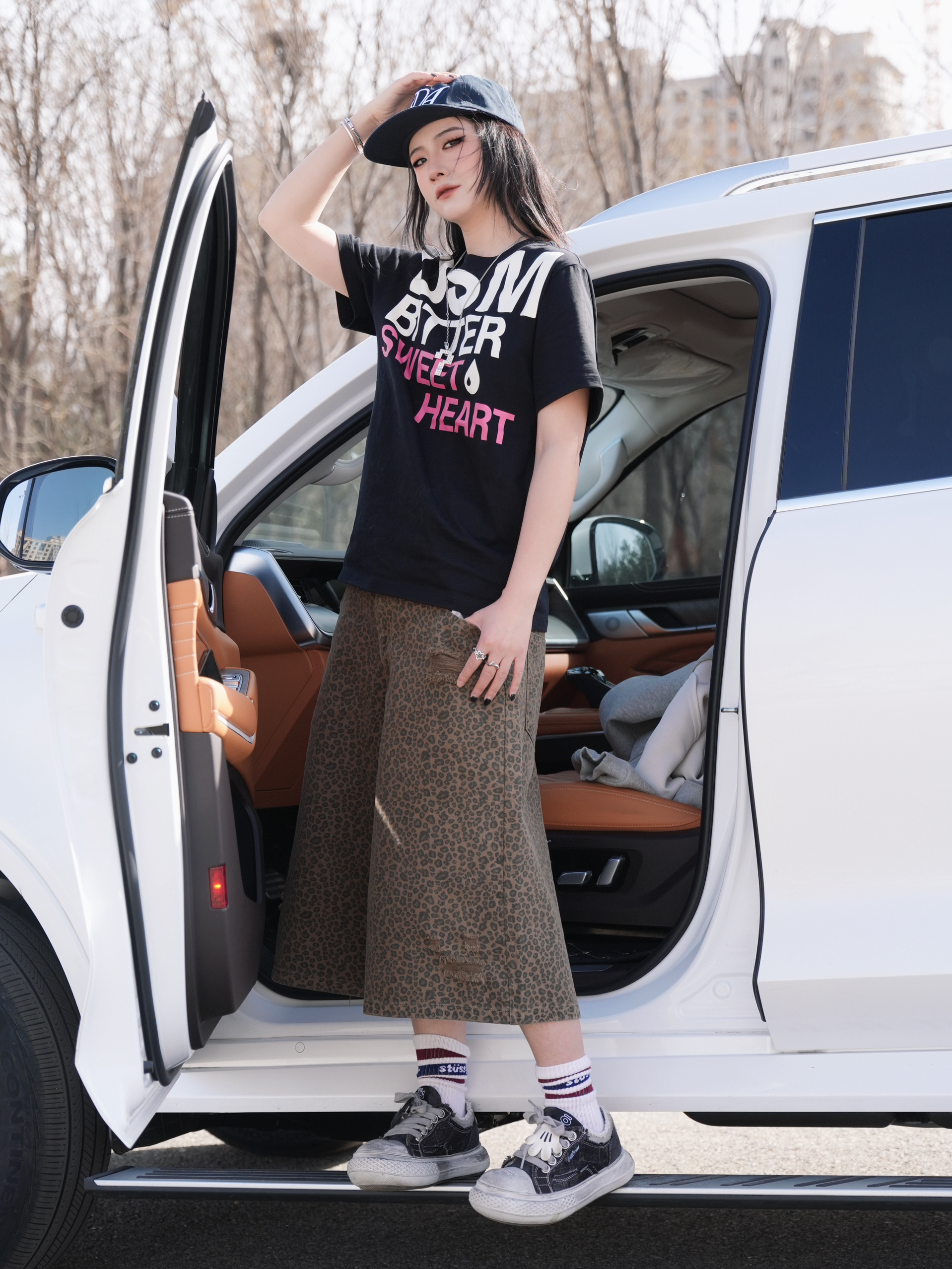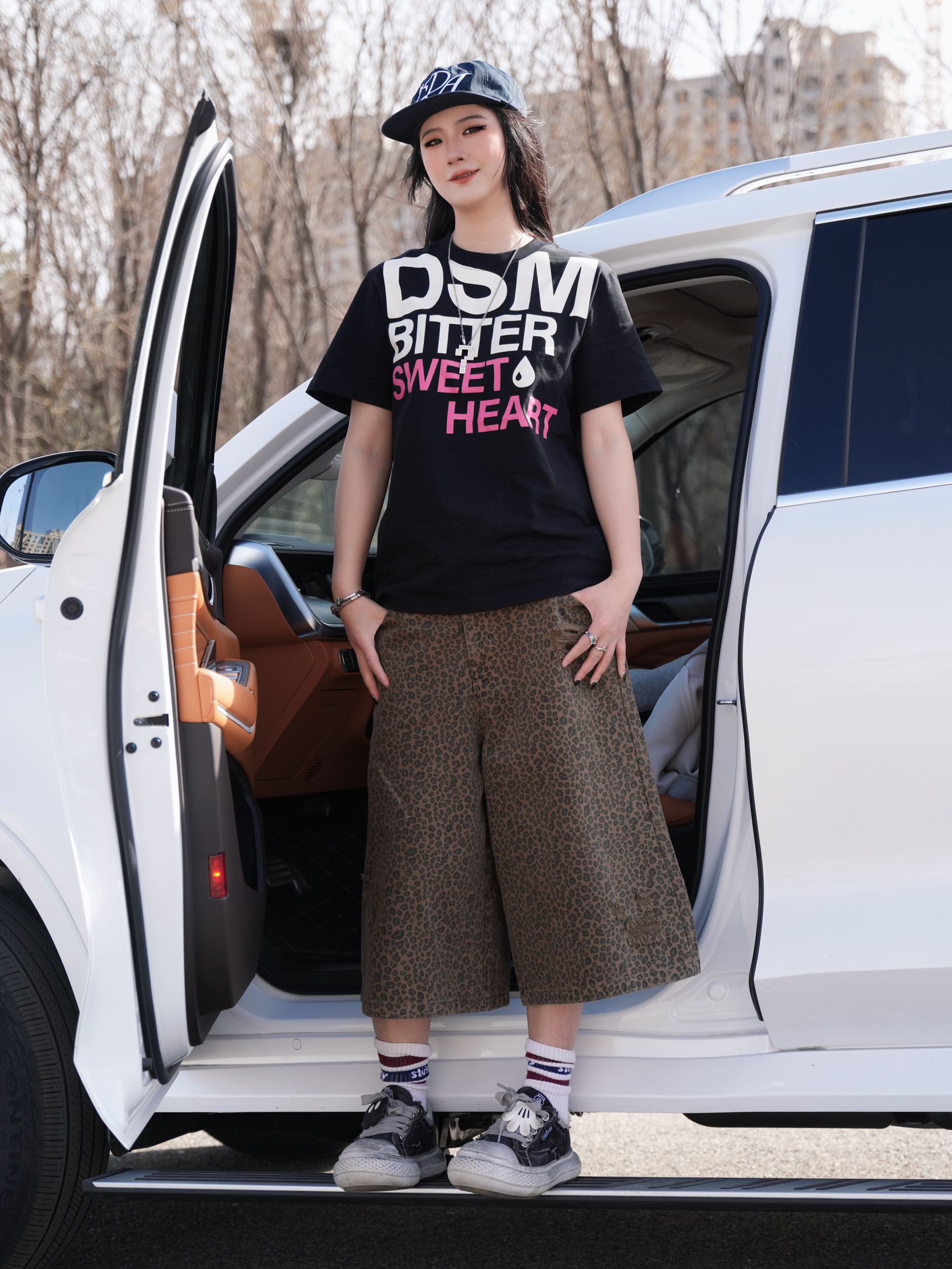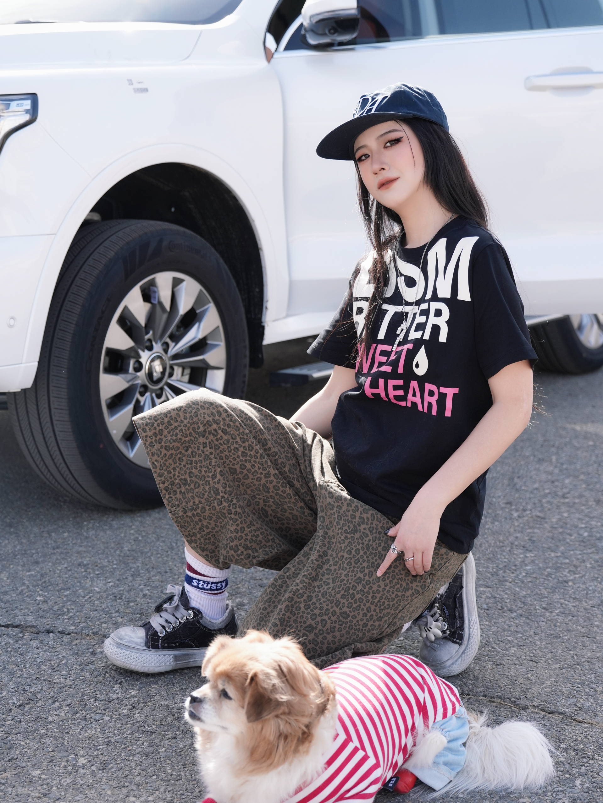天气好就要活力满满呀 我和小狗的穿搭也撞上咯 都是色彩缤纷的感觉呢✌️ 超大字母印花T真的太适合春夏啦 搭配豹纹中裤就是一整个时髦 升温的天气这么穿真的刚好 再来一双米奇大头鞋 又复古又很🆒 真的很难不爱嘻嘻