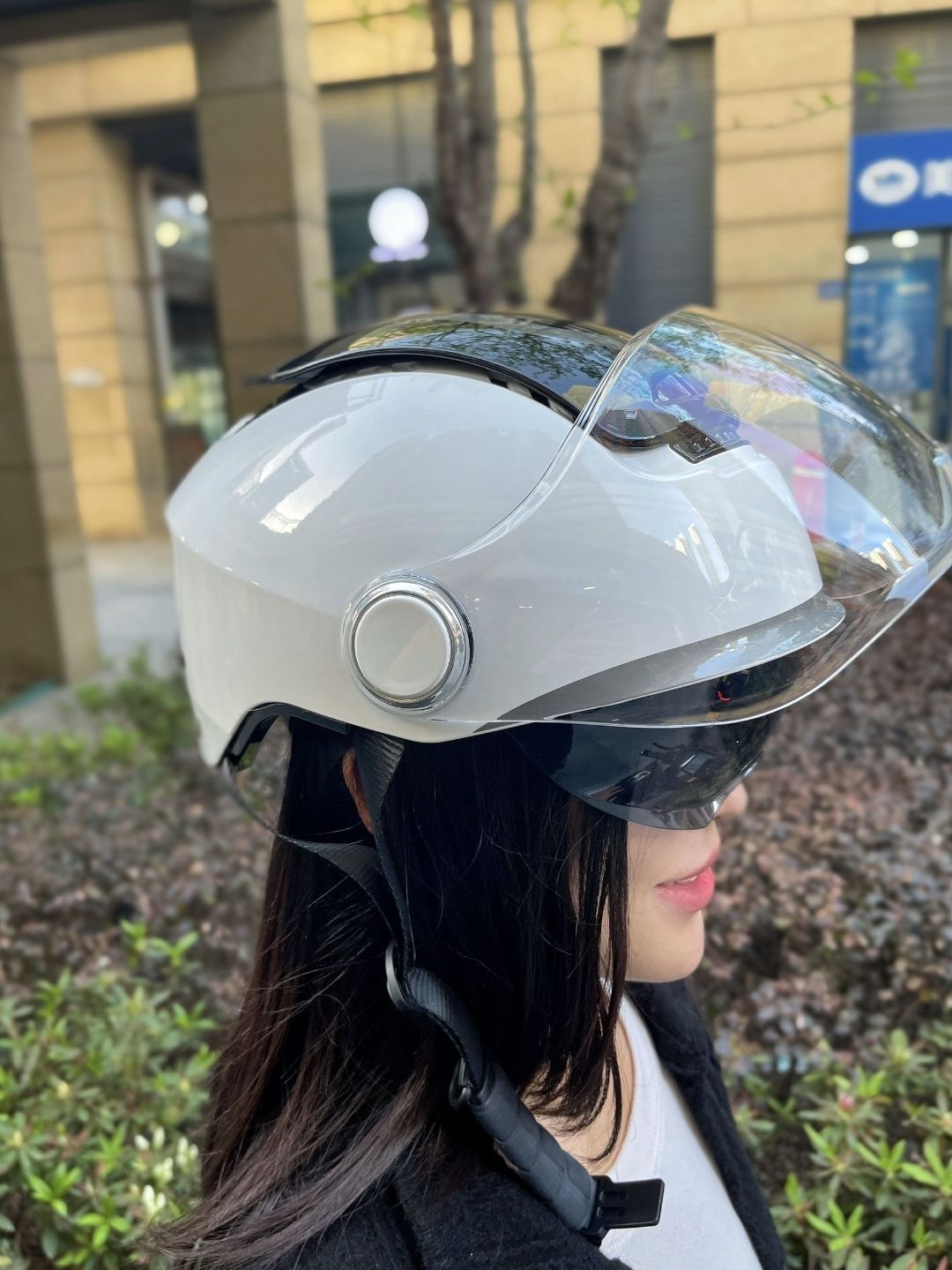 之前总嫌头盔又丑又闷,直到遇见这款天窗2代——戴上瞬间变身甜酷girl!头顶的透气天窗简直救命,夏天等红绿灯再也不怕闷出一头汗,刘海都能保住体面✨ 3C认证戴着安心,再也不用和交警玩“躲猫猫”了。最惊喜的是镜片防雾设计,雨天骑行视线超清晰,还能单手推镜片,等红灯时感觉自己超专业(其实才骑电动车三个月hhh)。 想要颜值和安全性在线的头盔可以试试,毕竟安全上路还能美美的,谁不爱呢~💨 图源网络...