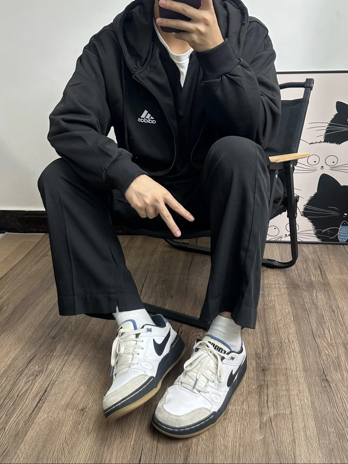 今日份穿搭~🎧 黑色系好适合男孩子 外套抽绳设计 开衫设计 厚度秋冬穿很合适~🎶 搭配黑色裤子 拿捏氛围感~ 穿上潮流Nike板鞋 这样出街好吸晴~🧍♂️@筱咪俗气 (我170/62上身L码)