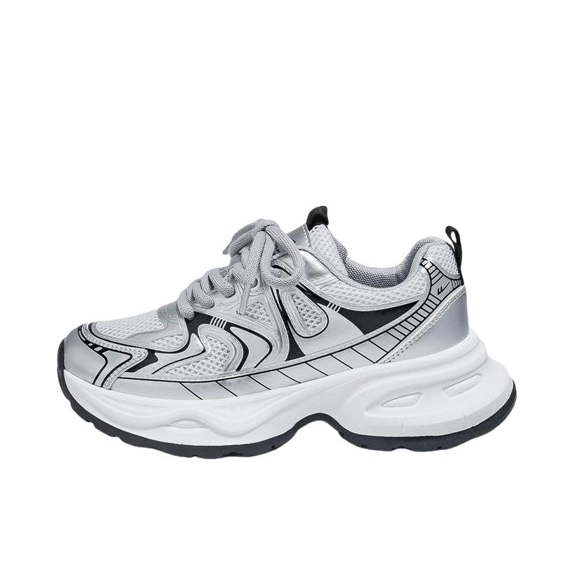 给自己准备的老爹鞋 是这种银灰色的网面,比较透气 老爹鞋属于百搭款,穿不腻 搭配牛仔裤,裙子都不会出错 有5CM的增高,对小个子女生友好 日常通勤、出去玩耍都可以穿