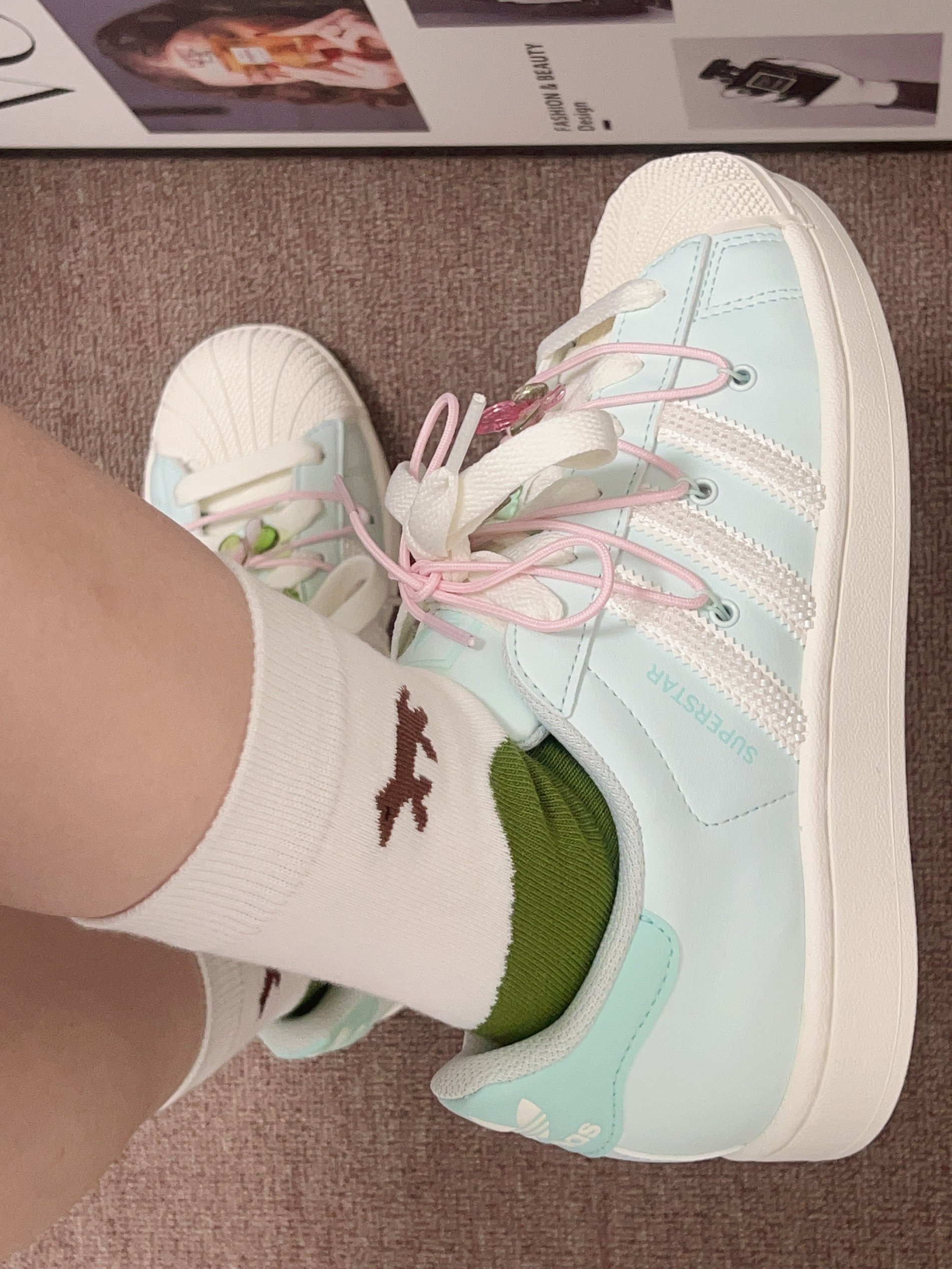 【🧚♀️🍃薄荷绿adidas☘️贝壳鞋搭上新袜子袜好好看👀🫣】,由用户 xu橘子 分享,来自广东。这是一篇来自识货社区的真实用户分享笔记。