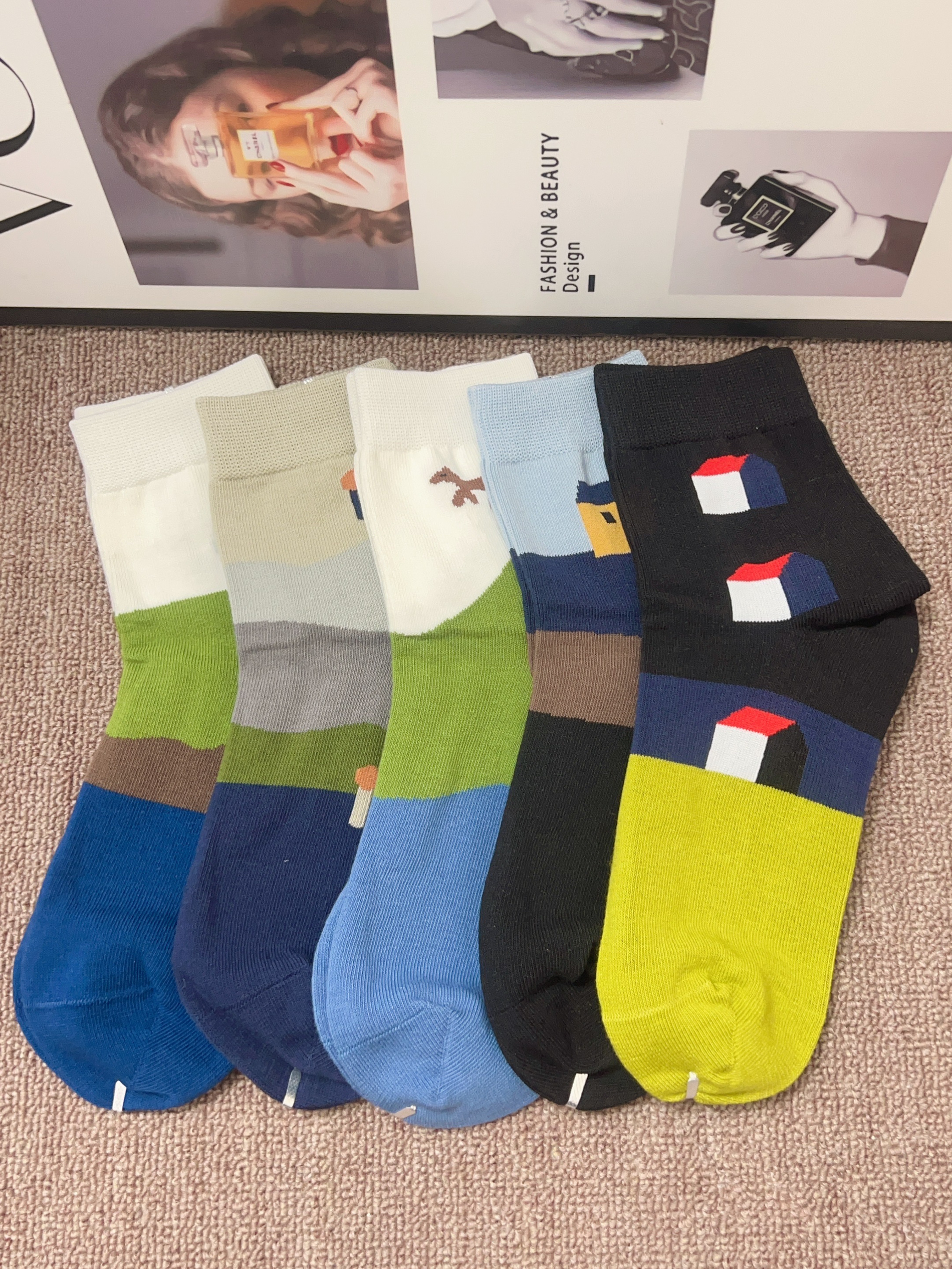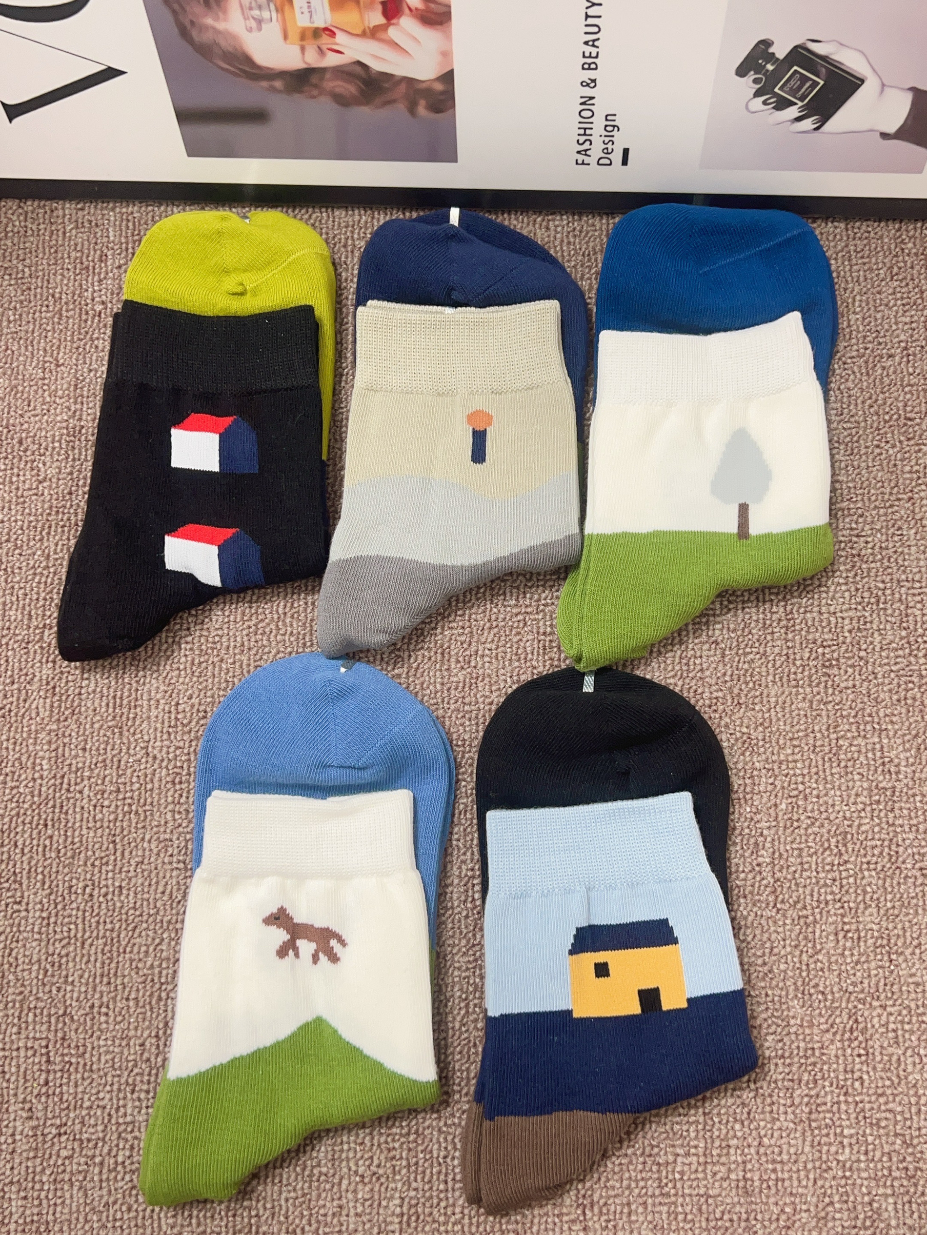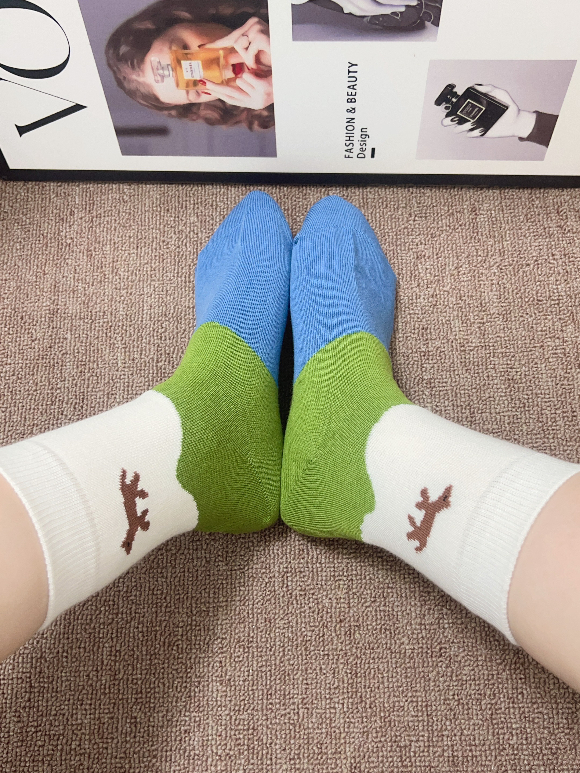 派米家这款插画系列的袜子蛮好看的🤩 刚好适合春夏现在这个季节穿 纯棉的摸着面料柔软 上脚舒适透气 走久也不会嘞脚啥的hin不错 日常搭配鞋子都可百搭