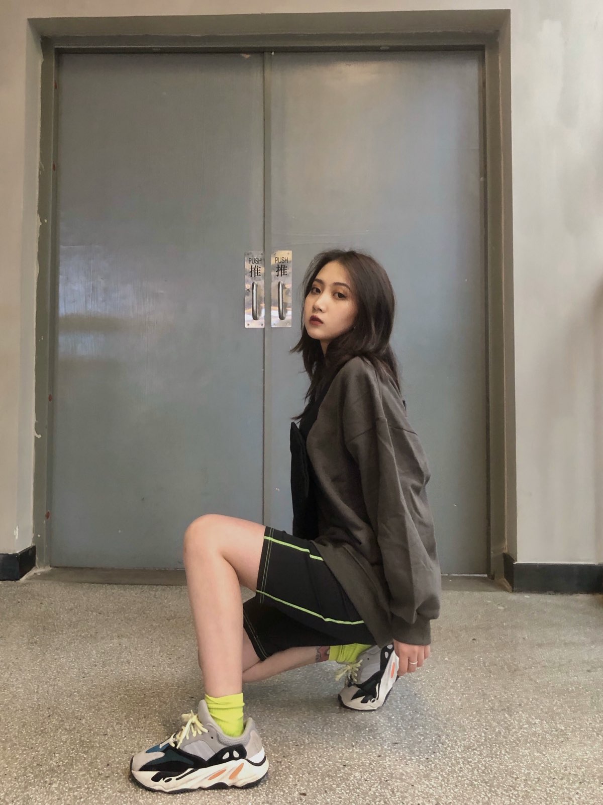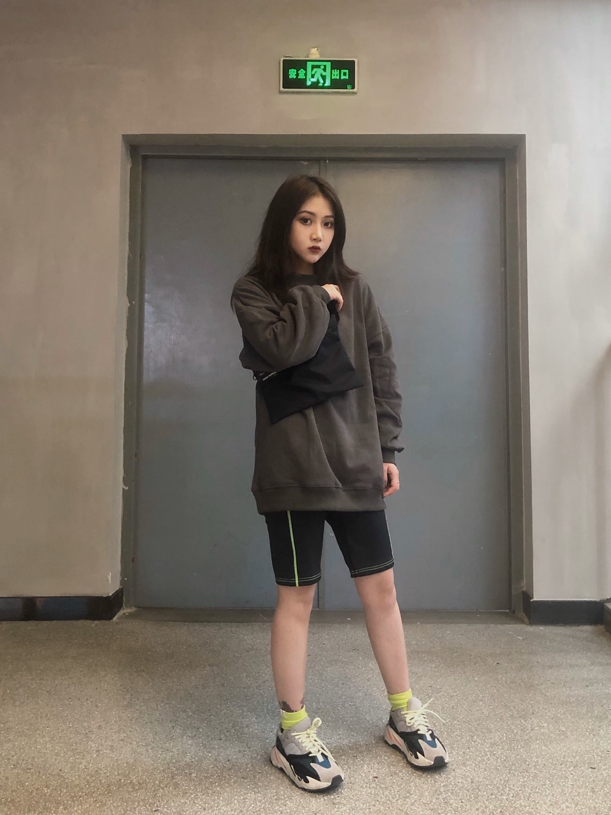 一套去健身房的搭配🌟 裤子是骑行裤 骑行裤一般拿来搭配一些oversize的上衣会很显瘦 平时日常出门搭配休闲装又舒适又好看 很多小姐姐还拿来搭配西装外套超级A了 👟鞋子:YEEZY 700 👖裤子:SND胶囊系 👜包包:SND胶囊系