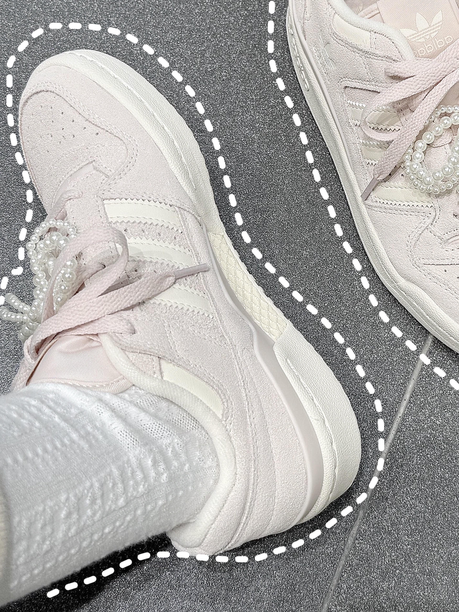 “刚开始觉得粉色鞋容易显脚肿,结果上脚一秒打脸!”这双adidas FORUM CL的鞋型其实超修长,低帮设计露出脚踝,视觉上反而显腿细!鞋面是麂皮拼接皮革,粉色饱和度刚刚好,不荧光不显黑,搭配牛仔裤或连衣裙都温柔又少女~✨防滑橡胶底走一天也不累脚,透气孔设计春夏穿也不闷汗。 🛍️小贴士:麂皮部分用软毛刷轻扫去灰,避免水洗哦~