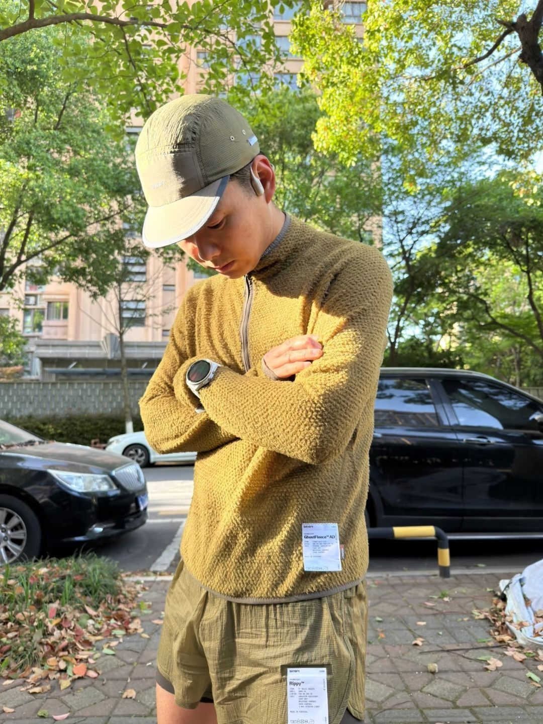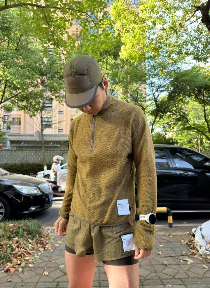 今日跑步🏃 🧢:Satisfy Rippy™Trail Cap 👔:Satisfy GhostFleece™AD Light Half-Zip 🩳:Satisfy Rippy™3" Trail Shorts 🧦:Satisfy Merino Tube Socks 👟:Brooks Glycerin max ⌚️:Garmin Forerunner965+Coros心率带 🎧:Shokz S810