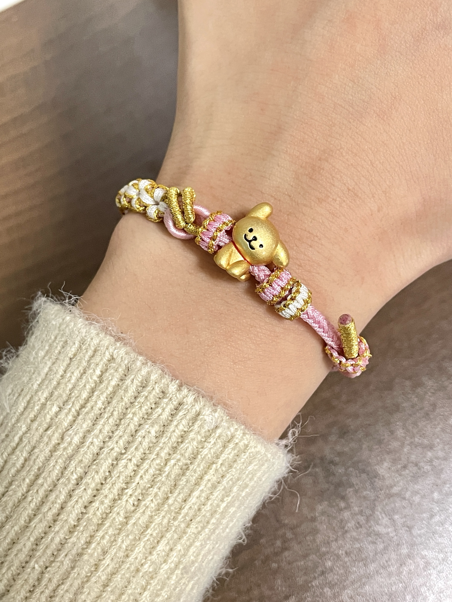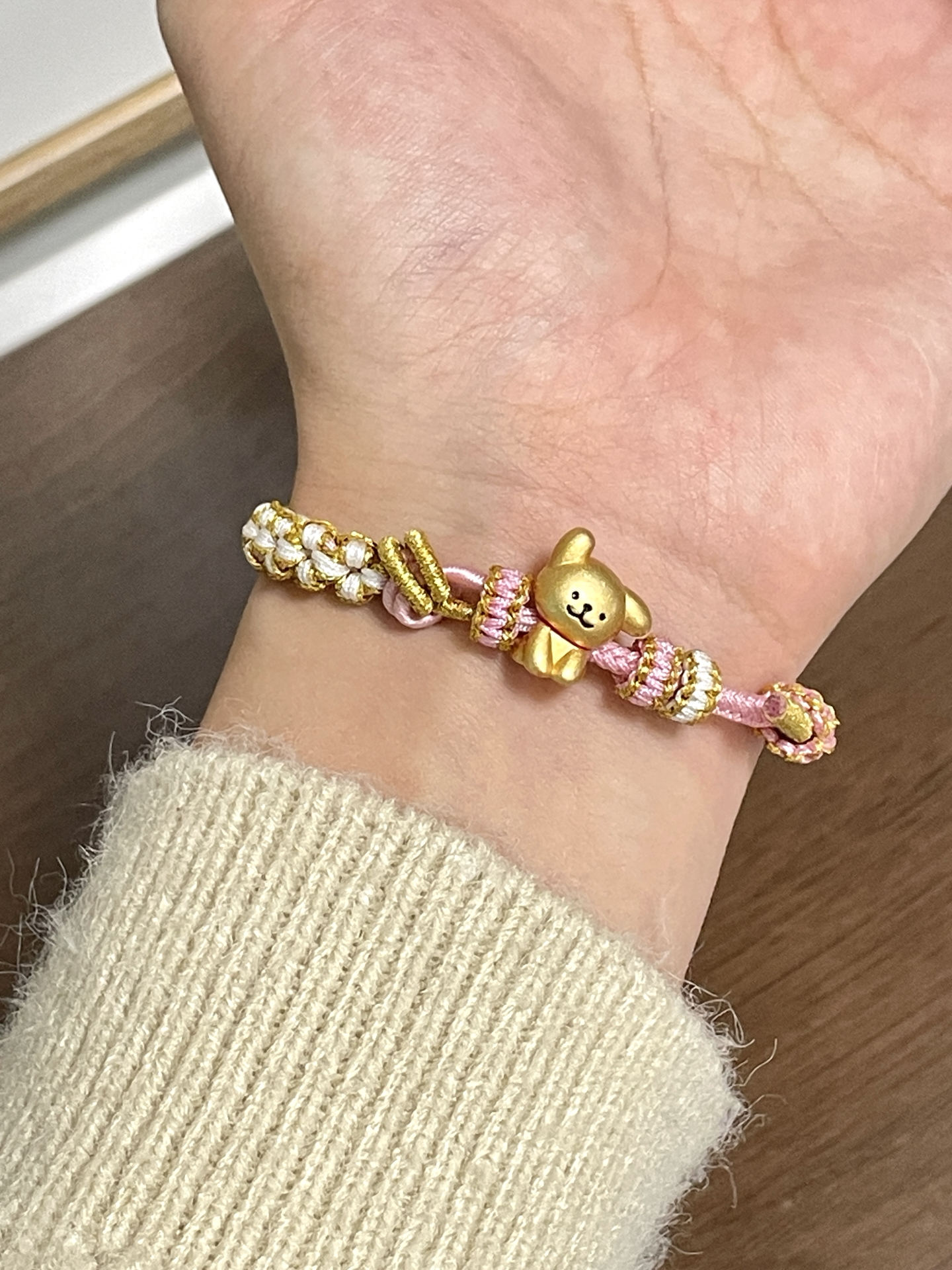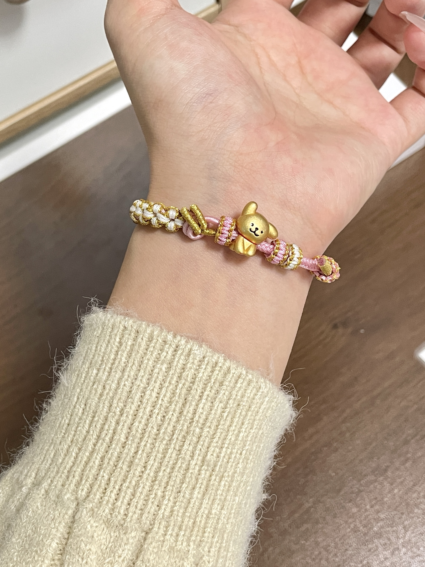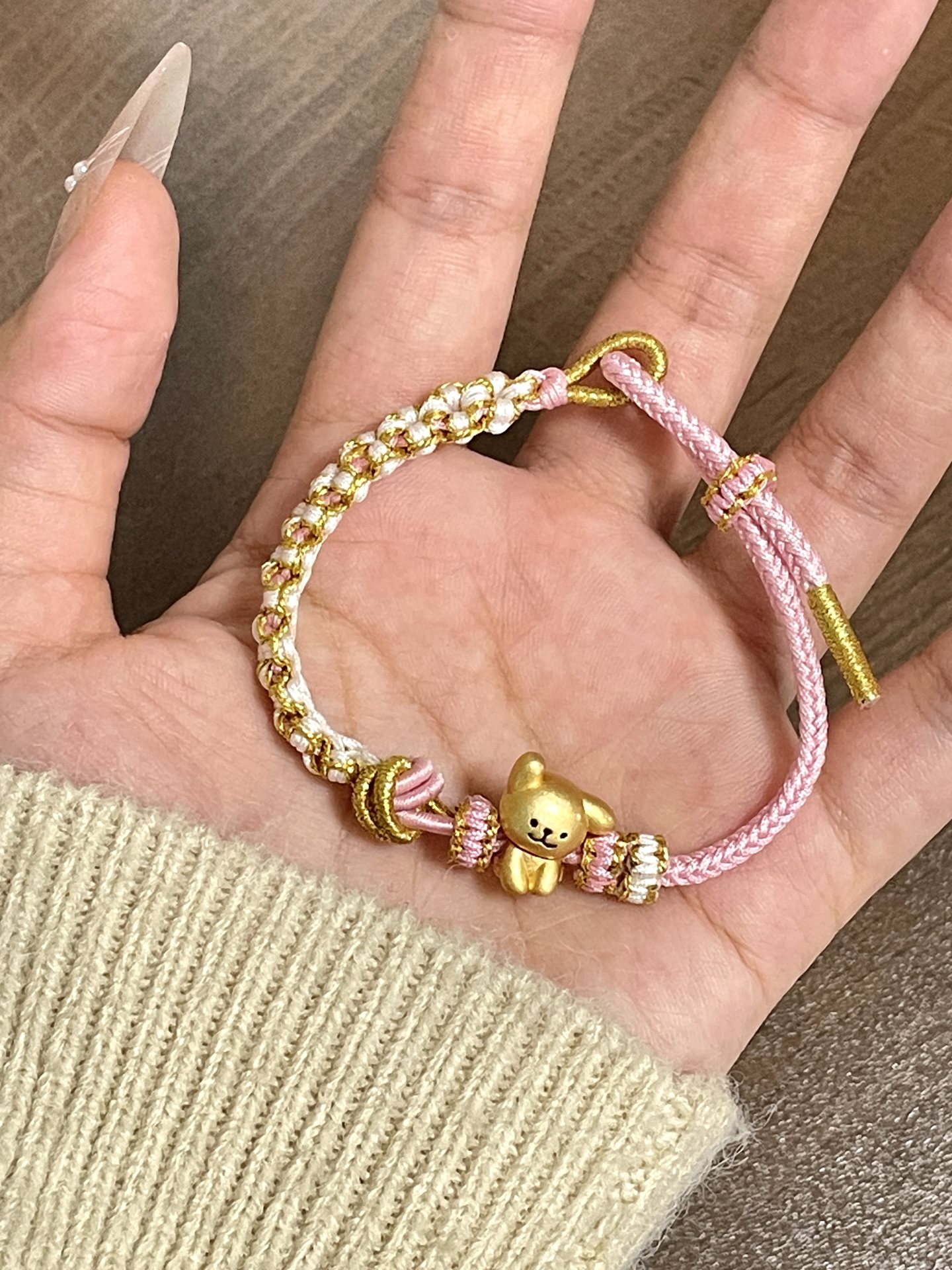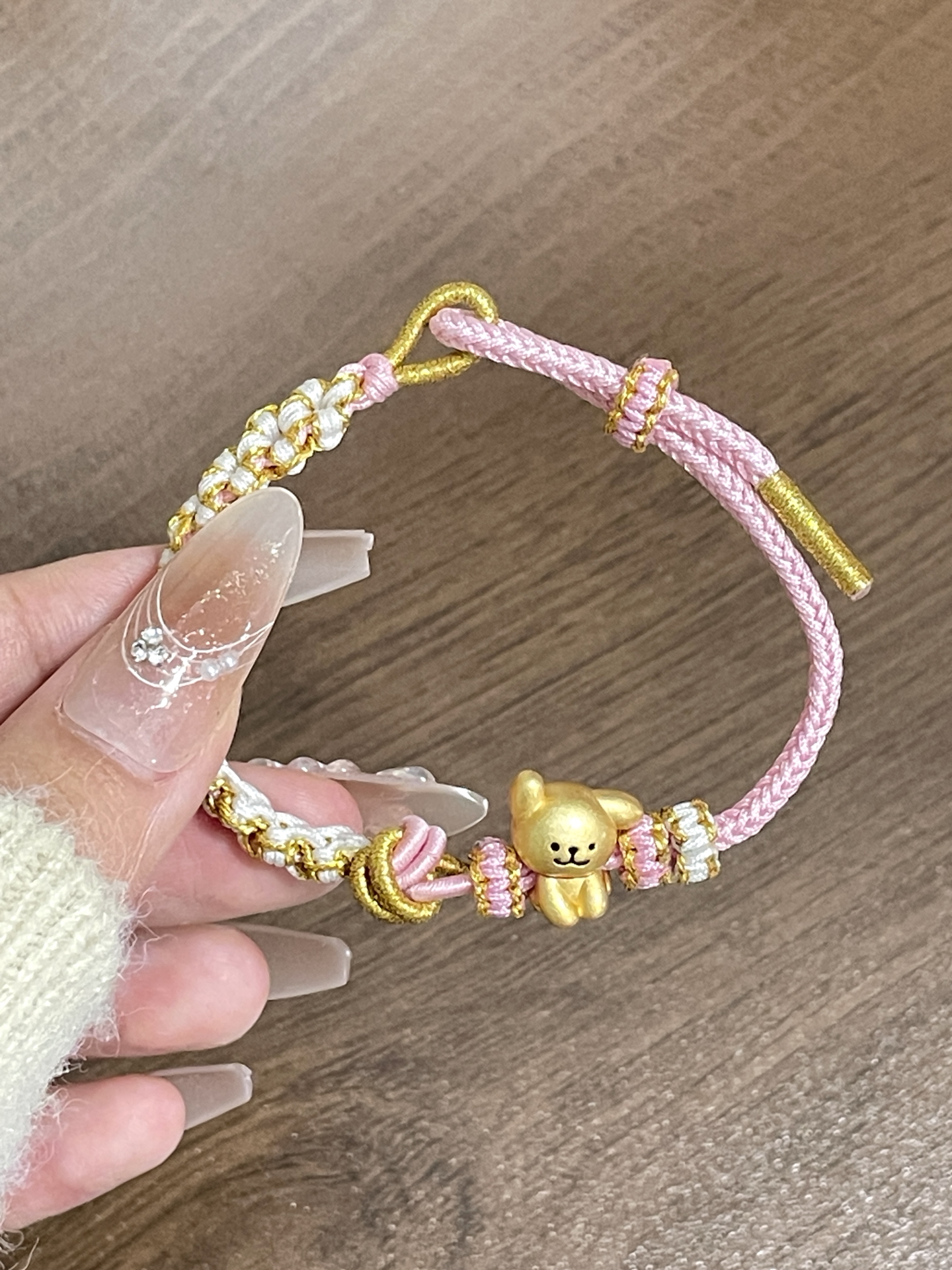 00后也太会选首饰咯! 你小子是懂设计的 这个小狗手绳尊滴好可爱哇 搭配粉色手绳~ 我觉得还蛮可爱滴 戴在手上也很显白呀~ 平时可以搭配卫衣戴 尊滴可爱!