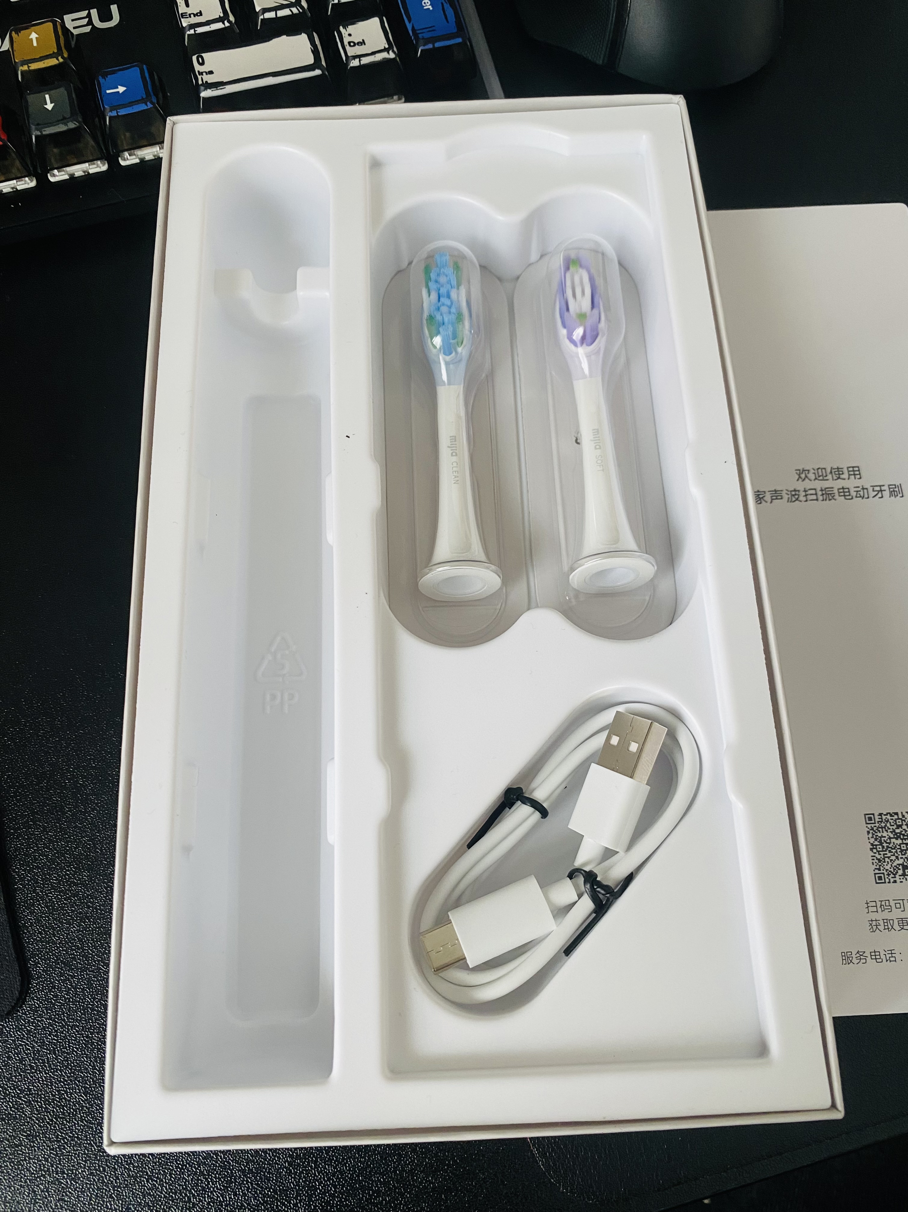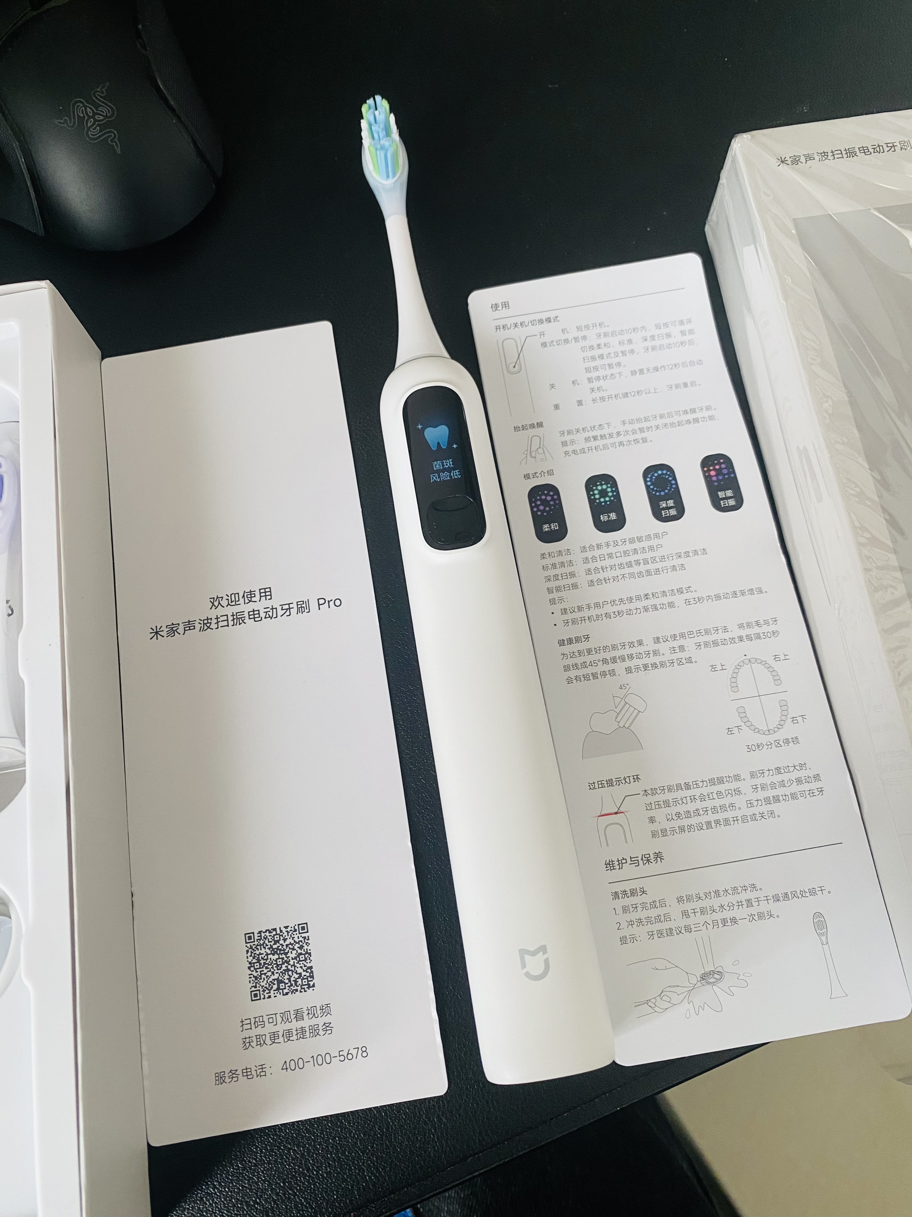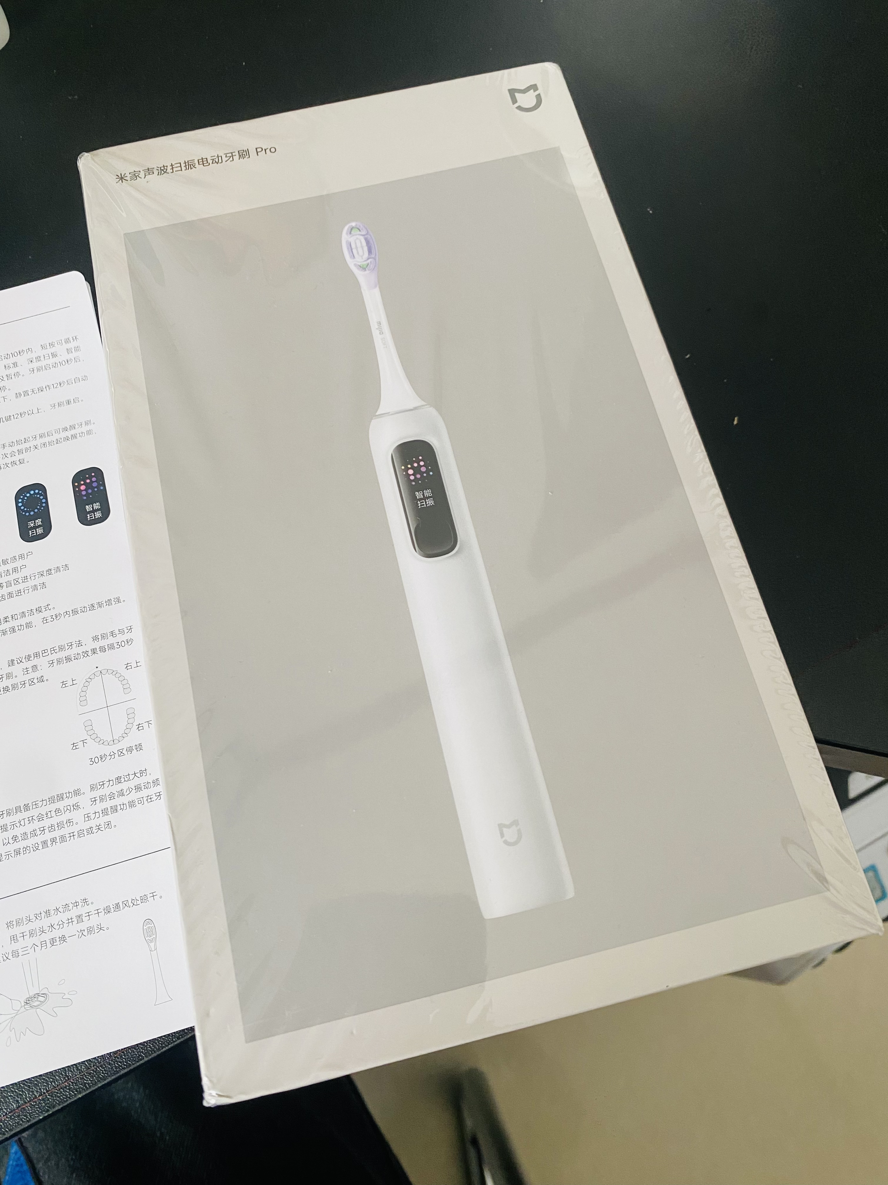 米家声波扫振电动牙刷Pro。 有三款颜色选,首选纯白色 可以看到包装,很整洁美观 原装标配附送:两个牙刷头 另外此次下单还送三个刷头 所以一共收到:有5个牙刷头 建议2-3个月换一次新刷头 雷军白手起家做事非常认真 若100分满分我直接99.9分! 剩下0.01分是不让雷军骄傲! 哈哈哈!希望小米越做越好!