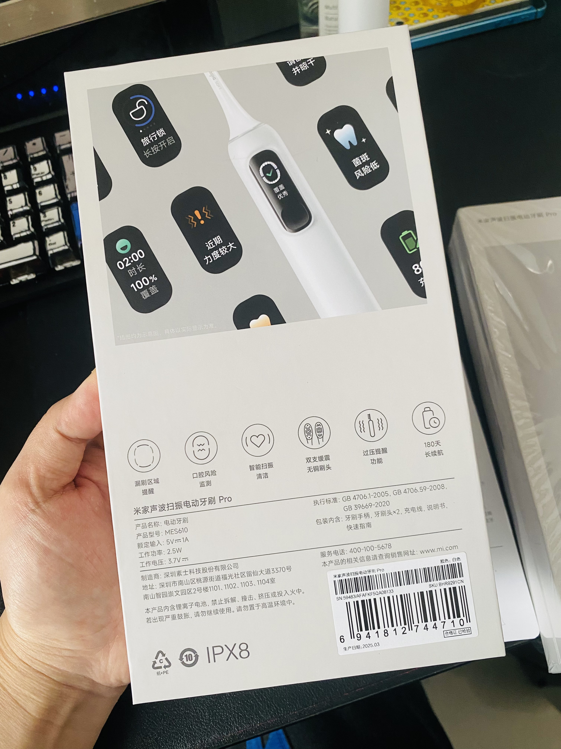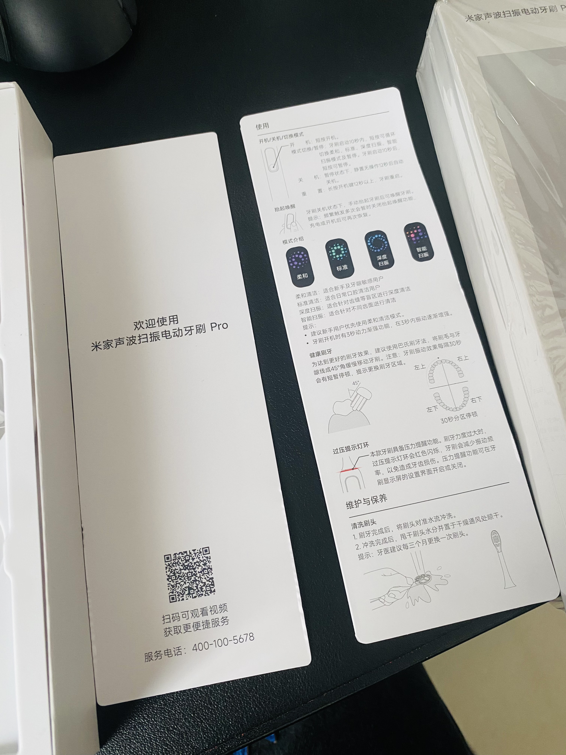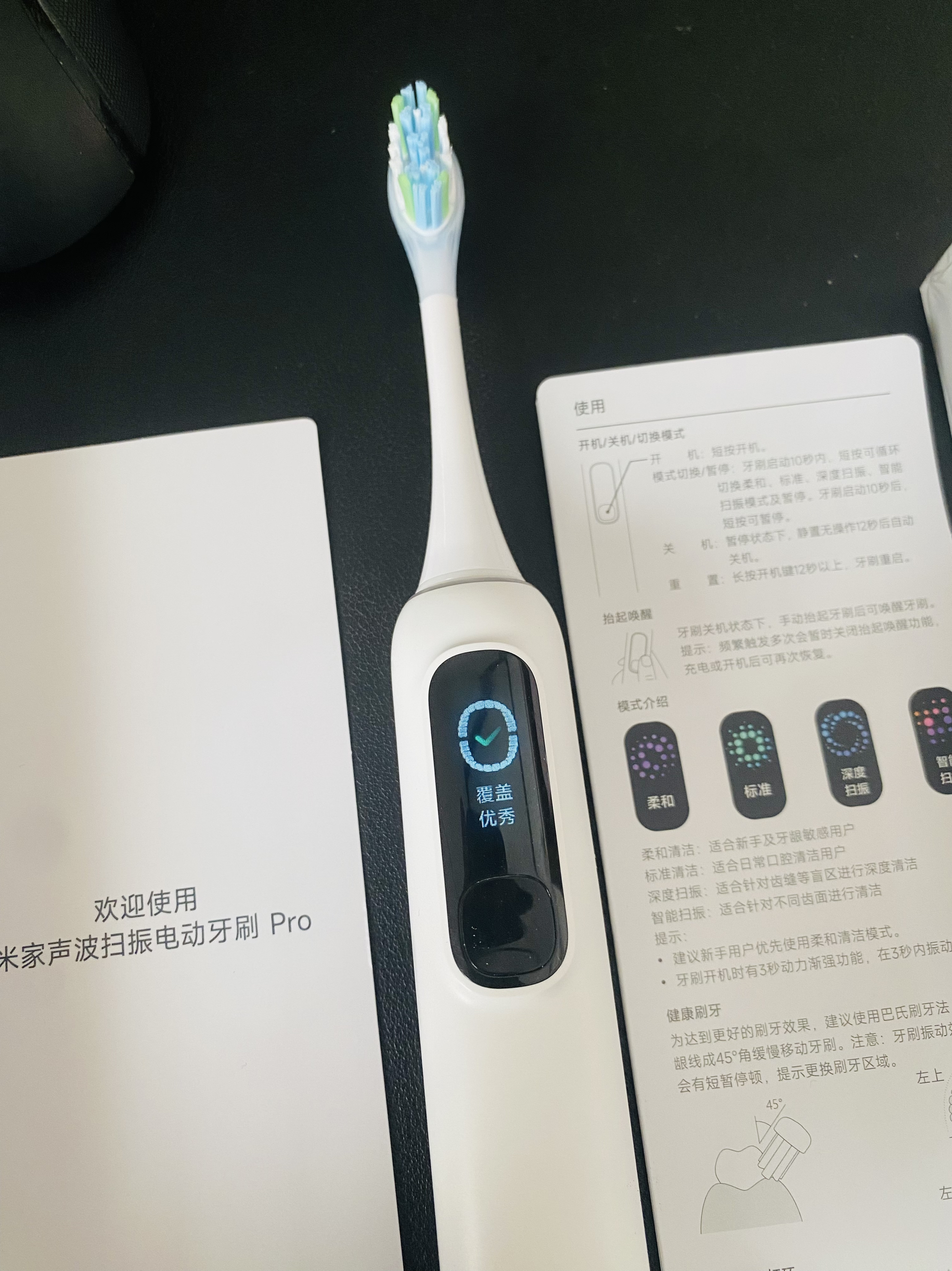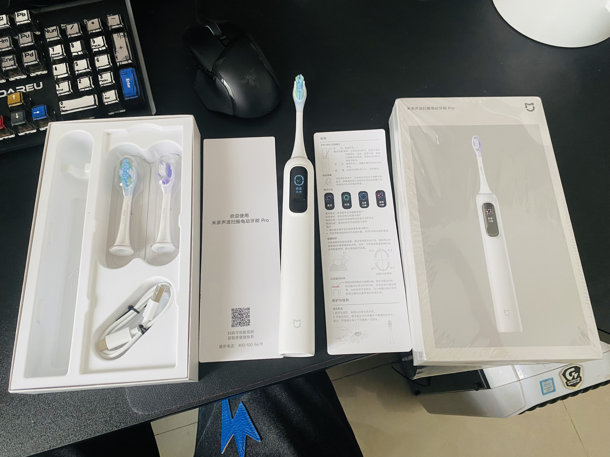 米家声波扫振电动牙刷Pro。 有三款颜色选,首选纯白色 可以看到包装,很整洁美观 原装标配附送:两个牙刷头 另外此次下单还送三个刷头 所以一共收到:有5个牙刷头 建议2-3个月换一次新刷头 雷军白手起家做事非常认真 若100分满分我直接99.9分! 剩下0.01分是不让雷军骄傲! 哈哈哈!希望小米越做越好!