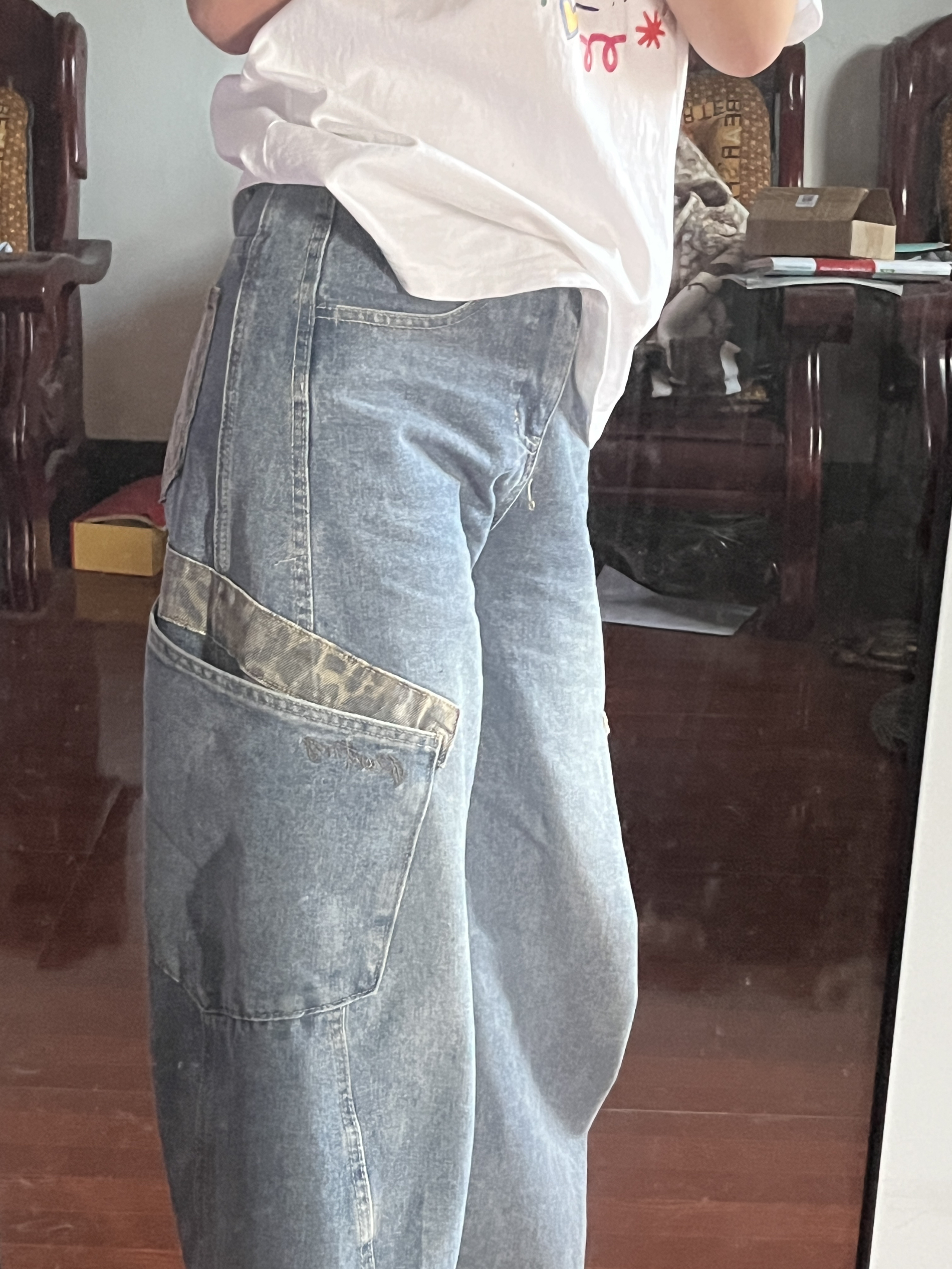 这条裤子真的太有范儿了!美式复古风搭配豹纹拼接,设计感十足,上身立马变身时髦精。弯刀裤型显腿长,直筒阔腿的版型对腿型包容性很强,藏肉又显瘦。面料柔软但有筋骨,穿着舒适不紧绷,春秋穿正合适。 做工细节很精致,走线工整,豹纹拼接部分也不会突兀,反而让整体更有层次感。搭配短靴或运动鞋都超有型,随便一穿就是街拍既视感。尺码标准,按平时码选就行。 发货快,包装好,完全对得起价格!喜欢复古潮酷风的...