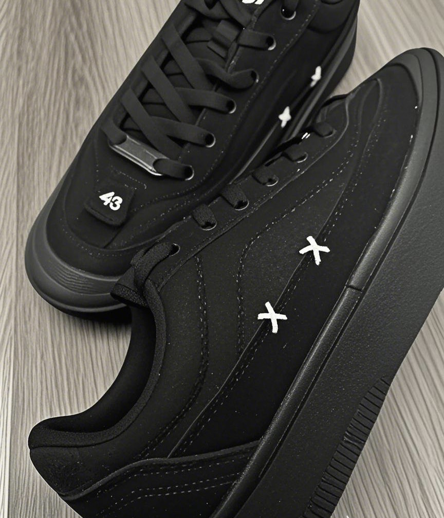 家人们,我最近可算是挖到一双宝藏板鞋!就是这双黑色的[品牌名未知,若有需补充]鞋。 从外观来说,纯黑鞋面搭配上精致的白色十字装饰,简约又不失个性,暗黑风直接拉满。这种低调又独特的设计,无论是搭配休闲的工装裤,还是简约的牛仔裤,都能轻松出街,时尚感爆棚。走在路上,回头率都变高了! 穿着体验更是没得说。上脚很舒服,鞋型贴合脚型,不会有那种挤脚或者磨脚的情况。鞋底软硬适中,有一定的弹性,走路的时候能...