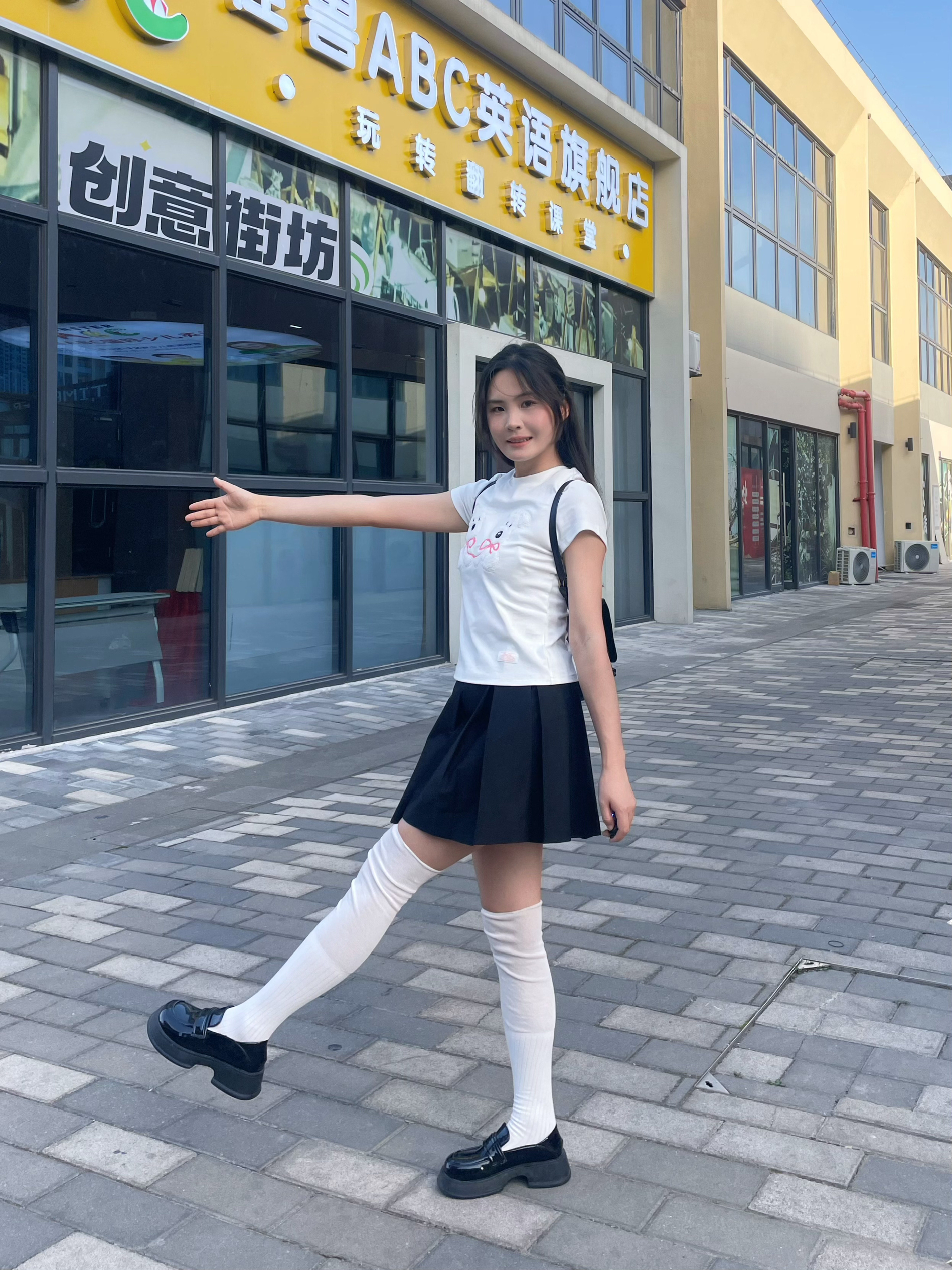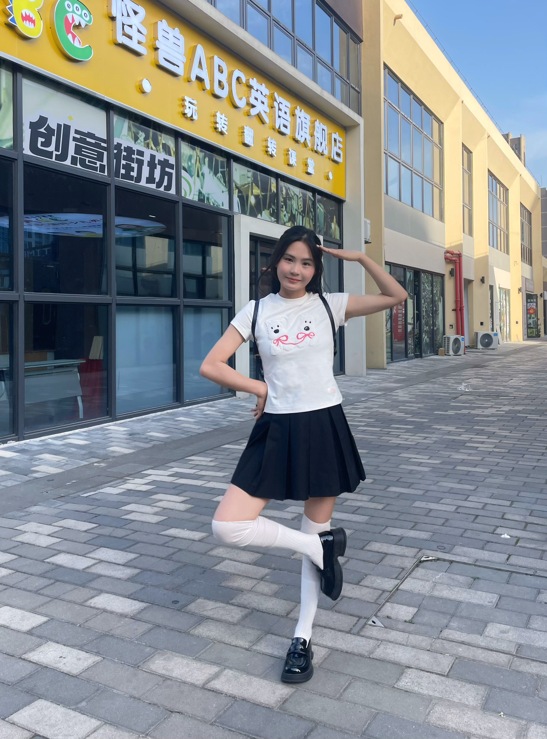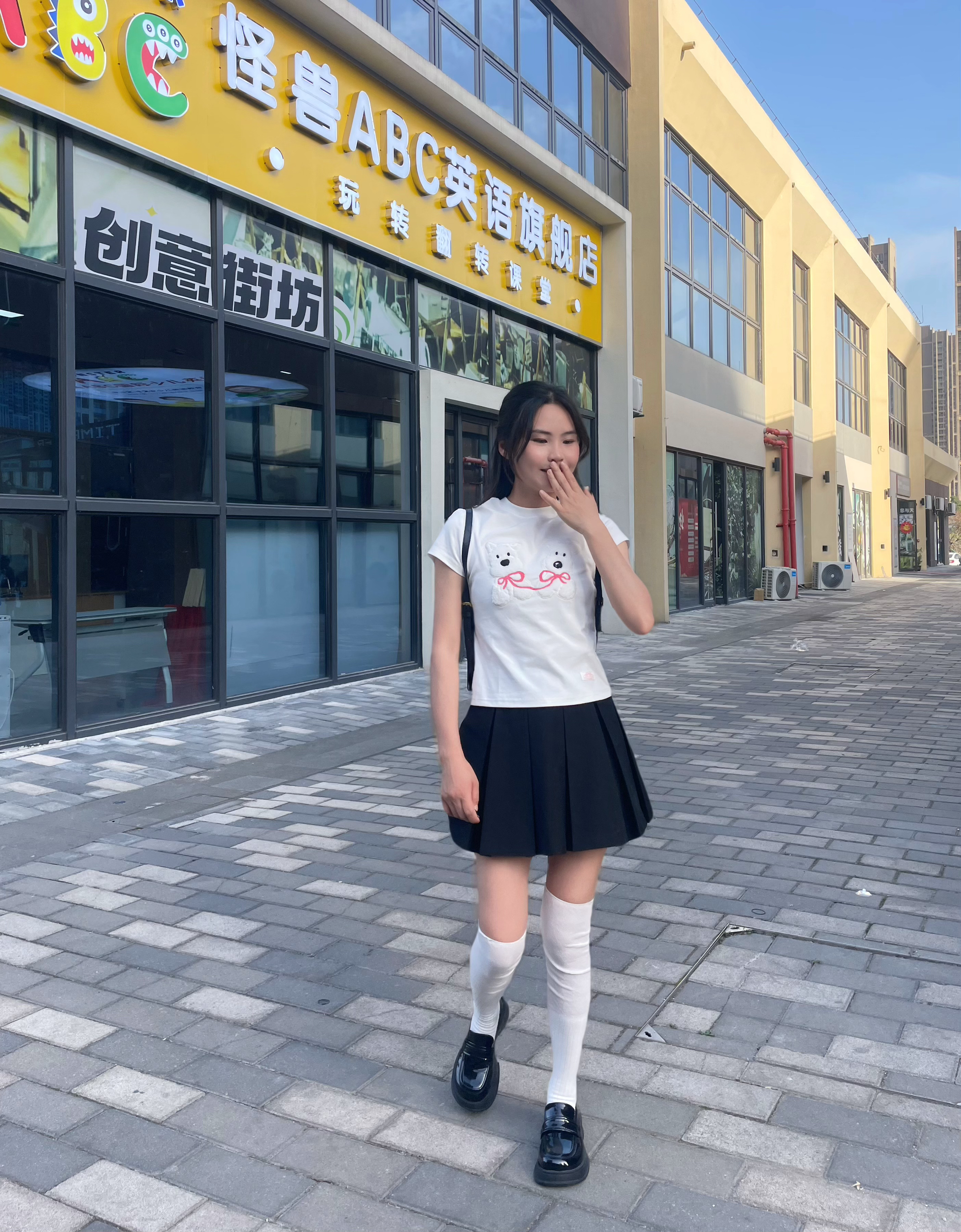 好啦~我宣布 这件短袖以后就是我的专宠了~ 可爱蝴蝶结短袖 ➕JK裙➕双肩包 真的减龄感加满!这一整套看着就好甜妹啊🌟 不管是和闺蜜去喝下午茶还是和Cursh约会它都是我的第一选择。 谁懂啊“它设计的蝴蝶结🎀真的硬控我,再➕上这个配色”我高低都得把它带回来的~ “而已哦它百搭又出片一点都不单调,出汗不粘身”。 日常出门就随手抓件基础款下装都可以搭的好吧🌟这样你还不心动嘛