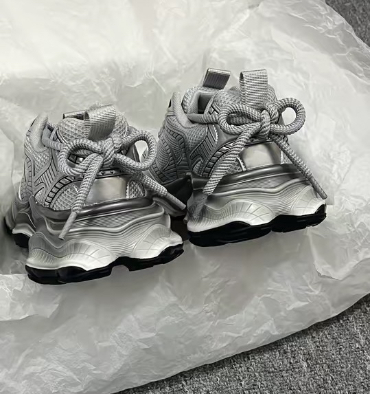 这双太空银灰老爹鞋自带高级感 整体版型简约设计带感,平时也好搭配裤子,厚底的设计,穿起来显增高,上脚也显的裤子贼拉长,织物拼接合成革鞋面透气鞋也比较不错.男女都可以穿