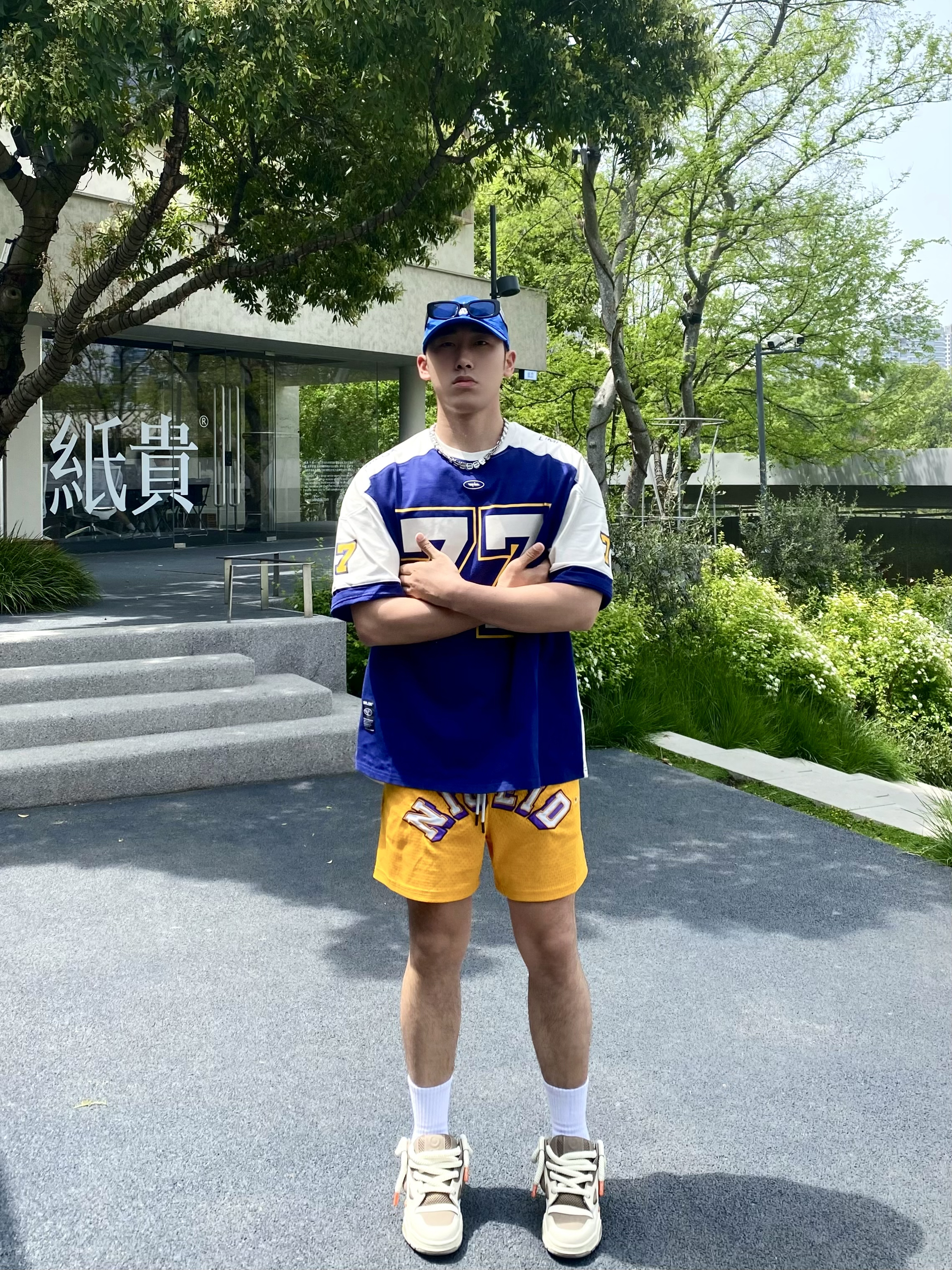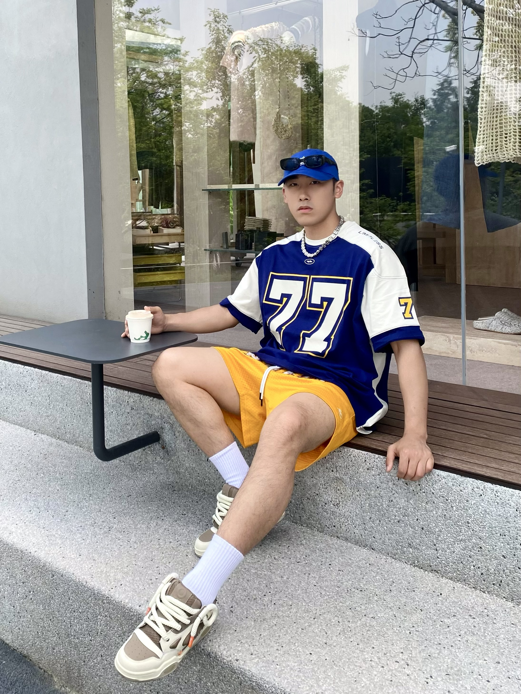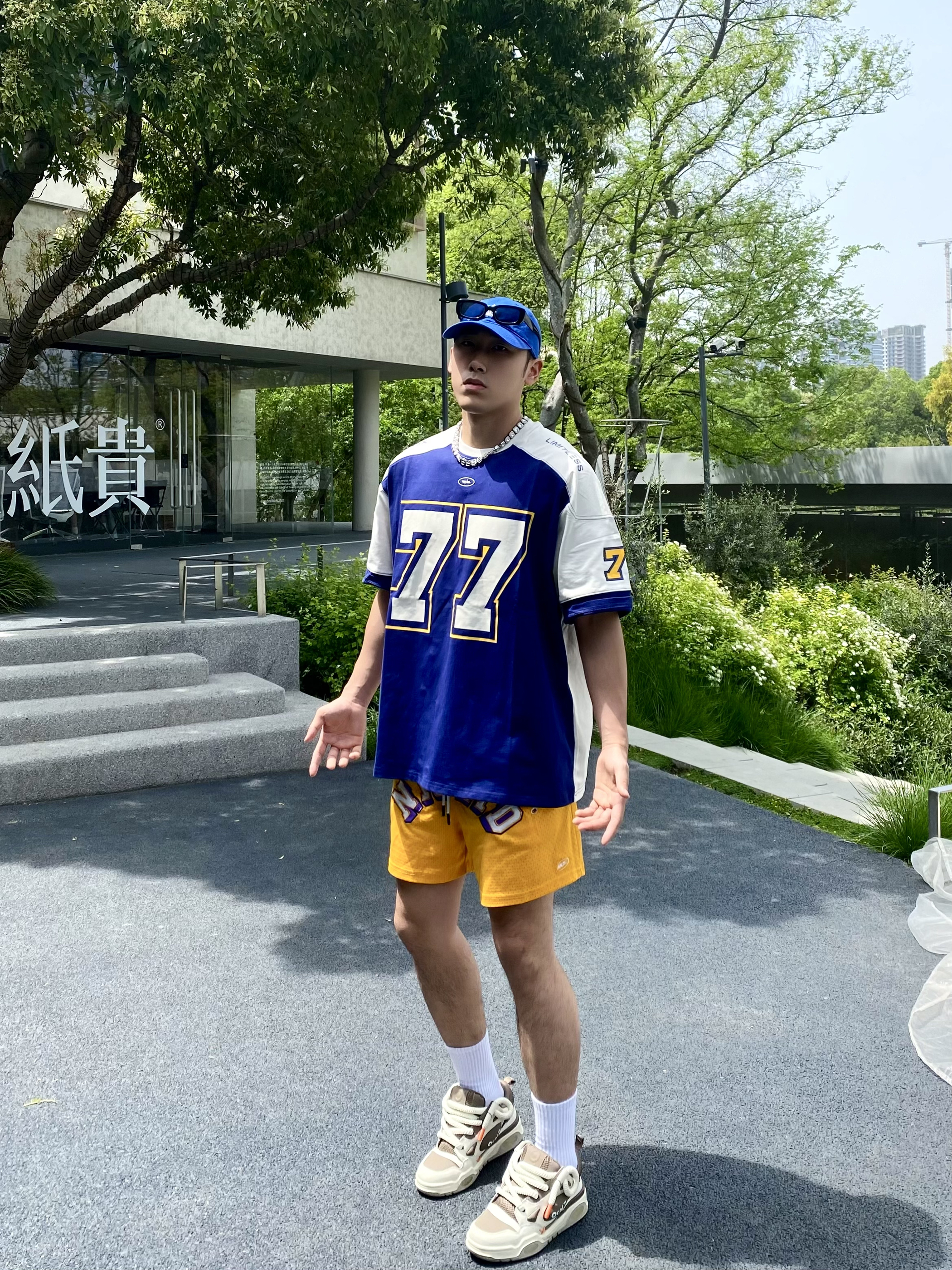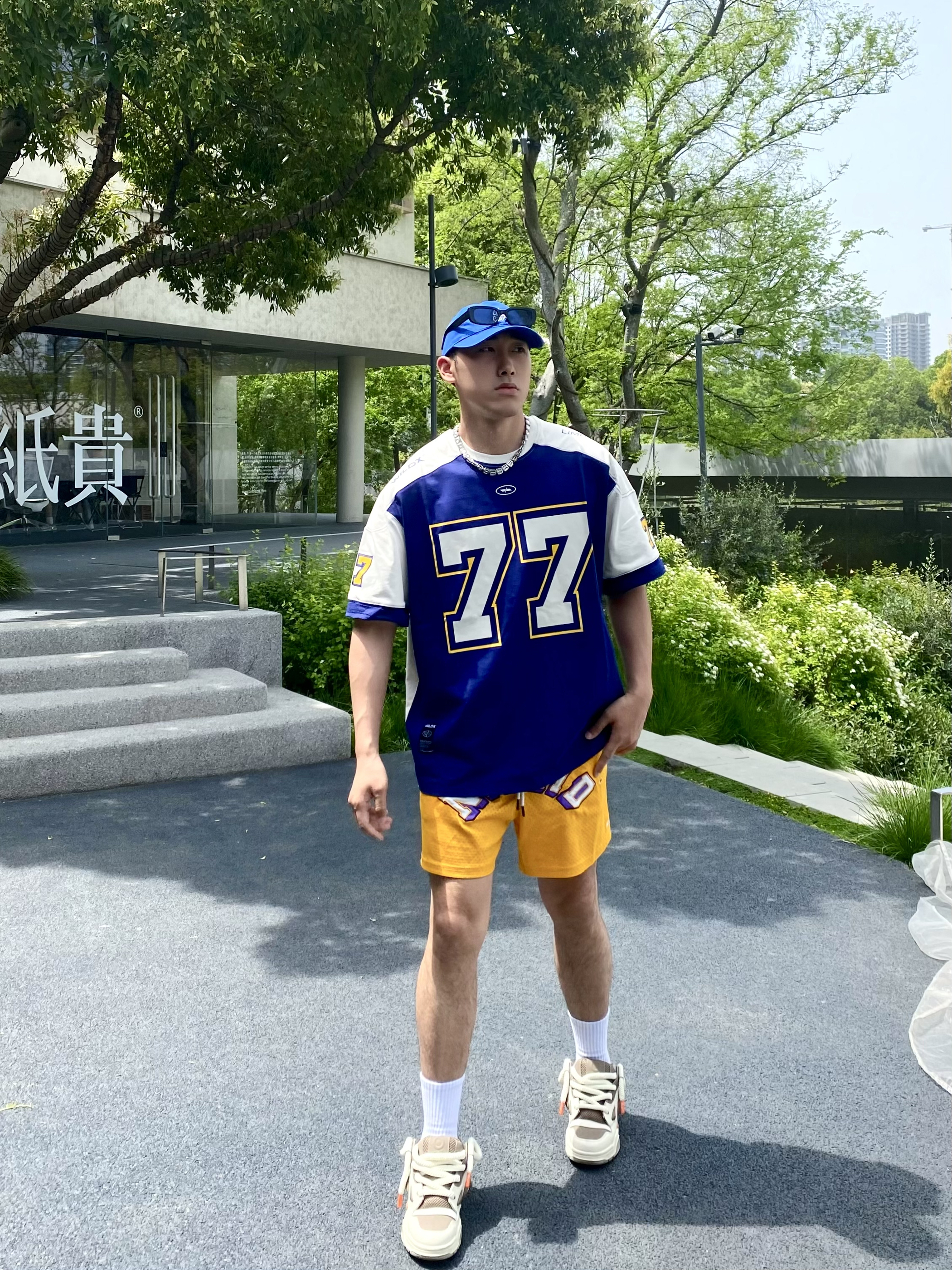 holle 这里是小樊~ 正式吹响夏天的号角🥵 天气也逐渐炎热起来🌞 夏日户外出当然少不了色彩鲜艳的搭配👔 蓝色短袖搭配呼应同色系帽子🧢 短裤颜色呼应短袖的黄色👌