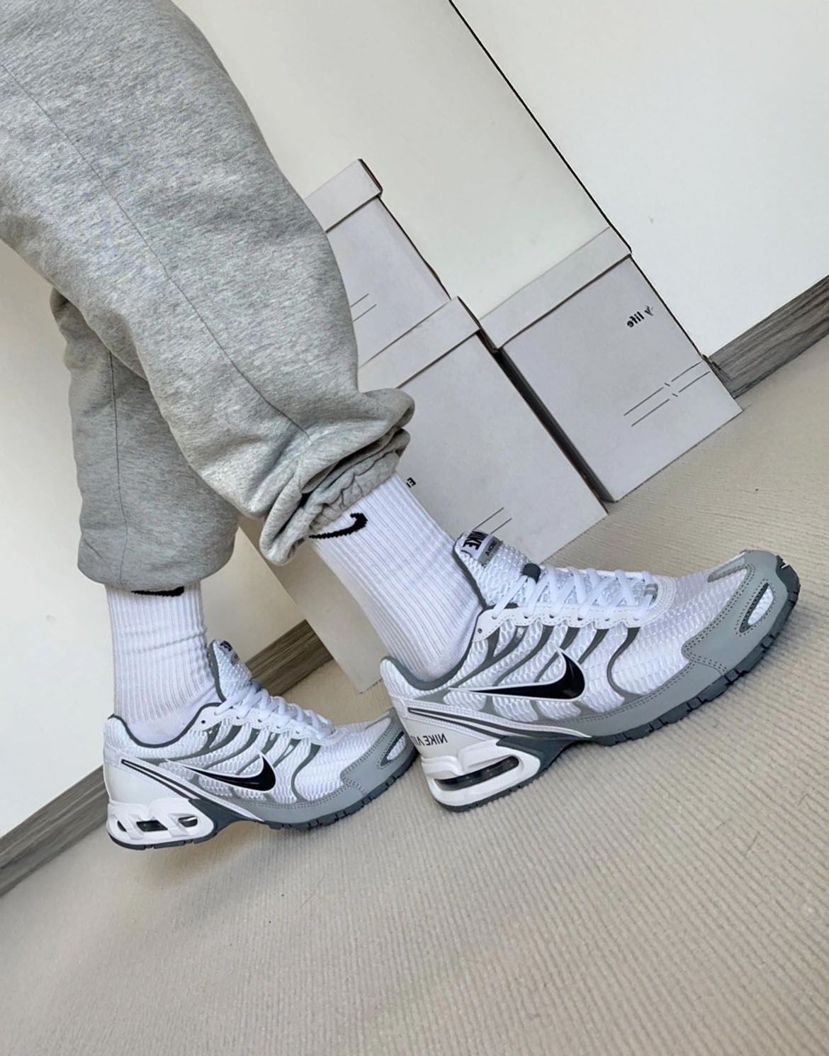这双Nike Air Max Torch 4低帮跑步鞋,灰白配色看起来挺简约的,给人一种大气的运动风格。我穿它去跑步或者日常出行,感觉都很合适。 鞋面是网眼材质的,透气性还不错。即使穿的时间长了,脚部也不会觉得特别闷,挺干爽的。 中底有Air Max气垫,走起来或者跑步的时候,能感觉到一定的缓震效果,脚部不会因为冲击力而感到特别累。 鞋底是橡胶材质,纹路设计比较多样,防滑性能挺好的,抓地力也...