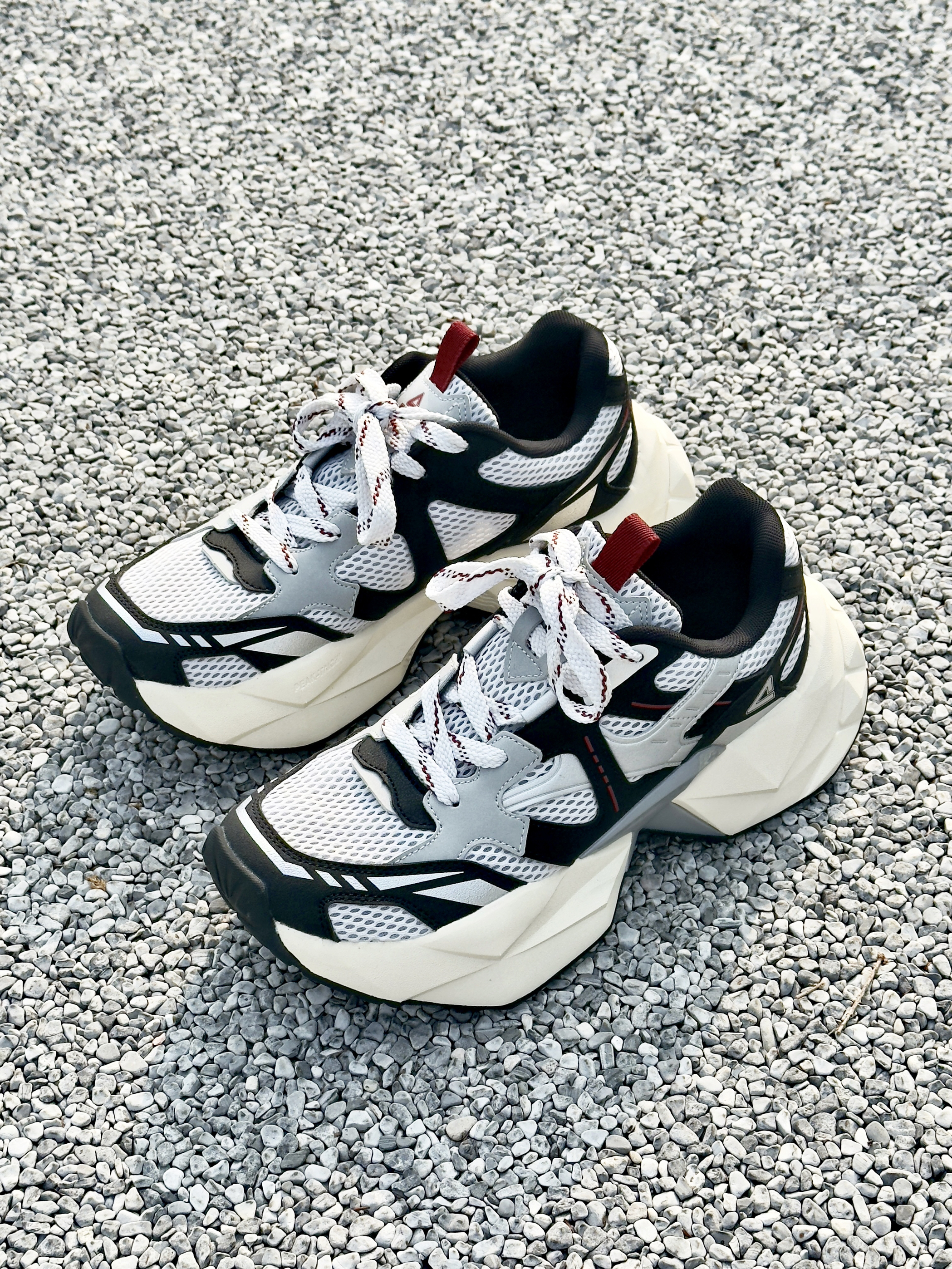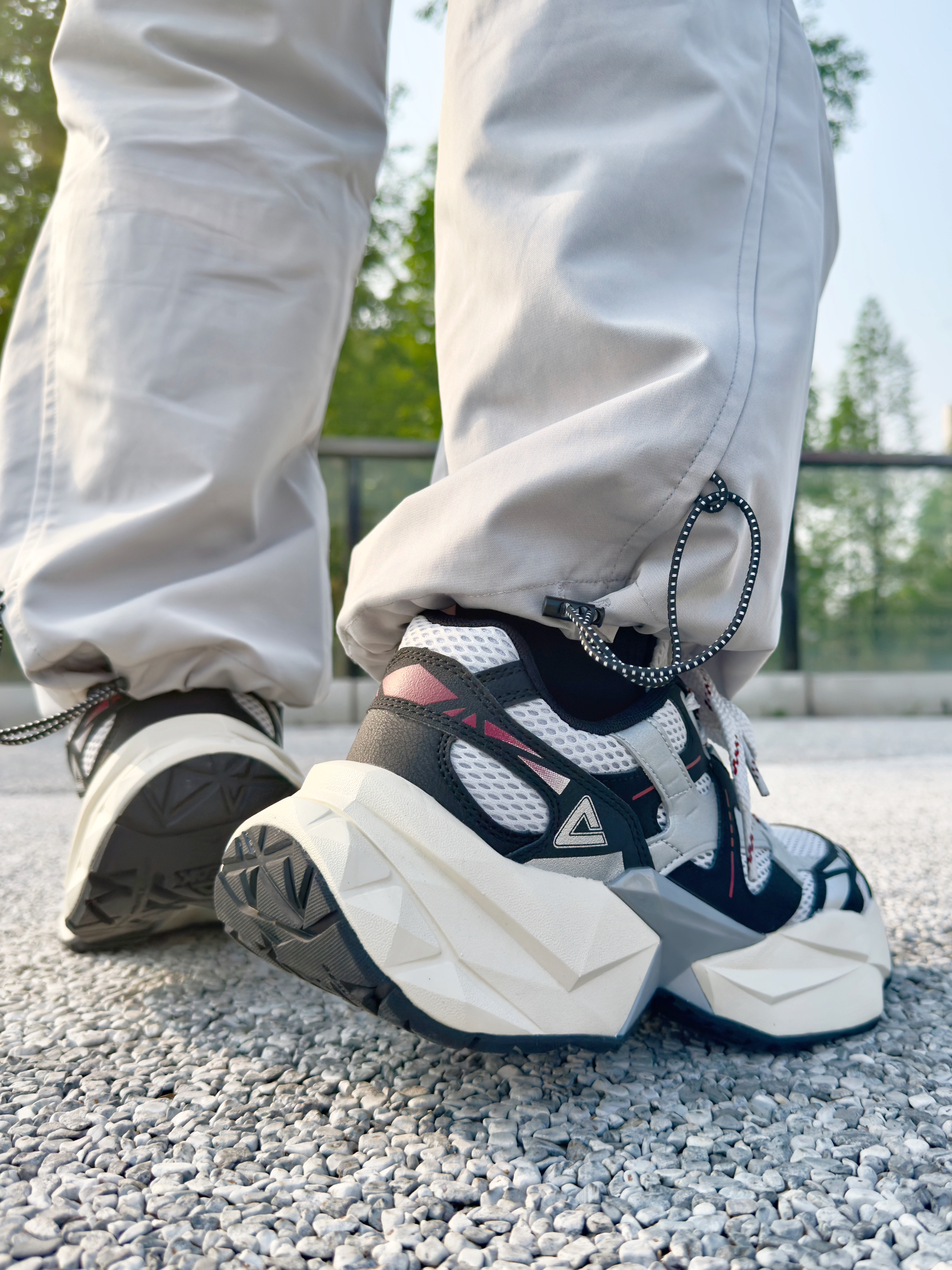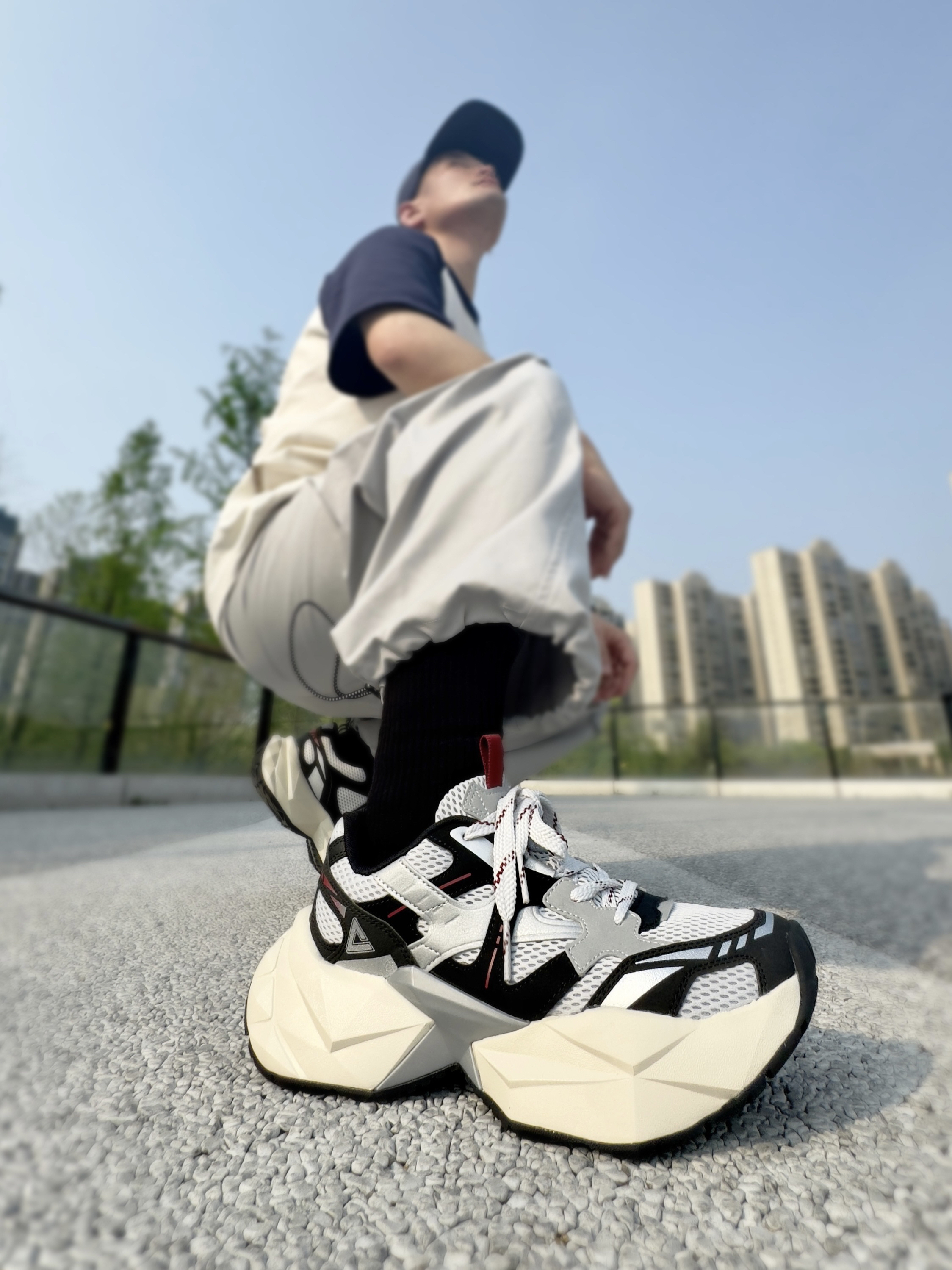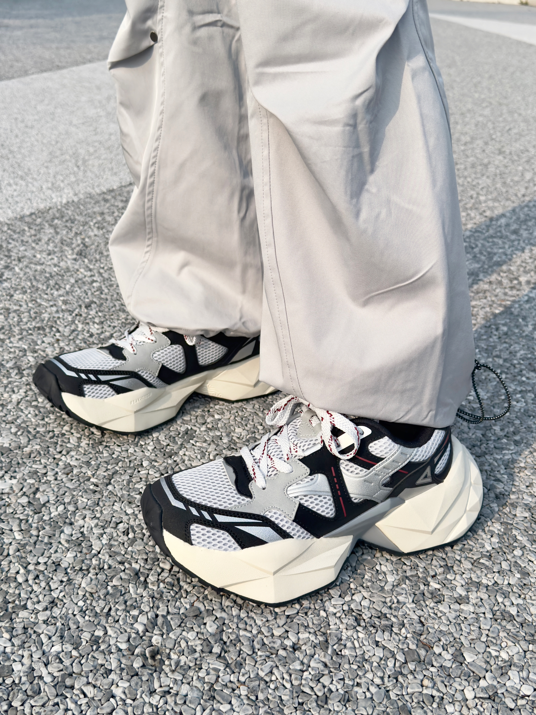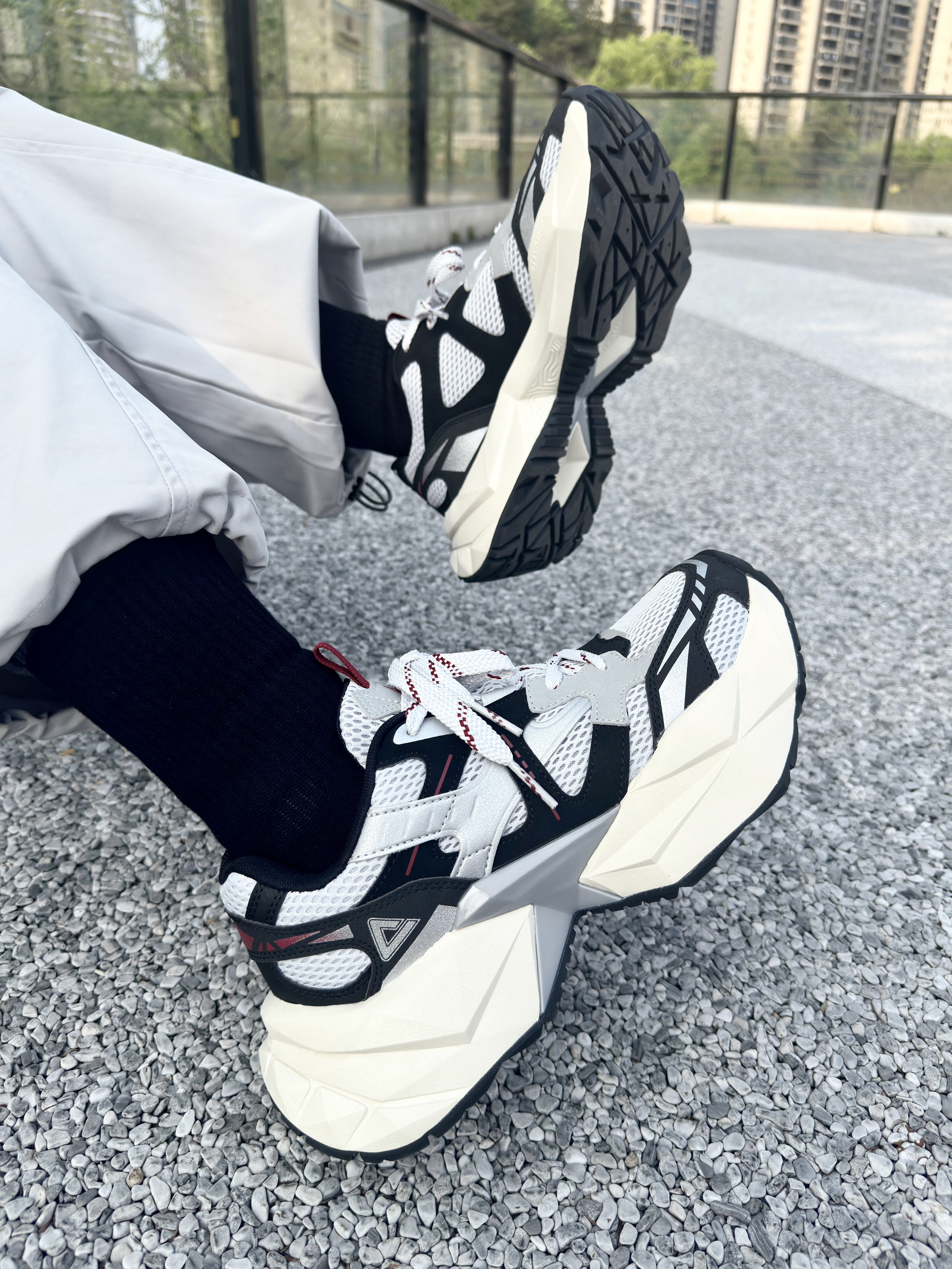 这双 匹克 的新款态极钻石老爹鞋 外观设计有棱有角,还蛮潮酷帅气的 中底钻石切割的形状,非常有特点 上脚的脚感十分轻盈软弹,久穿不累脚 5CM的厚底增高,对小个子特别友好 网眼编织鞋面,夏天穿透气不闷脚 黑白配色怎么搭配都不容易出错 日常通勤休闲以及旅游慢跑穿都没问题 尺码方面不偏码,正常码选择即可!