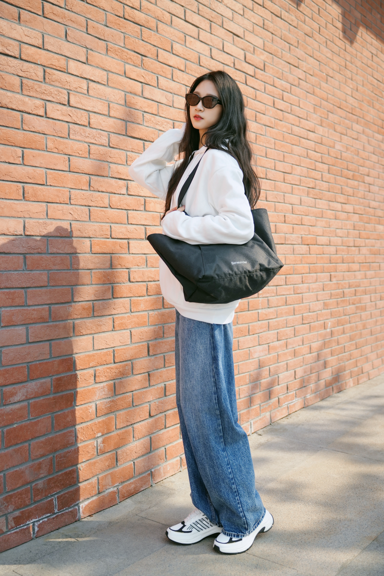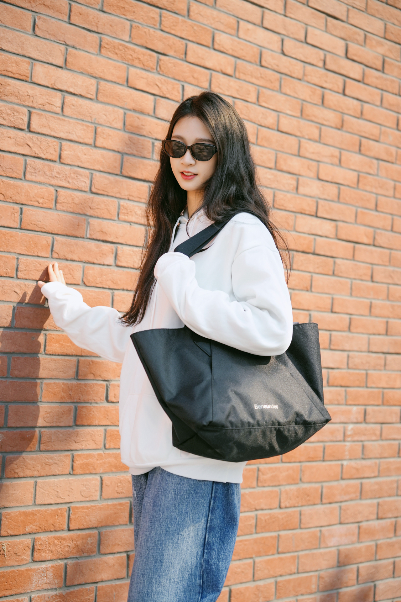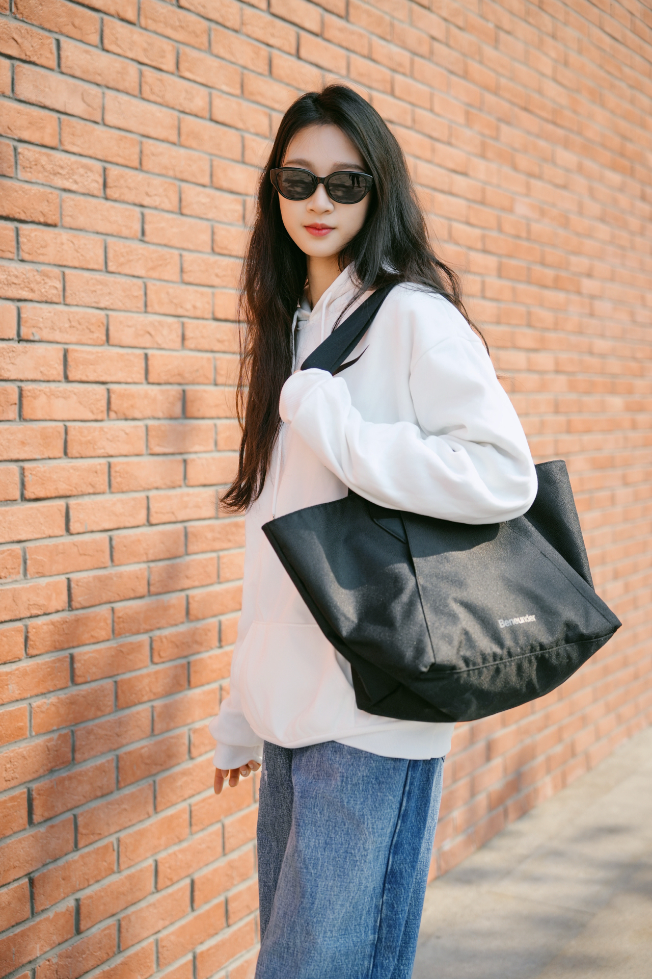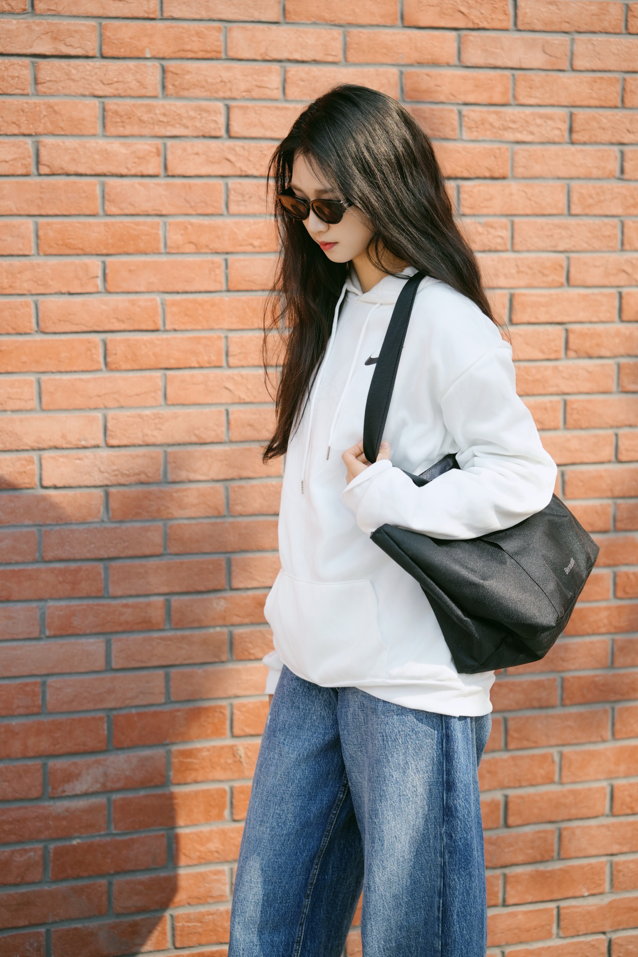 蕉下的小框墨镜纯黑方框设计,简约大气,百搭易配,让你时尚又有型。在搭配上奶白色的卫衣➕黑色单挎包真的是视觉感满满🫧 图源网络,侵删