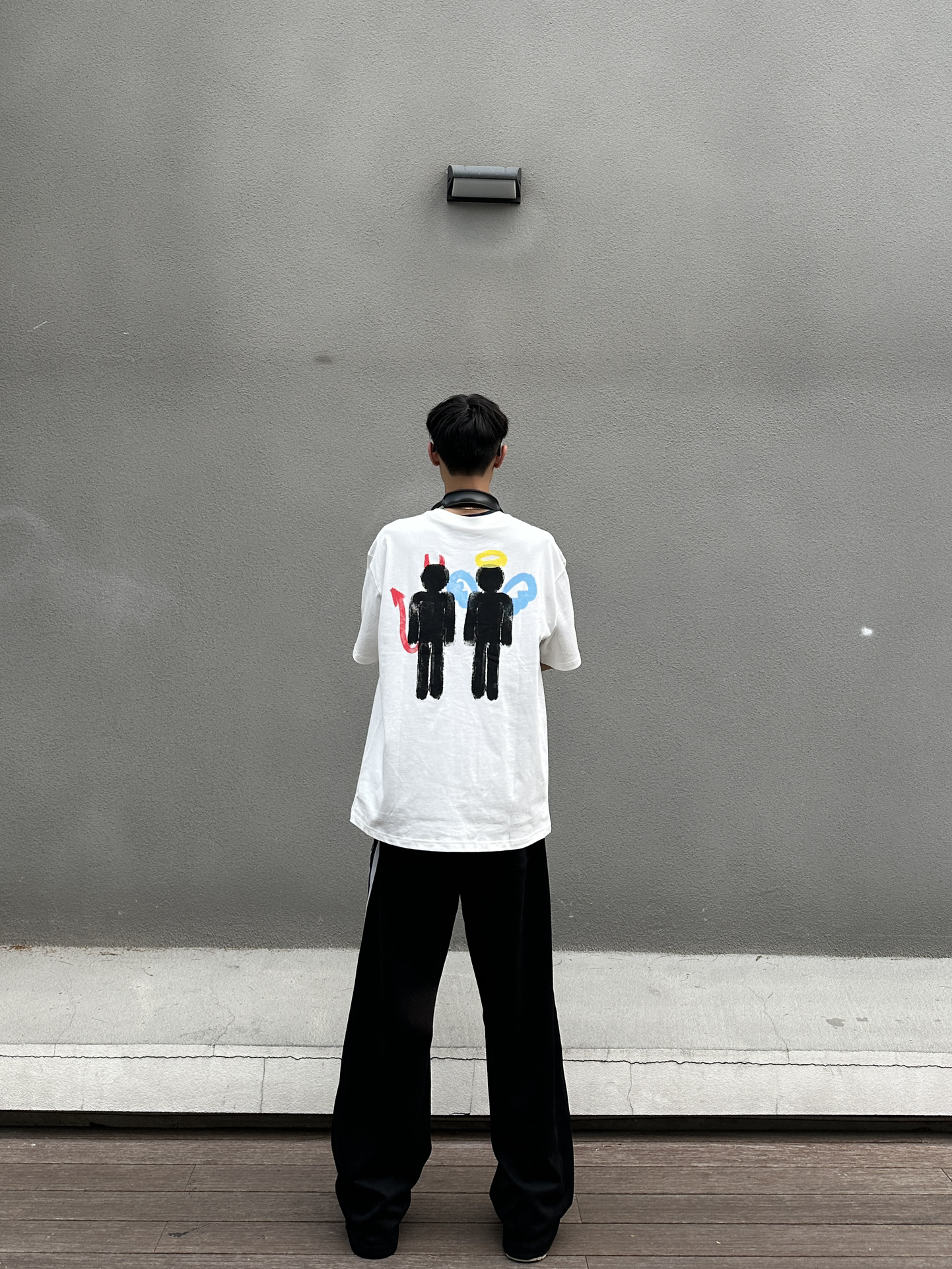 本篇笔记关联了【林枫松同款】Teach Peace 美式趣味恋人契约天使恶魔手绘胶印涂鸦圆领套头衫短袖T恤 男女同款 TP2310020007 白、BJHG 麂皮绒直筒阔腿休闲长裤 BJHG-50ACK517 炭黑等商品,为用户提供真实的使用体验和购买参考。
