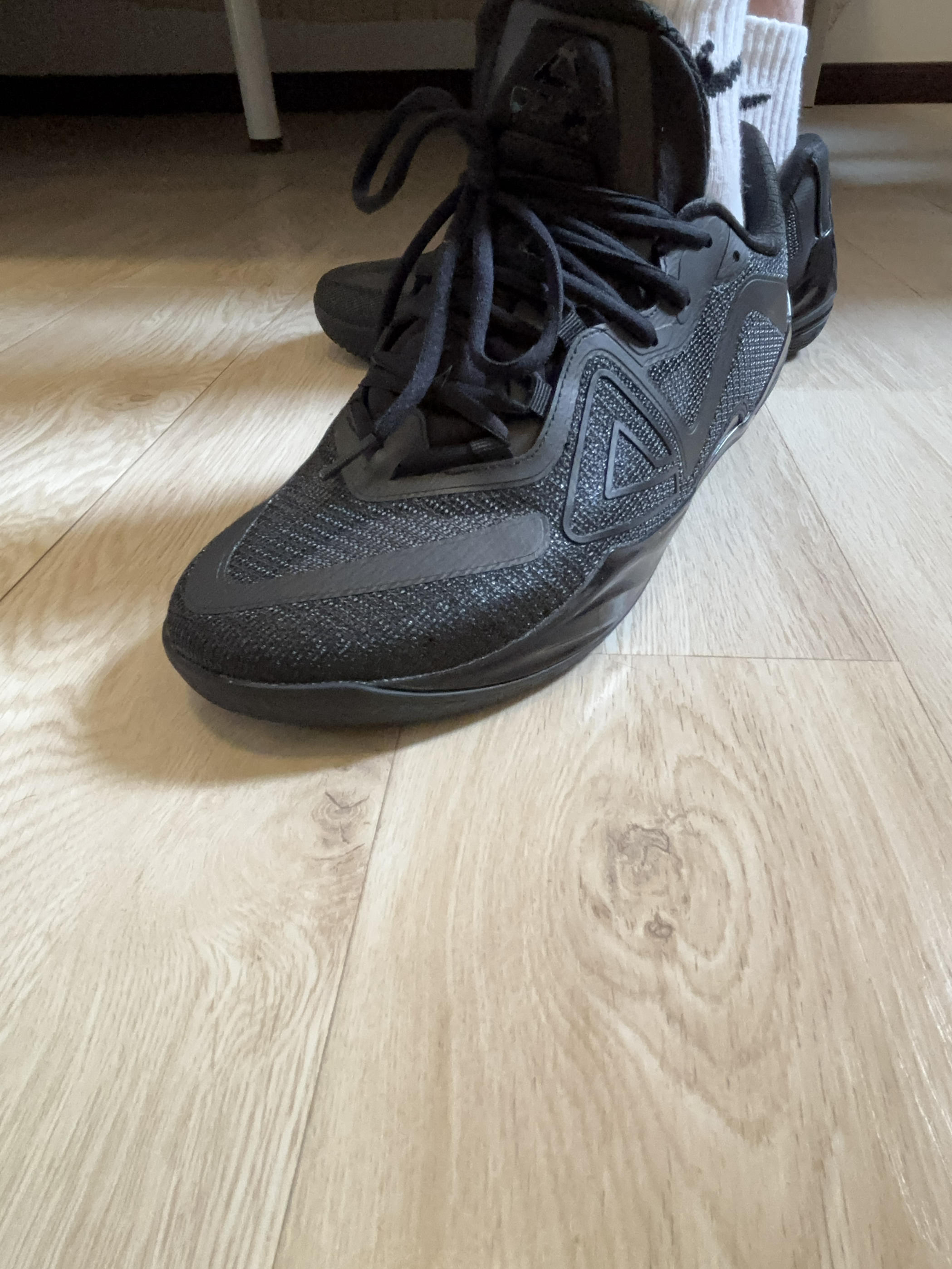 抢到首发匹克无双黑武士啦✌️ 太开心啦哈哈哈哈哈😂 薄底快靴的典型代表作👍 有多薄?鞋底一点几毫米 剩余的高度全靠厚厚的鞋垫 有多快?适合快速突破党 很像靴?有点点像 🦶脚型适配 完美适配宽脚掌 👟动态鞋脚一体型没得说 鞋跟处无双logo 鞋外侧匹克三角logo 鞋前侧三角形logo 赠送了运动短袖T恤 依然是大爱❤️ 最近各款球鞋黑武士配色一绝 打球通勤两不误的选择 关键是耐脏抗造👍