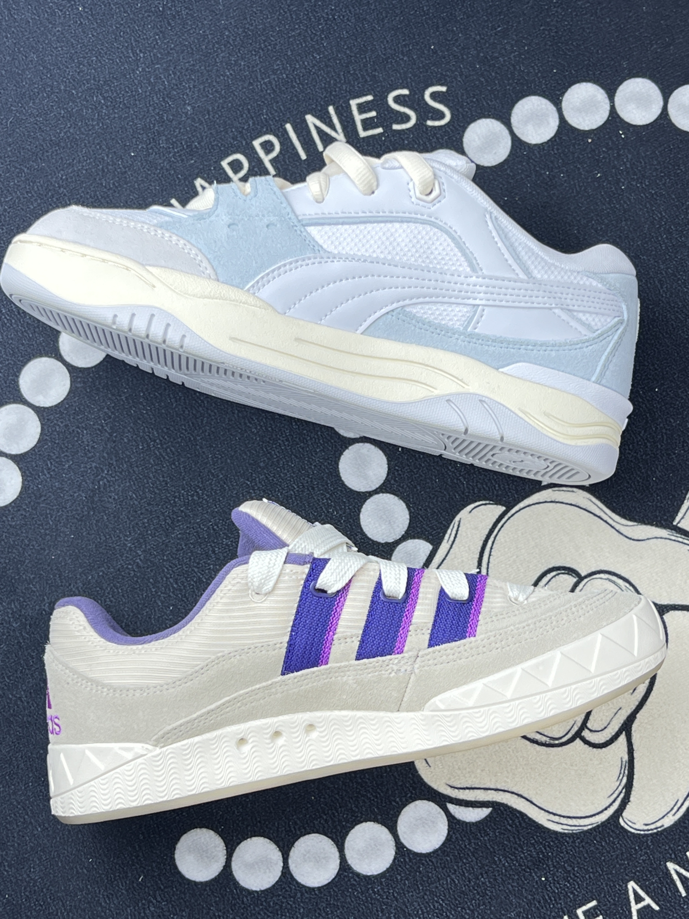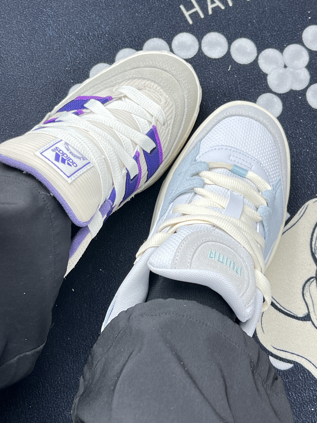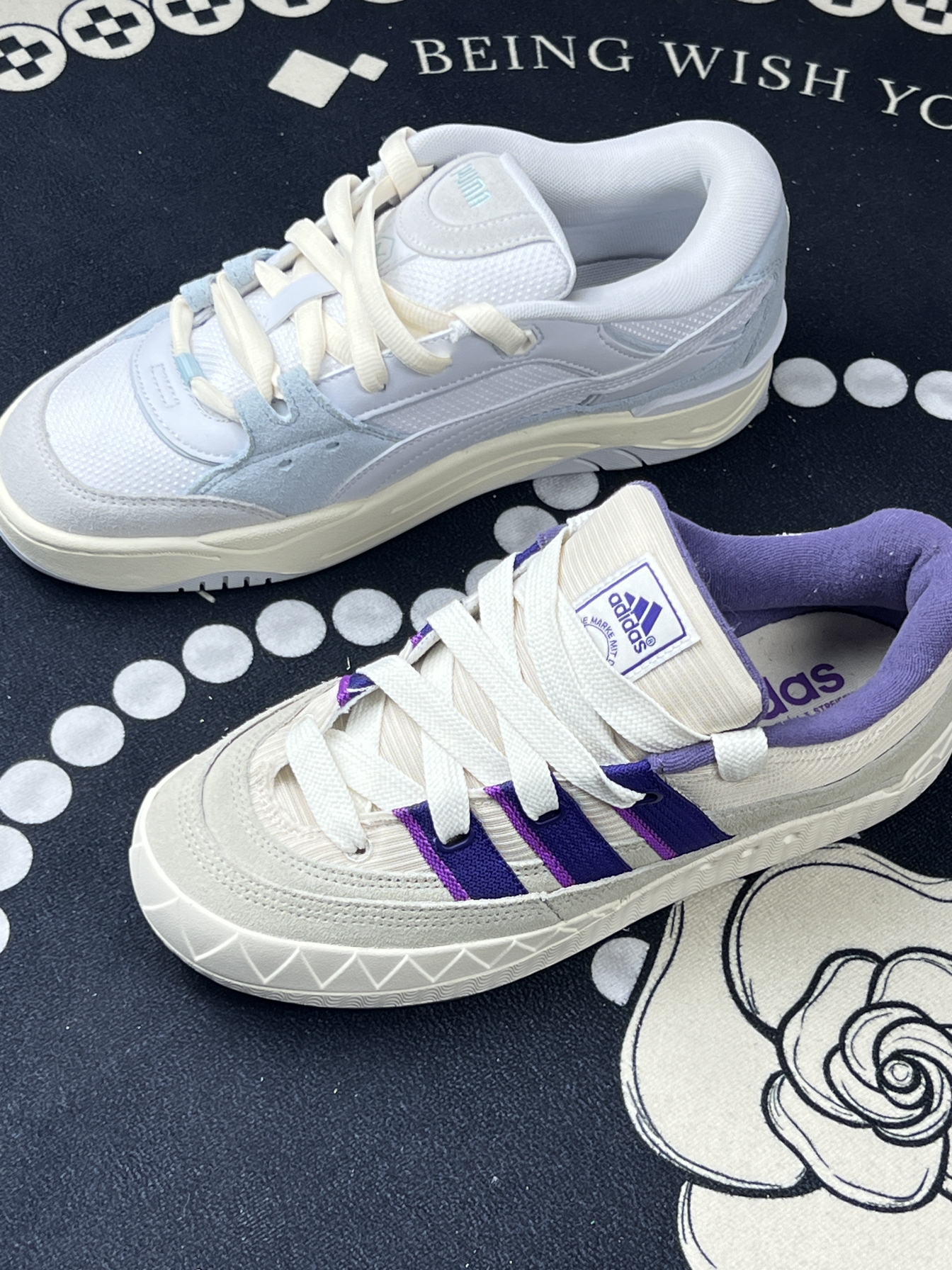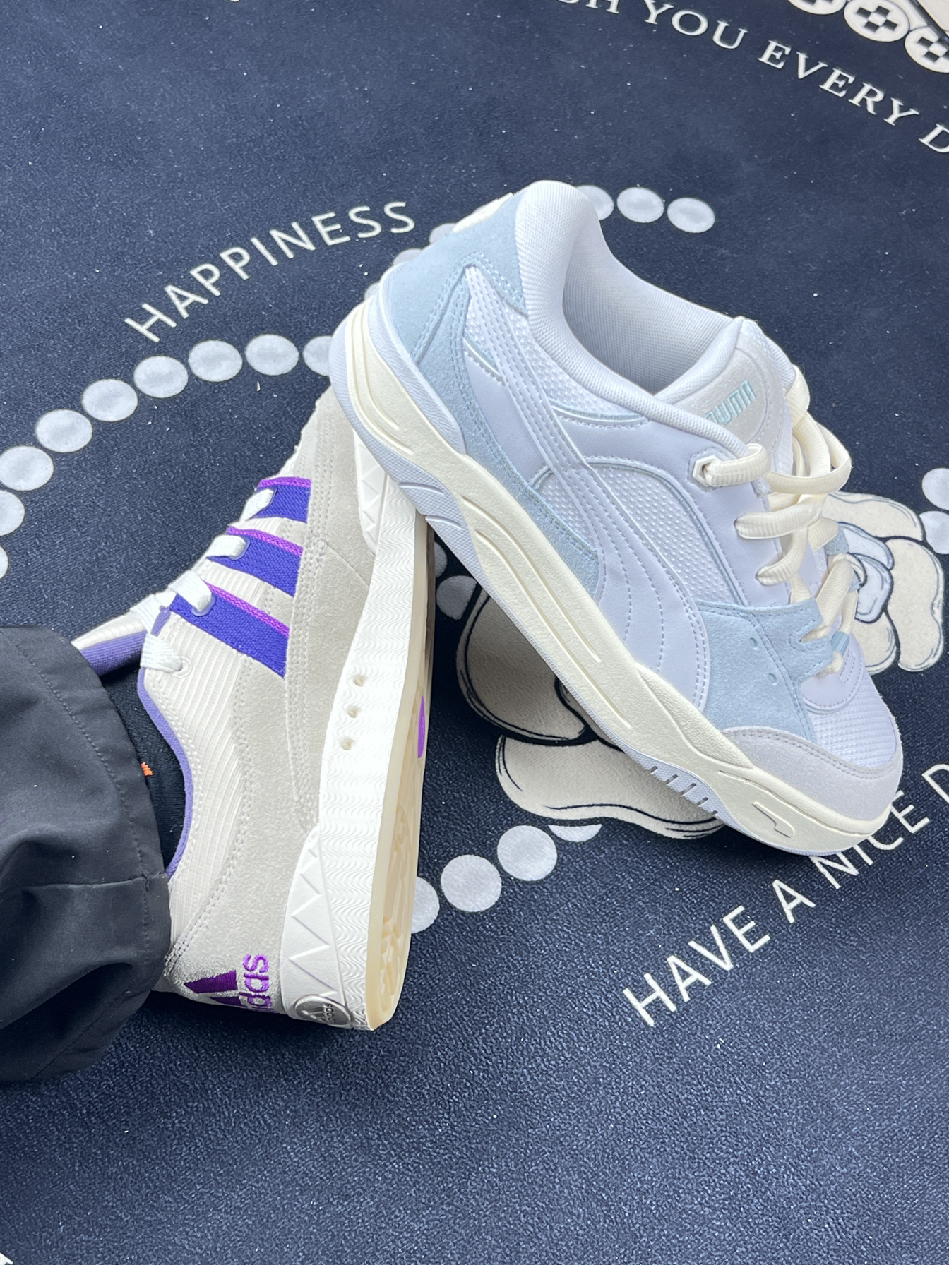 最近新入了Adidas和Puma这两双宝藏鞋子,有点丑萌丑萌的面包鞋!我感觉对胖脚很友好耶❗️来跟大家分享下感受~ ⭕️Adidas这双鞋整体是米白色调,搭配亮眼的[惊恐_blue]紫色条纹,简约中透着活泼,经典三条纹元素辨识度超高[鉴别_blue] ⭕️Adidas的脚感,鞋底有一定弹性,走路时能感觉到缓震,长时间行走也不会太累。 ⭕️小缺点揪出来[裂开_blue]Adidas这双鞋白色部分不耐...