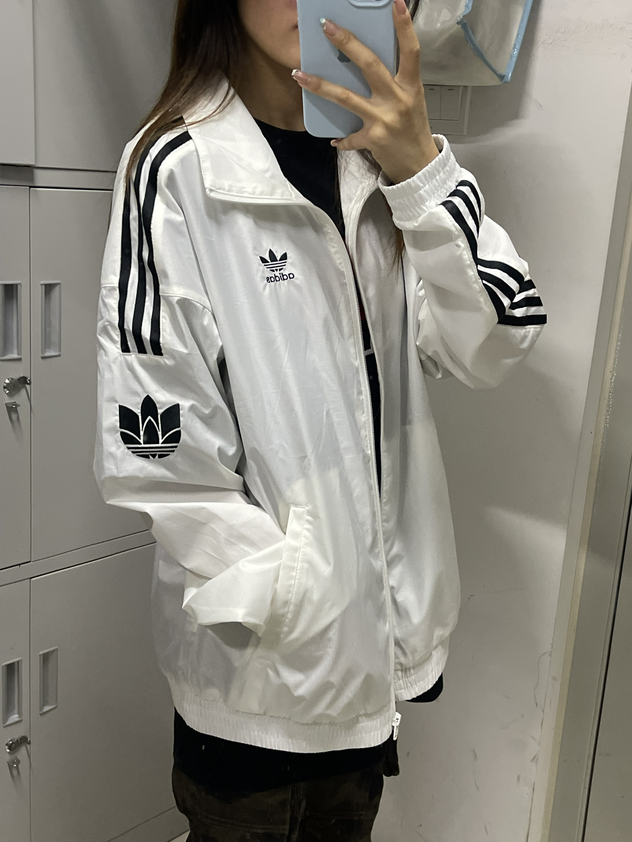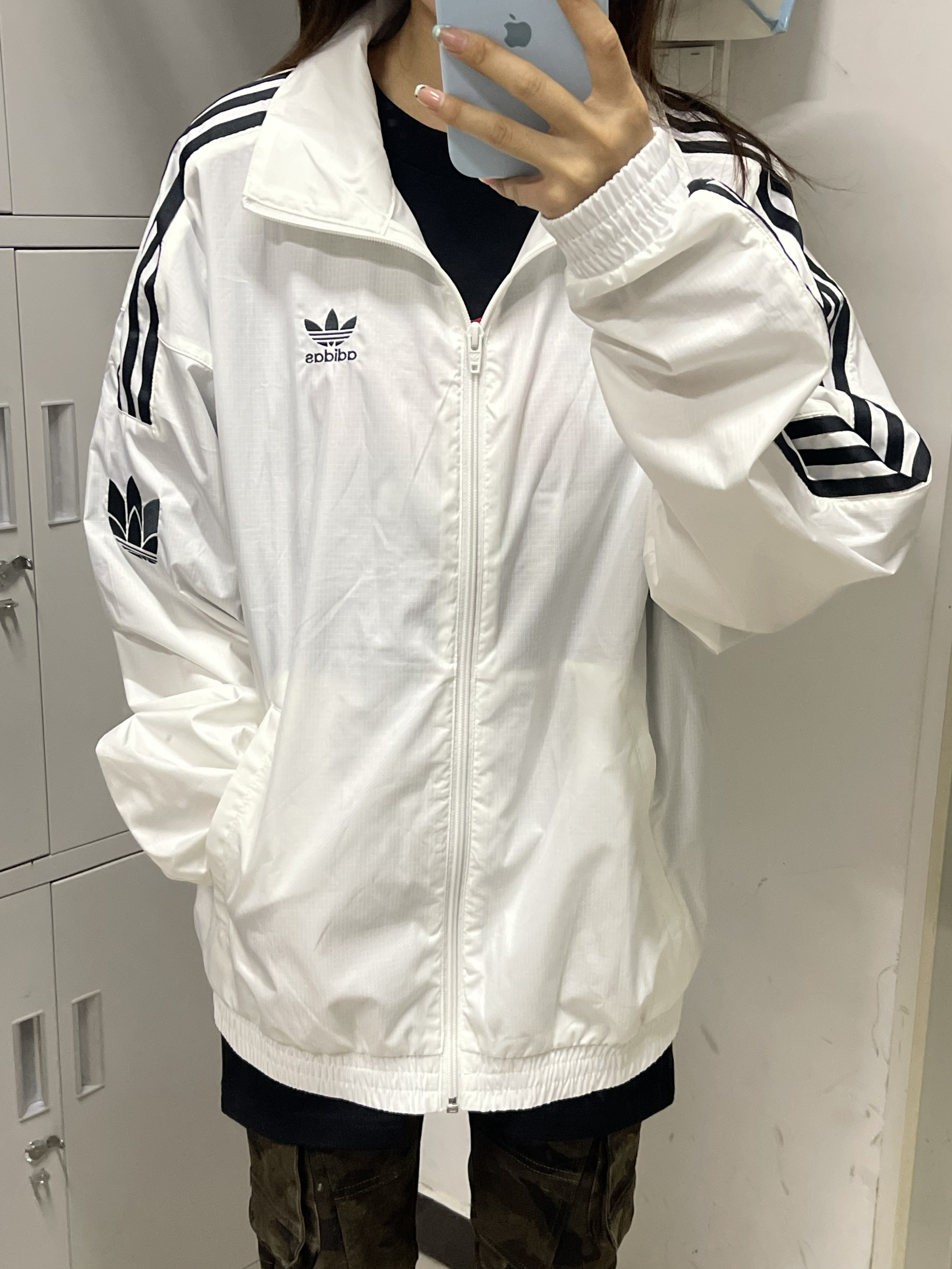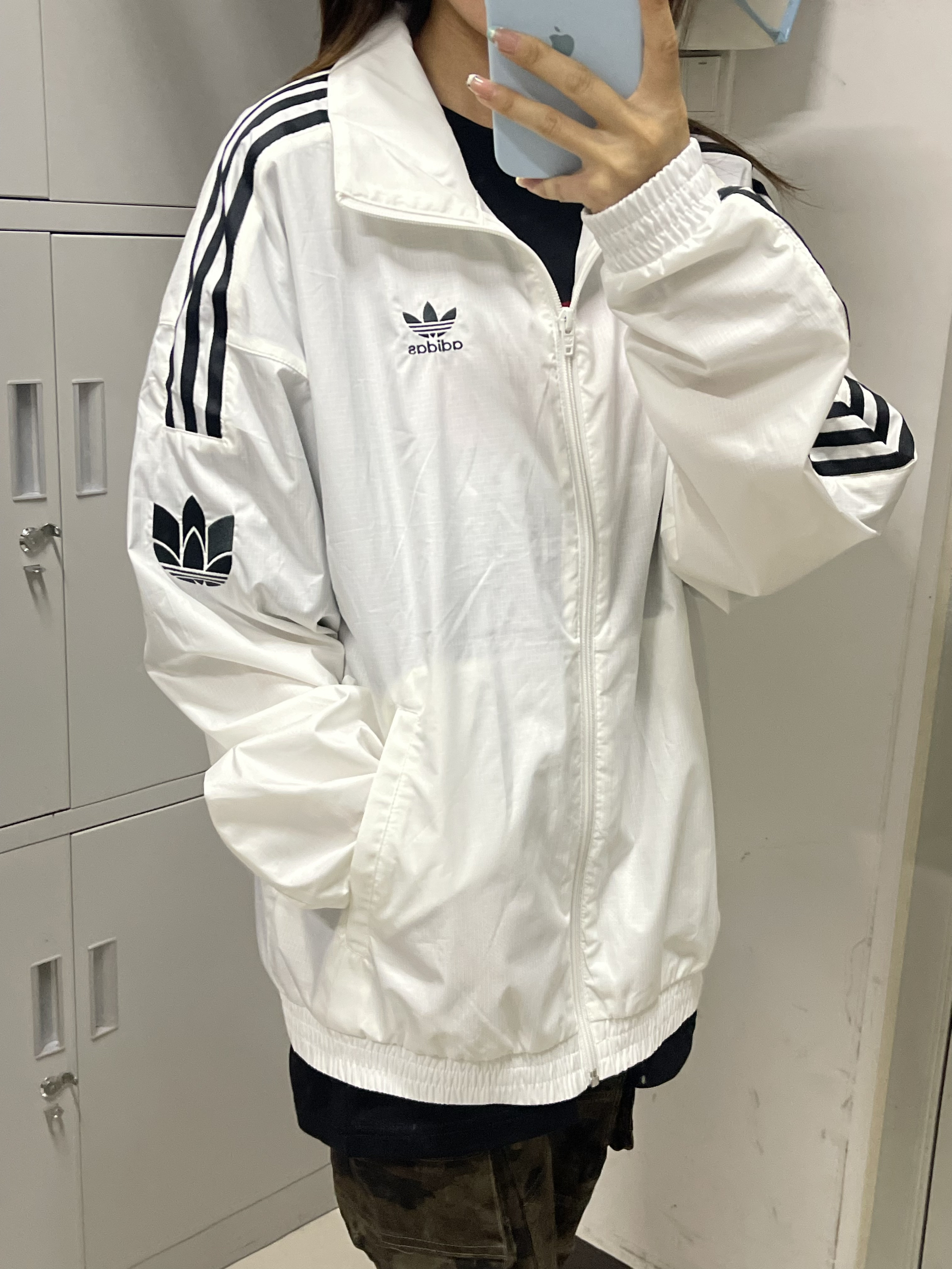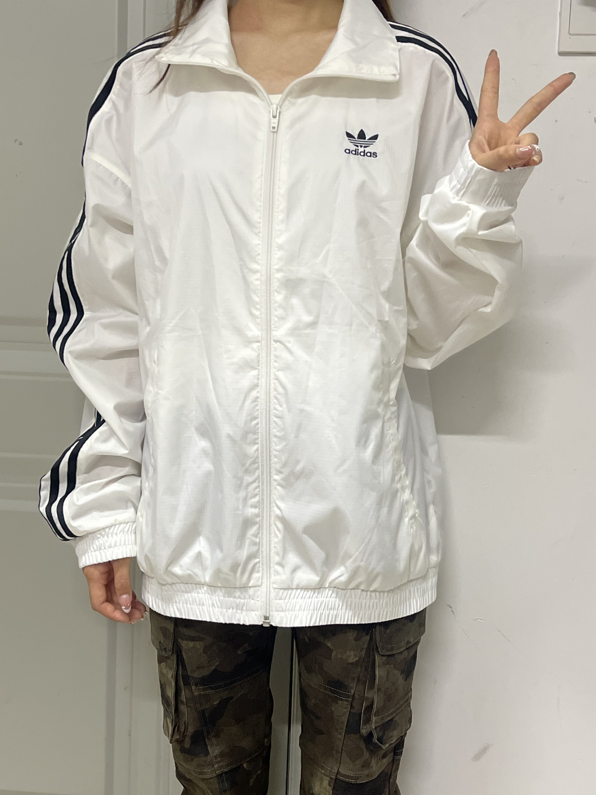 👕推荐单品:阿迪达斯外套 🛒推荐理由:上身轻薄,物美价廉,很适合现在穿,宽松又显瘦,很好搭配 🧍🏻尺码对照(身高|体重):163/90 M码 💰价格参考:300