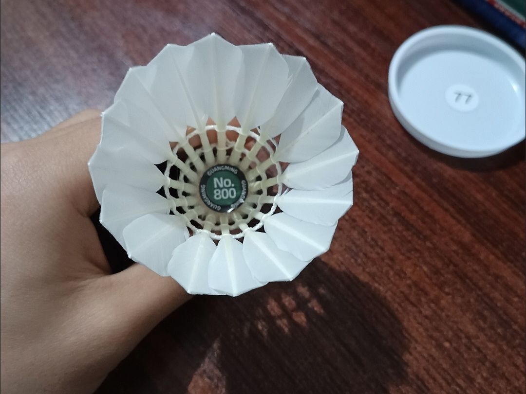 🎉羽球党看过来 | 翎美光明 800 实测🎉 最近打球一直用翎美光明 800,真的有被惊艳到!先夸夸这细杆设计,握感超舒适,挥拍时特别轻盈,感觉手腕都没那么累了,娱乐训练用它超合适。鸭毛材质更是亮点,飞行稳定性绝了,每次击球看着它稳稳地划过空中,轨迹漂亮又精准,落点基本都在预期内。而且耐打度也不错,性价比超高,打了好几场都没换球。真心推荐给各位球友,图源网络,侵删!