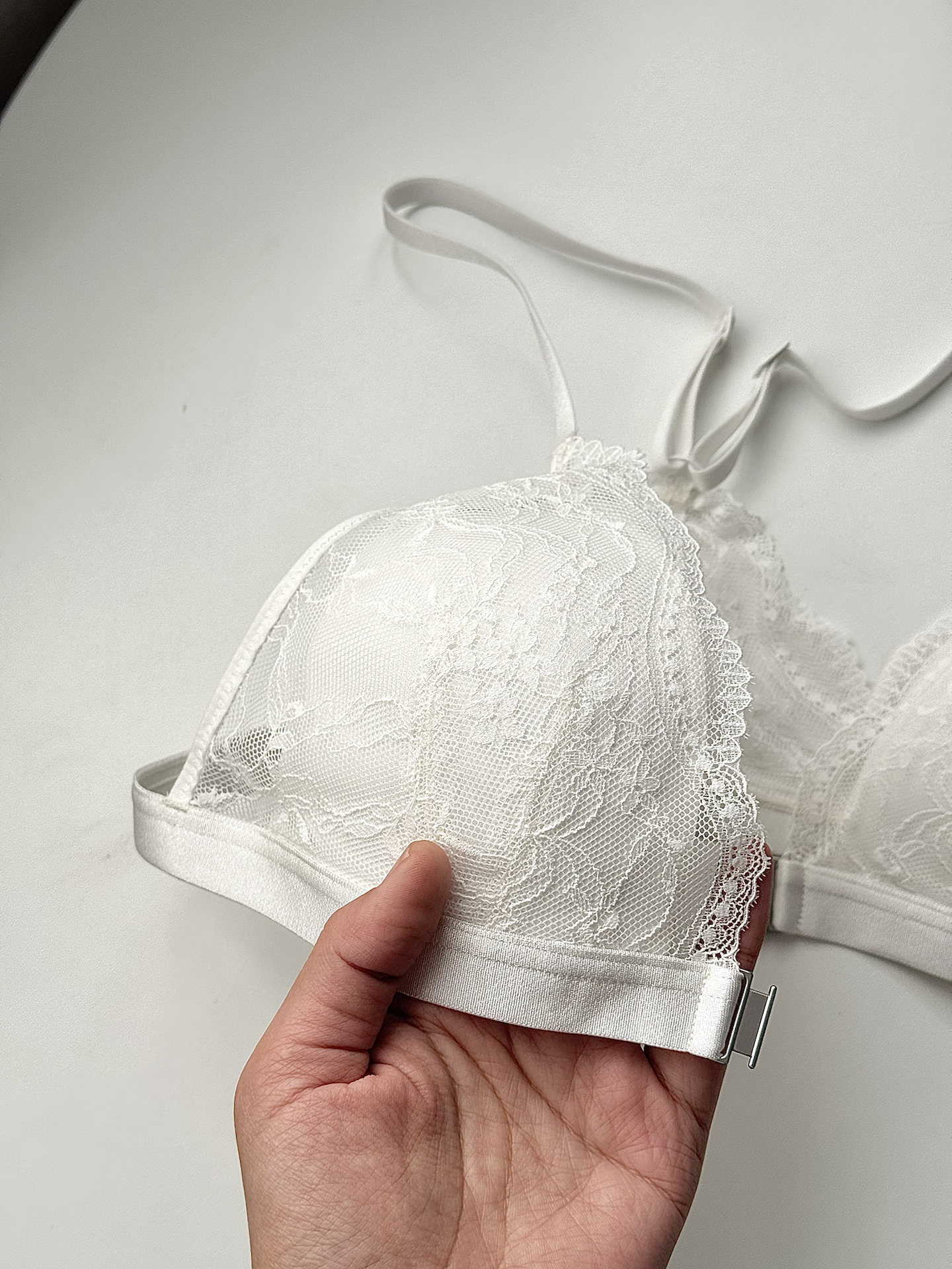 爱穿紧身t胸部扁塌真的不好看 穿上介个蕉内蕾丝内衣尊的好像平地起高楼 内衣圆润有型 让整个胸部都聚拢起来,胸型敲好看诶! 这款是前扣设计穿脱方便多啦~ 穿上后没有束缚感 因为质感尊的很薄,胸部也放松不少! 蕾丝款很仙儿,太懂我们女生的内心感受啦[狗头_blue]