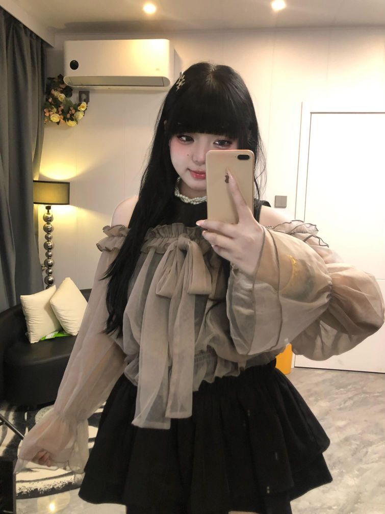 这个小裙子质量真的超级无敌爆炸好!看似普普通通实际超级重工!克重很足!而且里边自带花苞安全裤 整个裙子是蓬蓬的 腰部掐的特别细!外边的罩衫温温柔柔的 胸前的绑带有很多种系法 我这里简简单单系了个蝴蝶结🎀 里边搭配小内搭这个季节穿刚好 等在暖和点 直接吊带配罩衫也是超绝