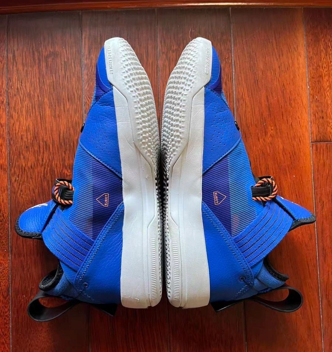 首先颜值真的没得说,海洋蓝的配色清新又独特,在球场上相当吸睛,整体设计层次感丰富,越看越喜欢,给它的颜值打9分。 包裹性是这双鞋的一大亮点,Fastfit鱼线系统搭配厚实的鞋面材料,上脚就能感受到那种被紧紧包裹的感觉,后跟处的海绵也能很好地保护跟腱,就像给双脚定制了一副铠甲,包裹性我给10分。不过刚开始穿的时候确实有点难穿进去,需要费点力气。 缓震方面,前掌的大气垫反馈明显,每次突破和起跳都能...