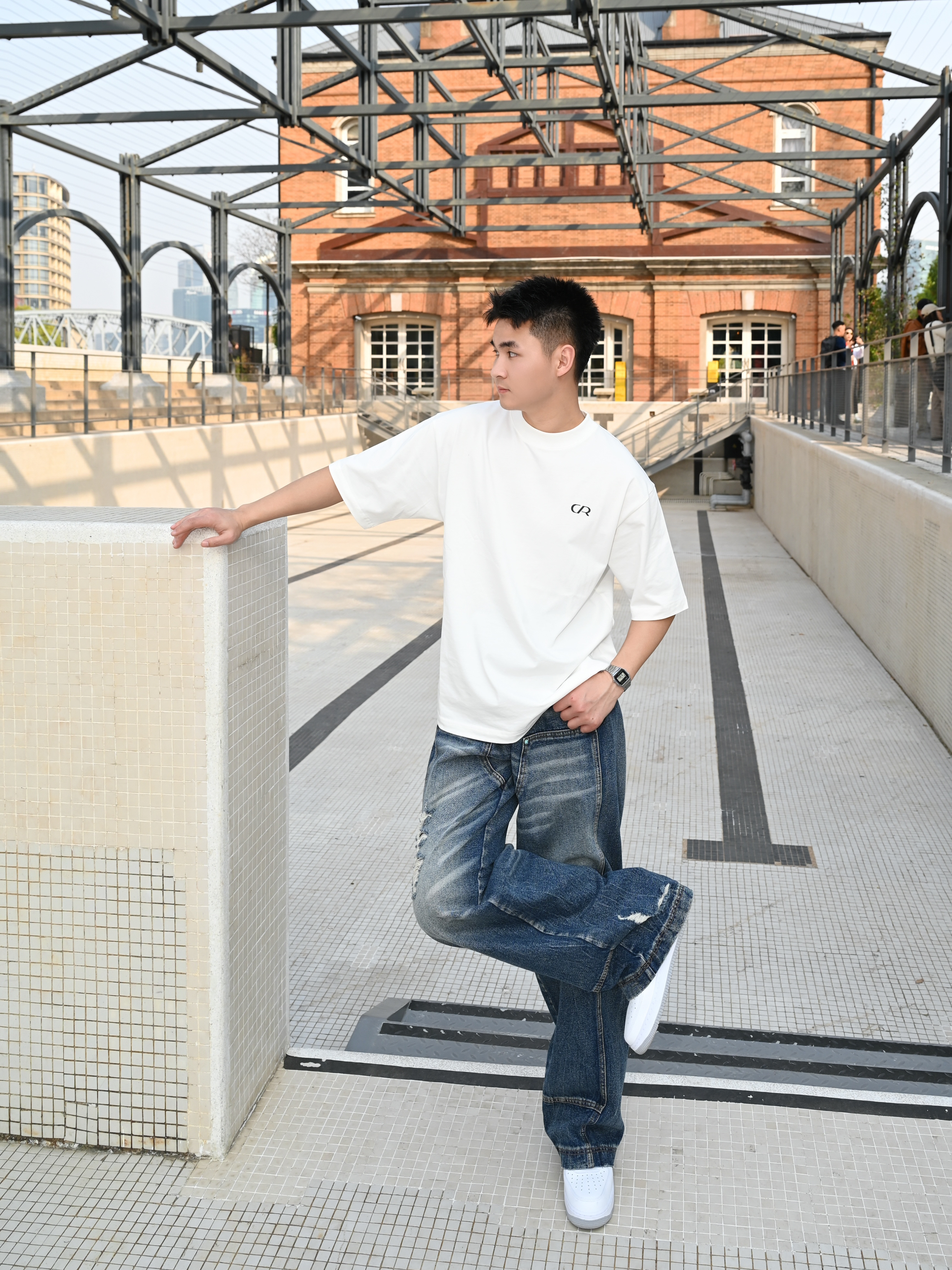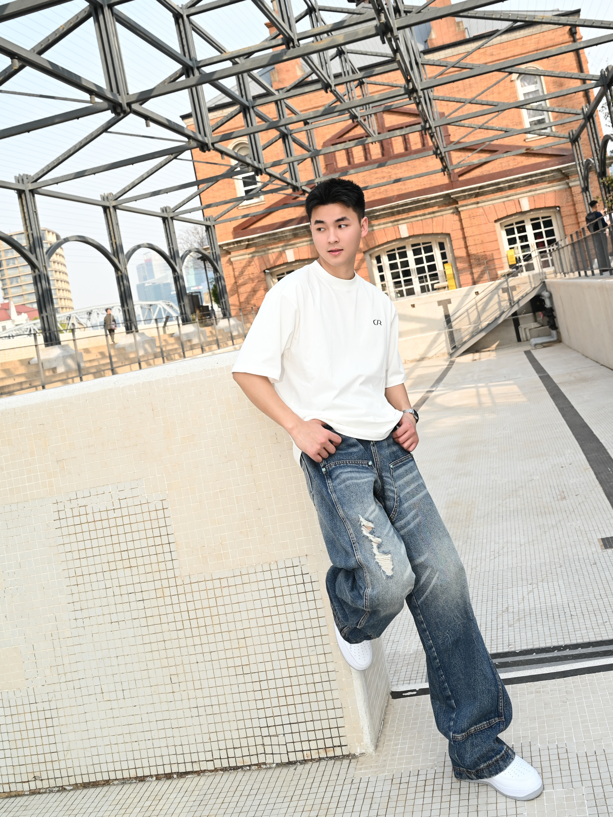 今日出街穿搭是让人很难拒绝的 满满的街头风穿搭带来的松弛感 白色印花T恤,宽松版型就很有vibe 百搭也很耐看,穿上敲有型 搭配一条破洞牛仔裤和AF1白灰 夏天这么穿也是帅气和松弛感狠狠拿捏住了