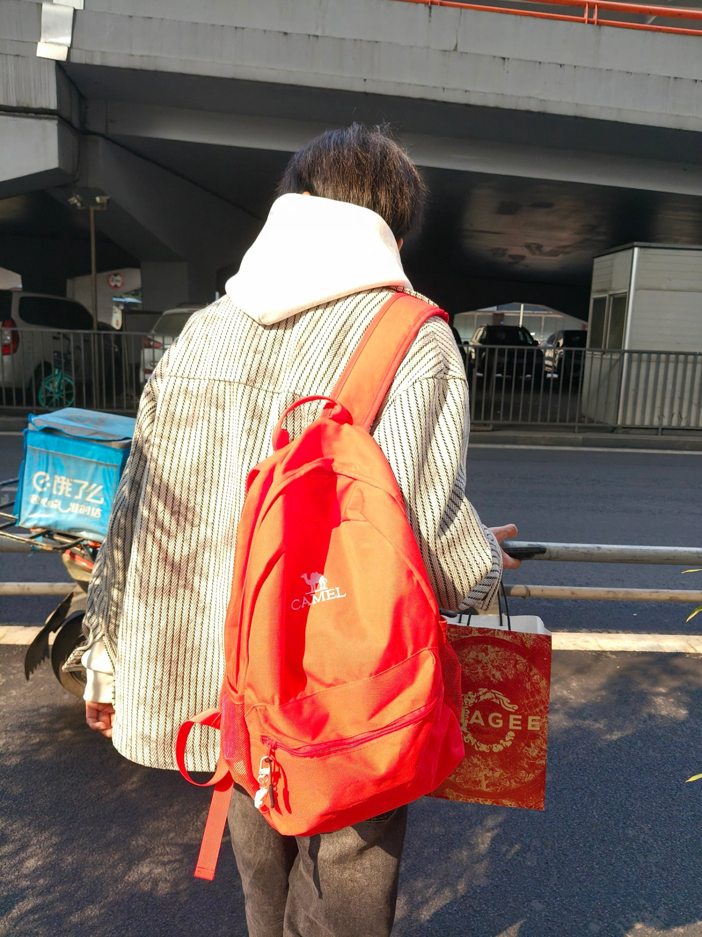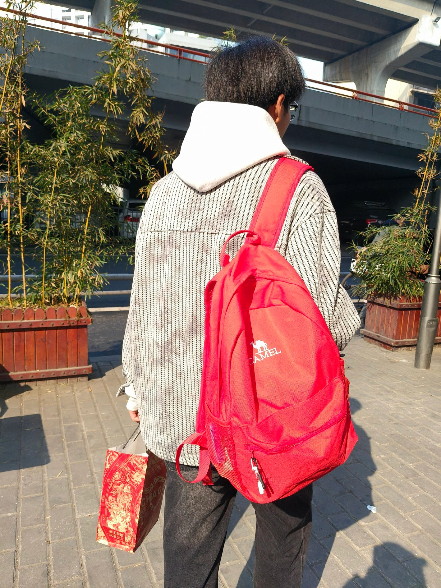 出门玩男朋友帮我背包,意外发现男生背也很好看,红色特别正,在阳光下面很好看#出门游玩必备红色双肩包