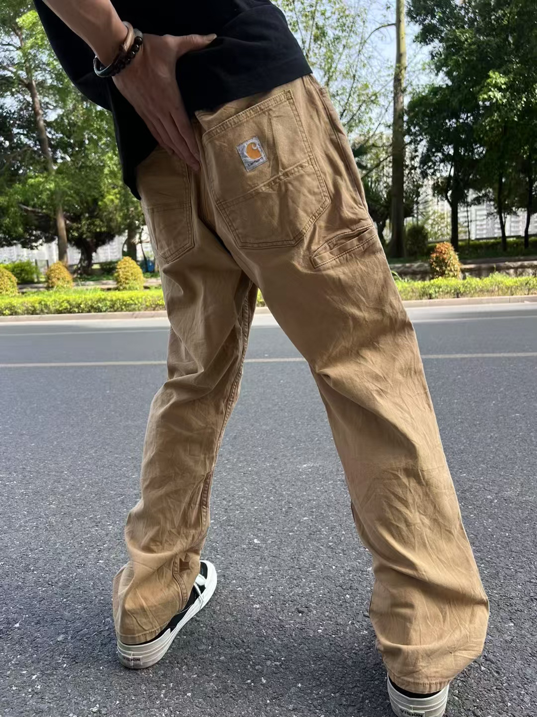 分享一些自己喜欢穿的卡哈特裤子#卡哈特裤子 身高|体重:178 130 🧍♂️ 穿搭风格:简约时尚 👔 上衣:黑色T恤 👖 下装:卡哈特裤子 👟 鞋子:vans 板鞋 🎒配饰:🈚️
