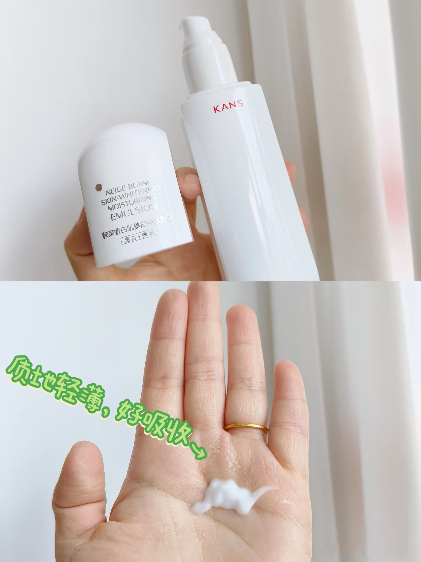 本篇笔记关联了Kans/韩束 白蛮腰雪白肌护肤套装【水+乳】 美白淡斑保湿弹嫩去黄提亮改善暗沉淡纹紧致肌肤 水100ml+乳100ml等商品,为用户提供真实的使用体验和购买参考。