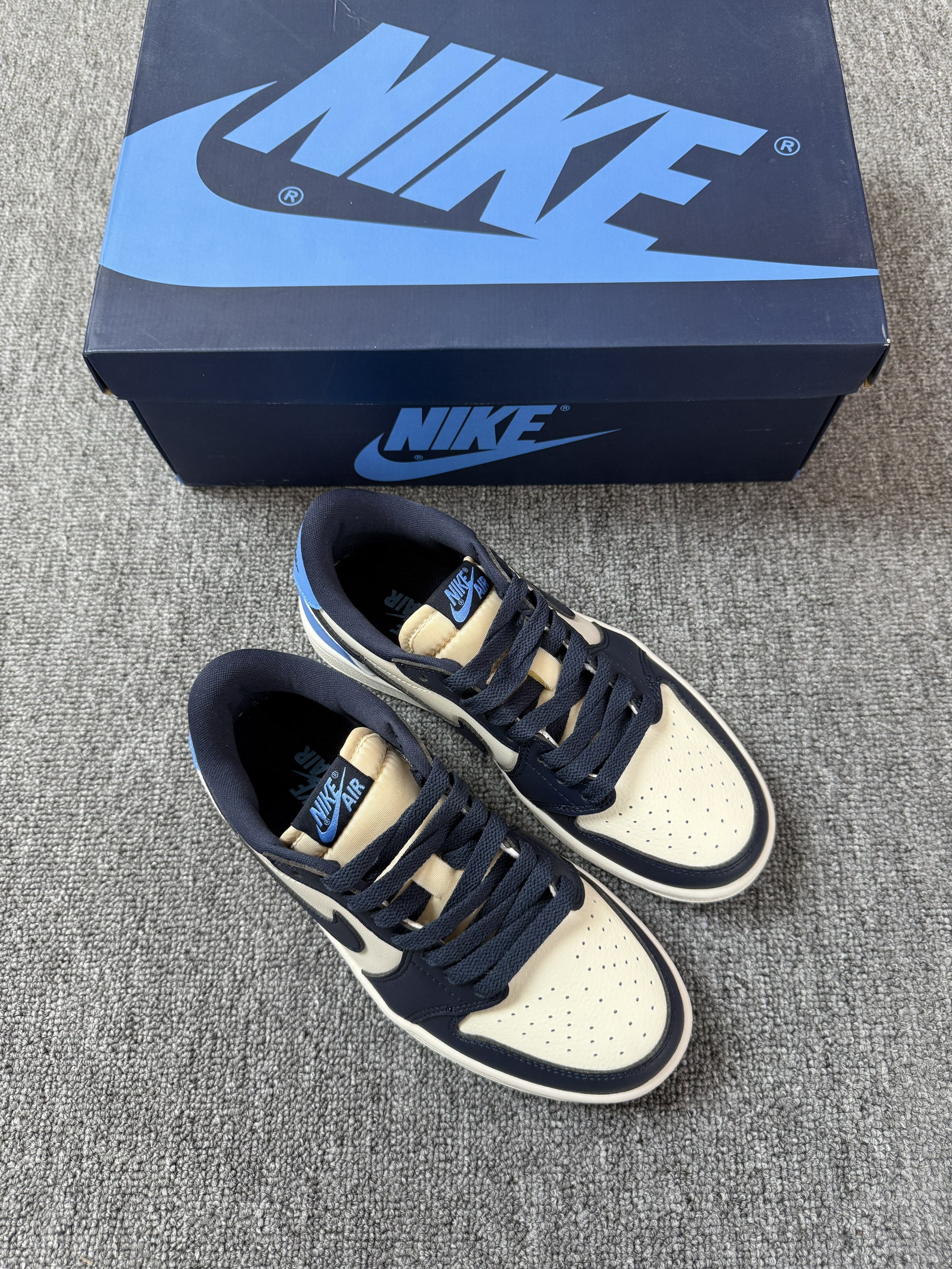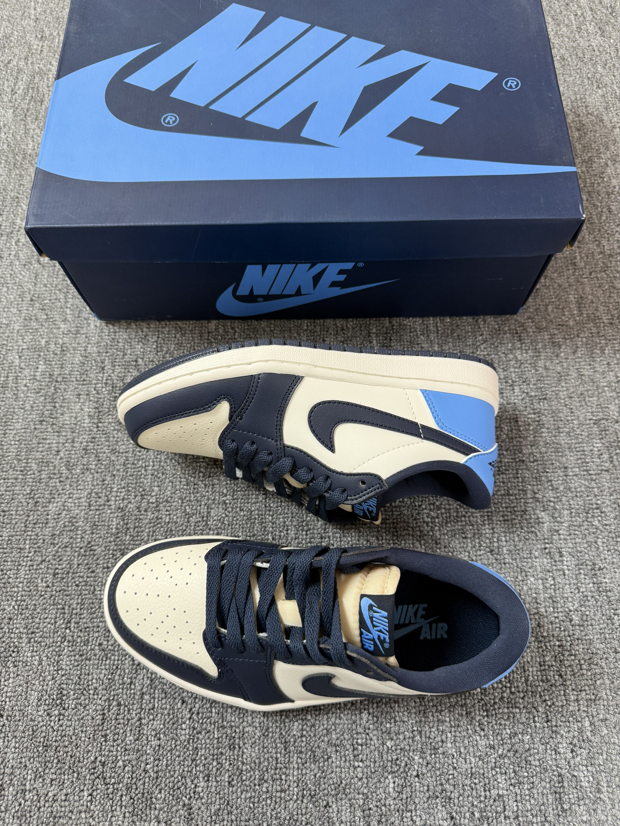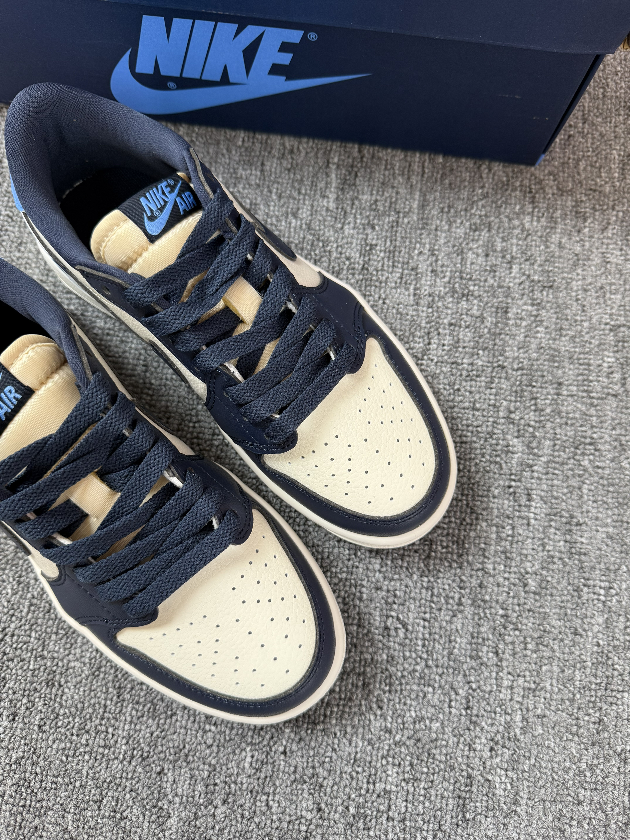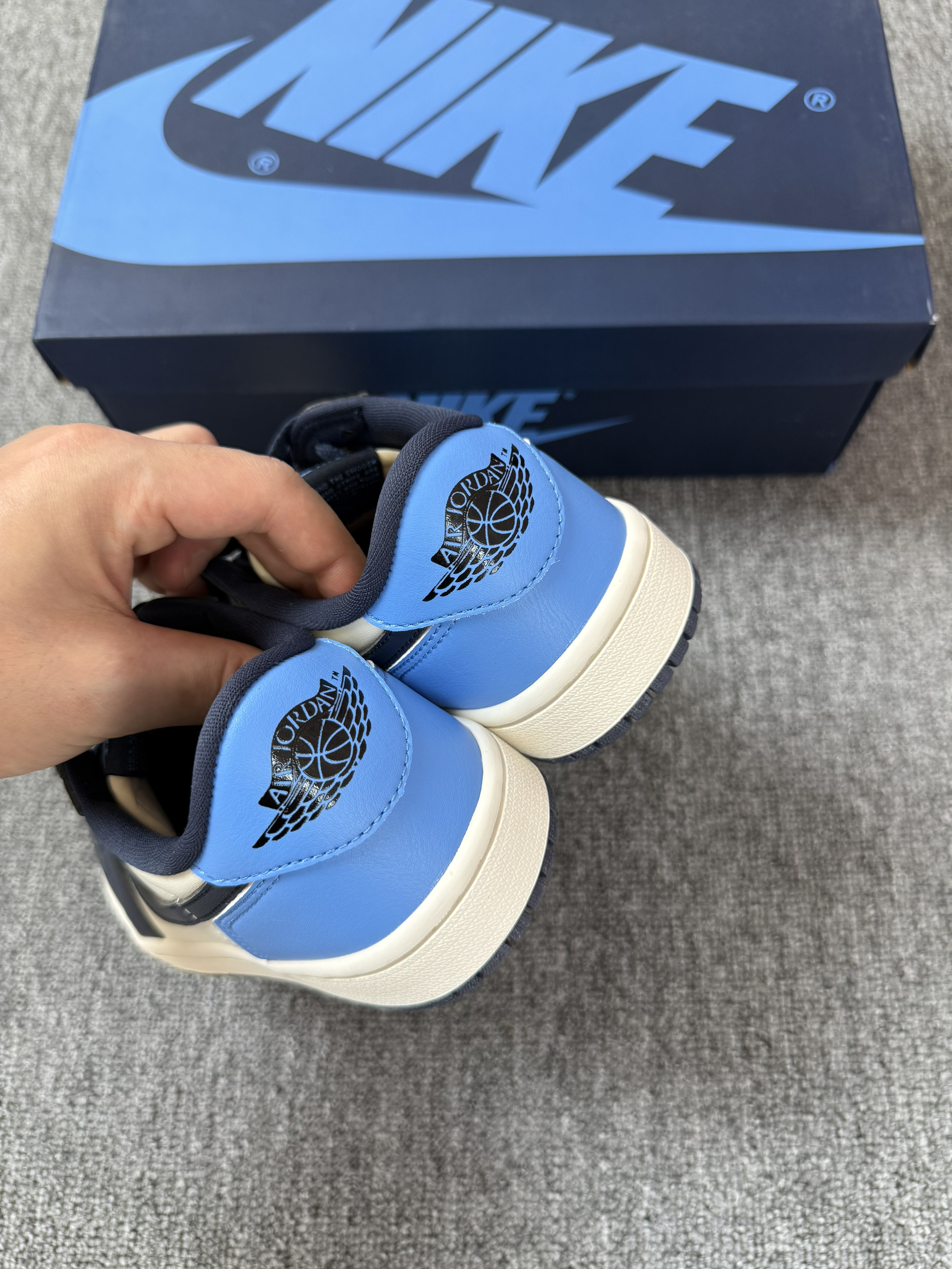 今日份好鞋分享来啦~ 谁懂!春夏也可以穿心爱的北卡蓝啦! 告别冬季高帮鞋~穿上低帮黑曜石~ 感觉搭配白色褶皱短裙也敲好看~