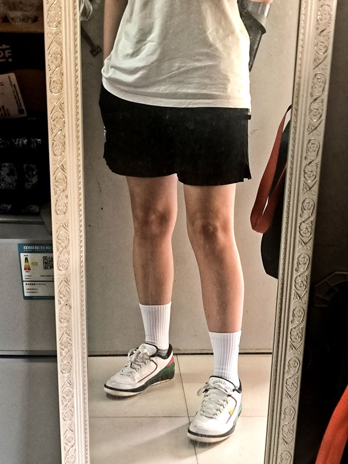 这双aj2我是越看越喜欢,在众多aj2的配色中,只有它鞋侧有jordan logo,白色也百搭,还是联名款,之前500左右拿下的,没想到居然还能涨,更喜欢了 这个短裤就比较美式,算四分裤吧,黑色随便搭