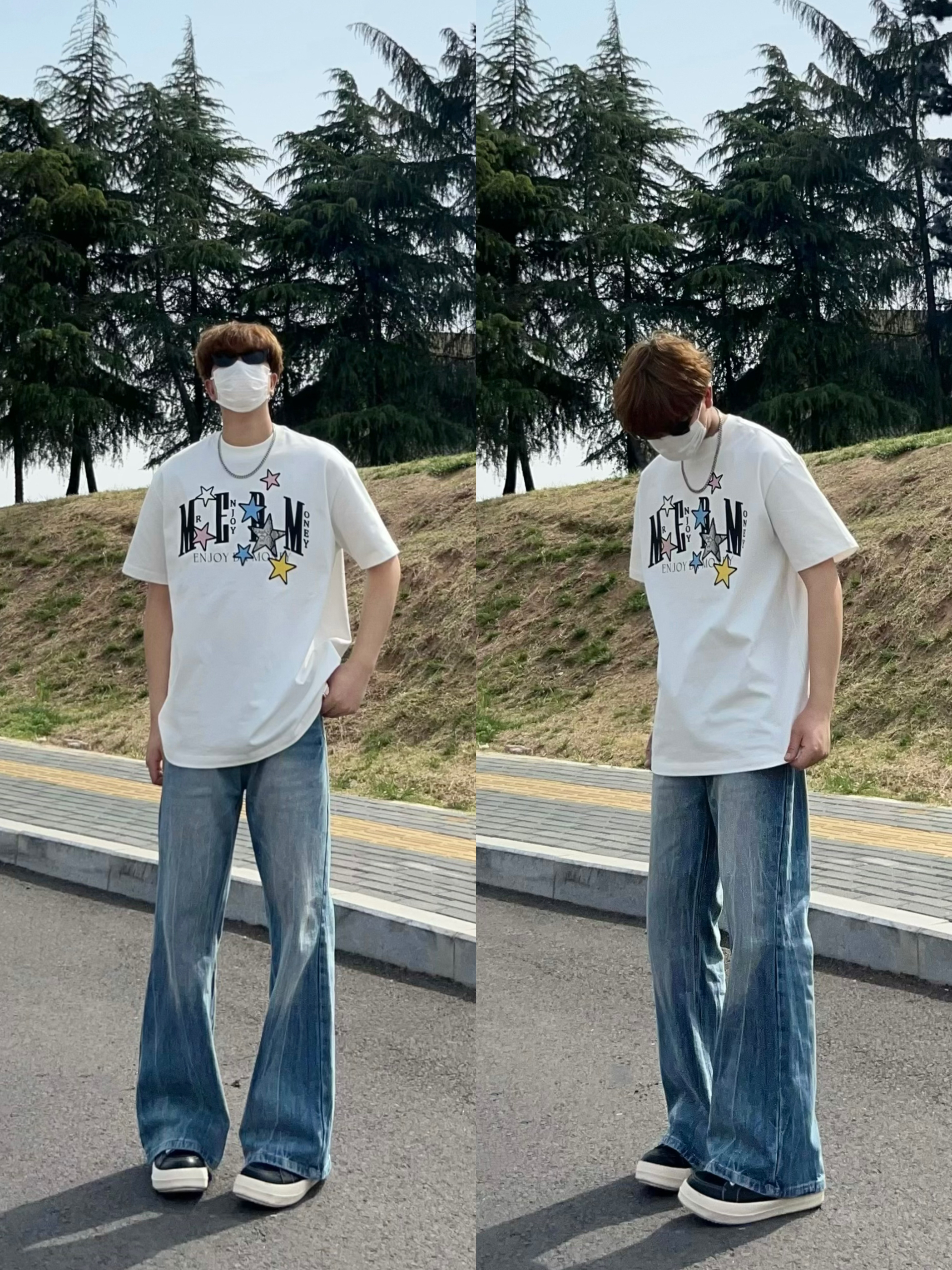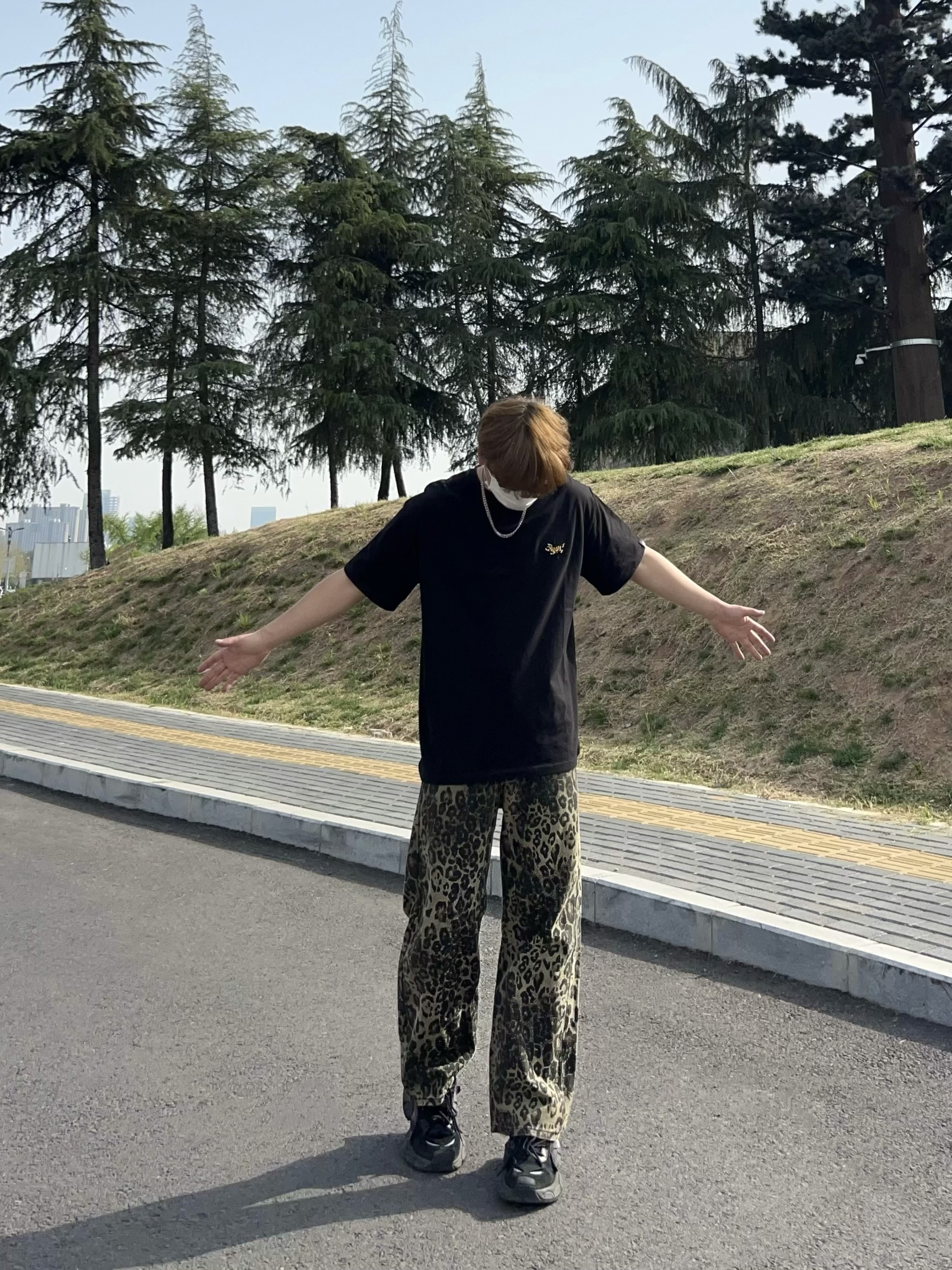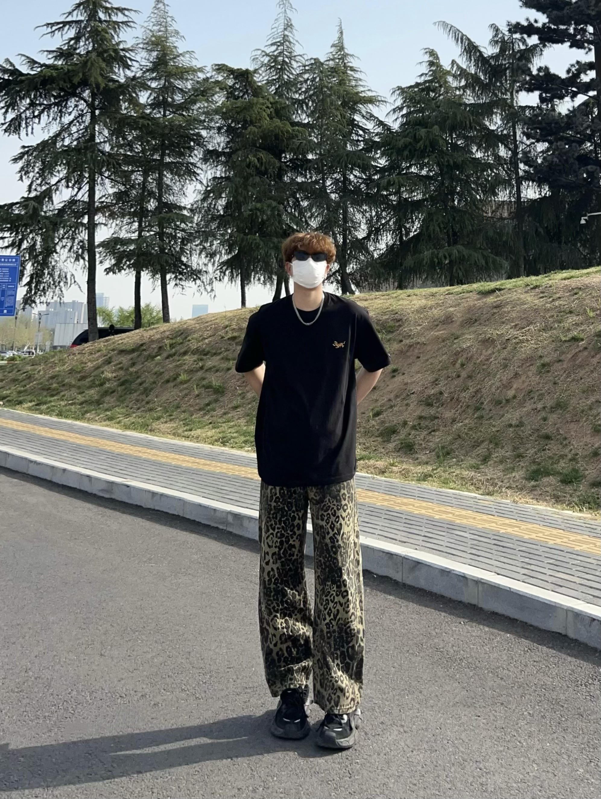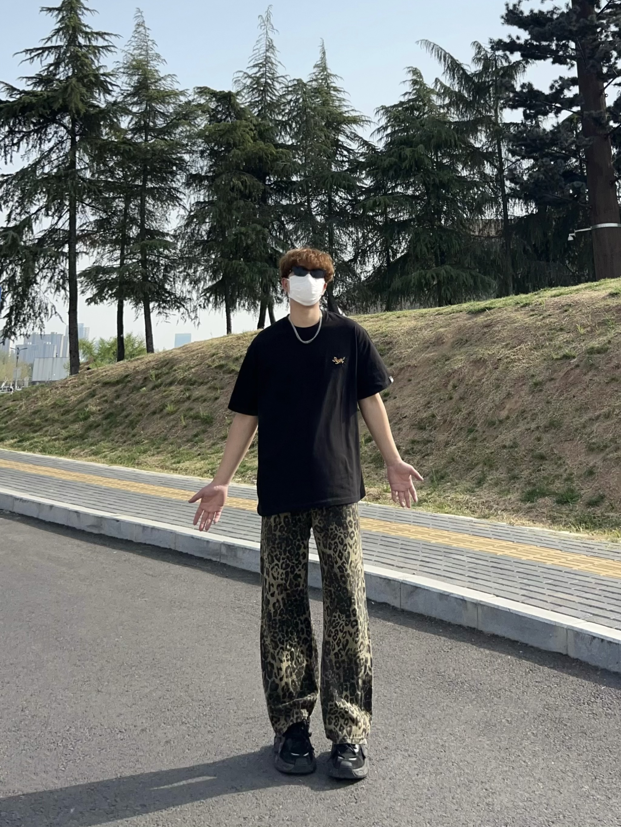 男生根本逃不了黑色短袖的魅力 这款简约黑T上身宽松有型 胸前老虎小刺绣 好精致 搭配一条豹纹裤 这美式风不就来了