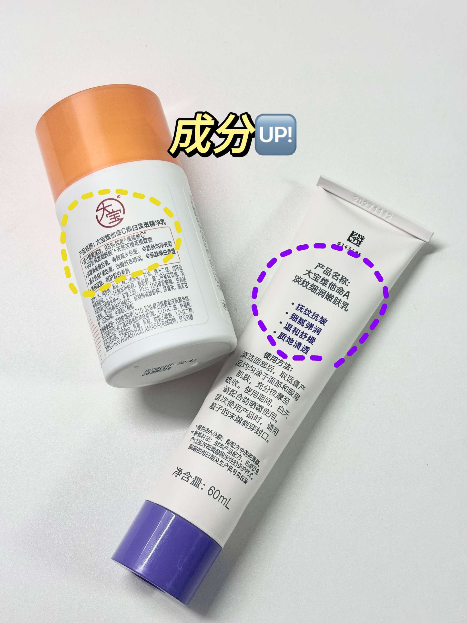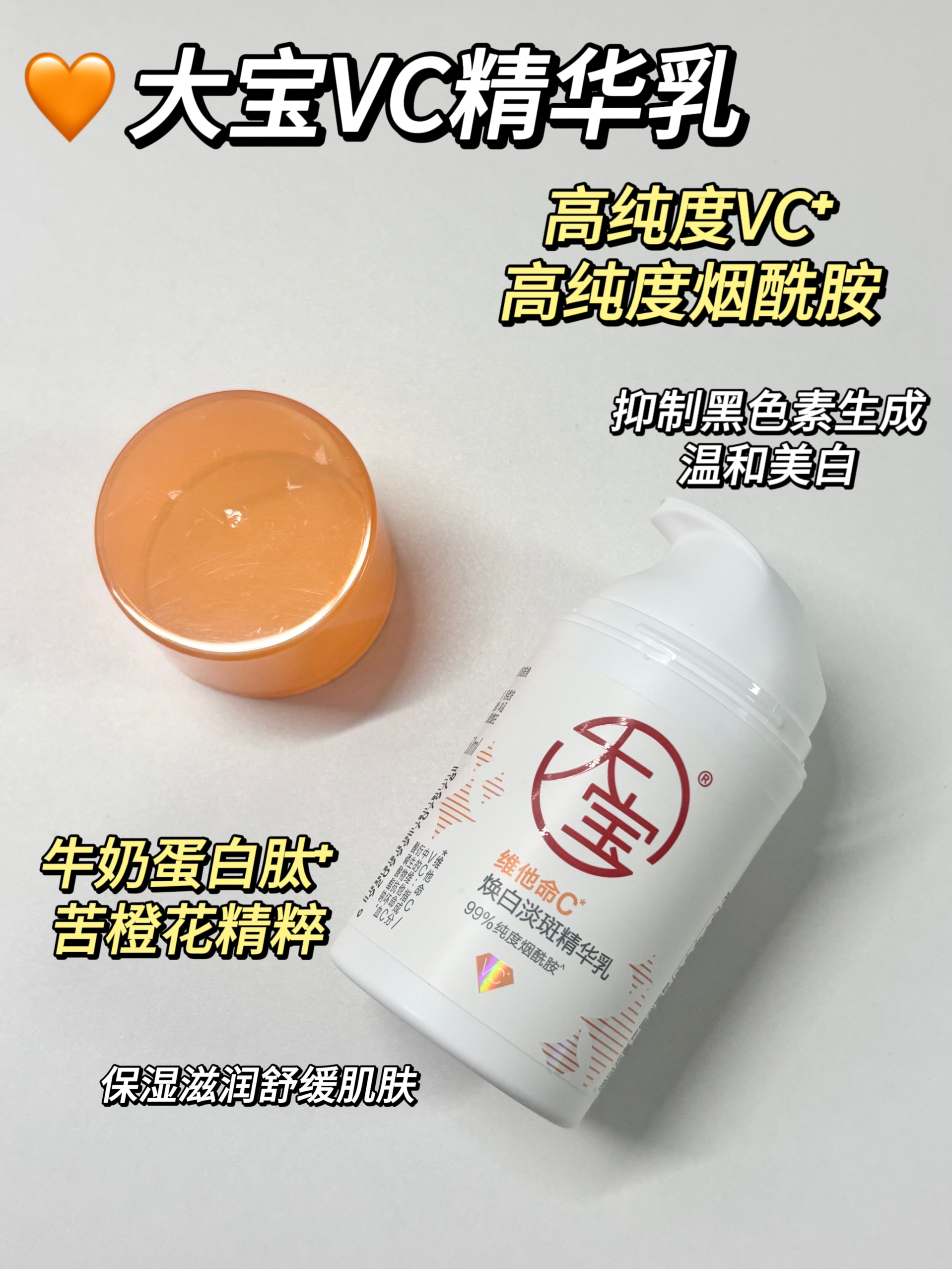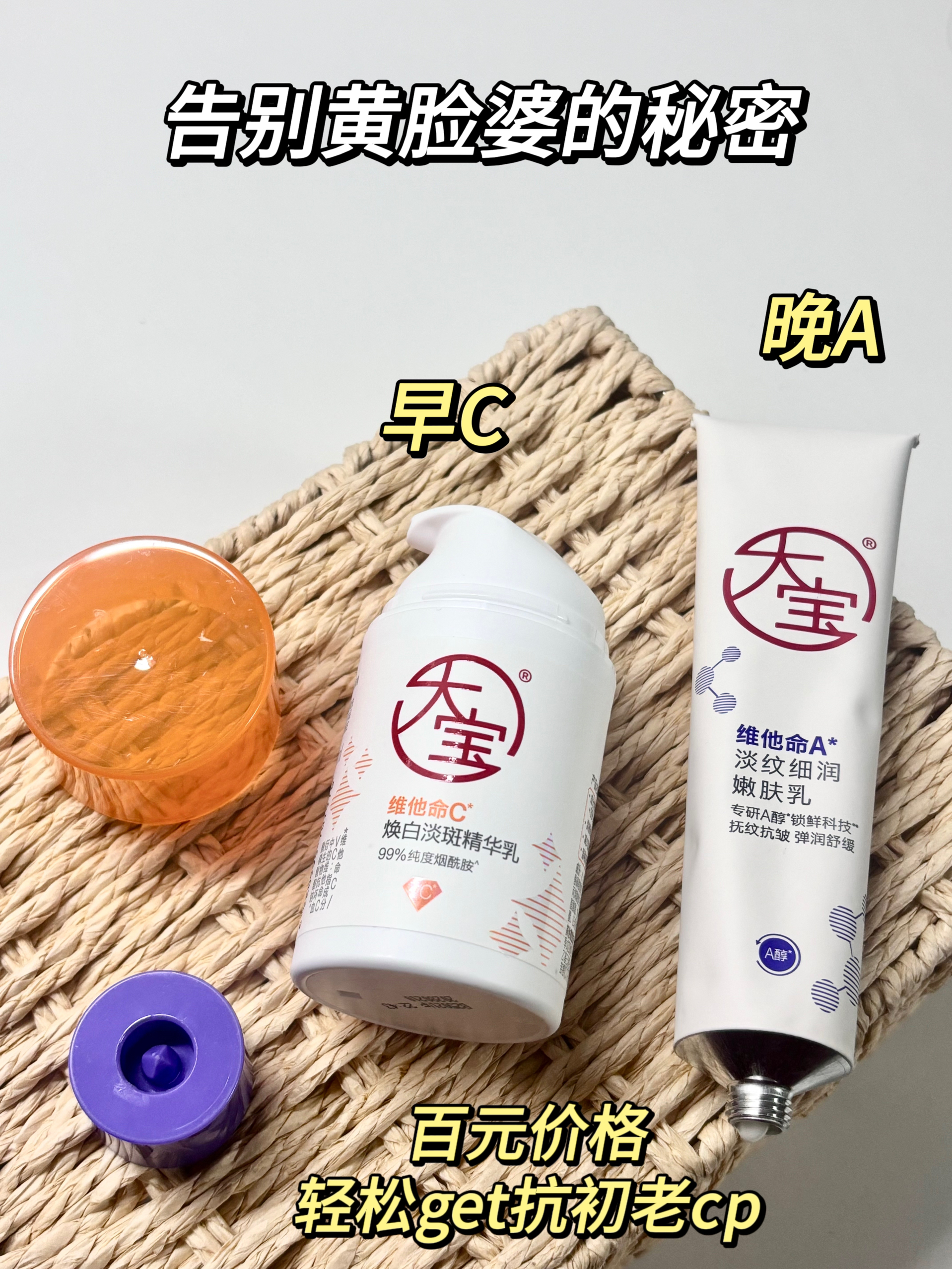 大宝你让我重新认识了 百元就可以搞定我的暗沉发黄的脸蛋子?可真的太行了 想要有效果还不花冤枉钱的不要错过 大宝VC精华乳➕大宝A醇简直是优秀CP组合 早C晚A护肤理念我是真的服了 单看成分就知道到底怎么回事啦 🧡大宝VC精华乳 95%高纯美白维他命C可以拦住致黑信号📶 99%高纯美白烟酰胺抑制黑色素转移到其他地方 效果1+1>2想变白真的很轻松 质地轻薄涂起来清爽不油腻 脸上的暗沉黄气通通退退退 ...