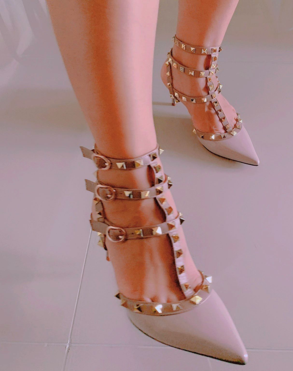 本篇笔记关联了Valentino Rockstud 休闲时尚 露跟 铆钉装饰 踝带 尖头 一字带 细跟 高跟鞋 裸粉/金色等商品,为用户提供真实的使用体验和购买参考。