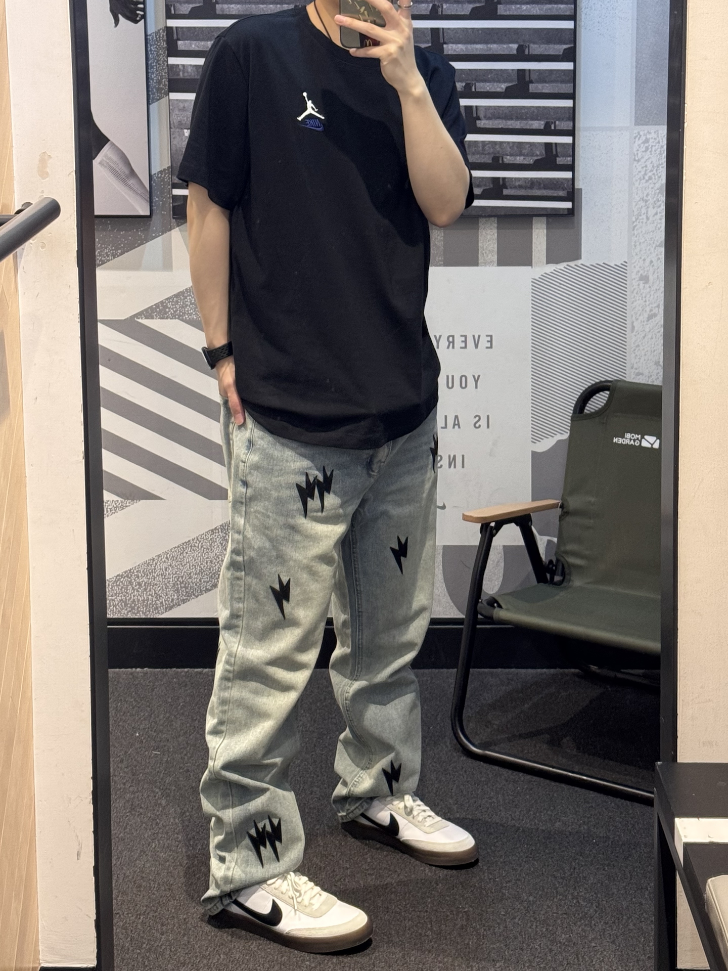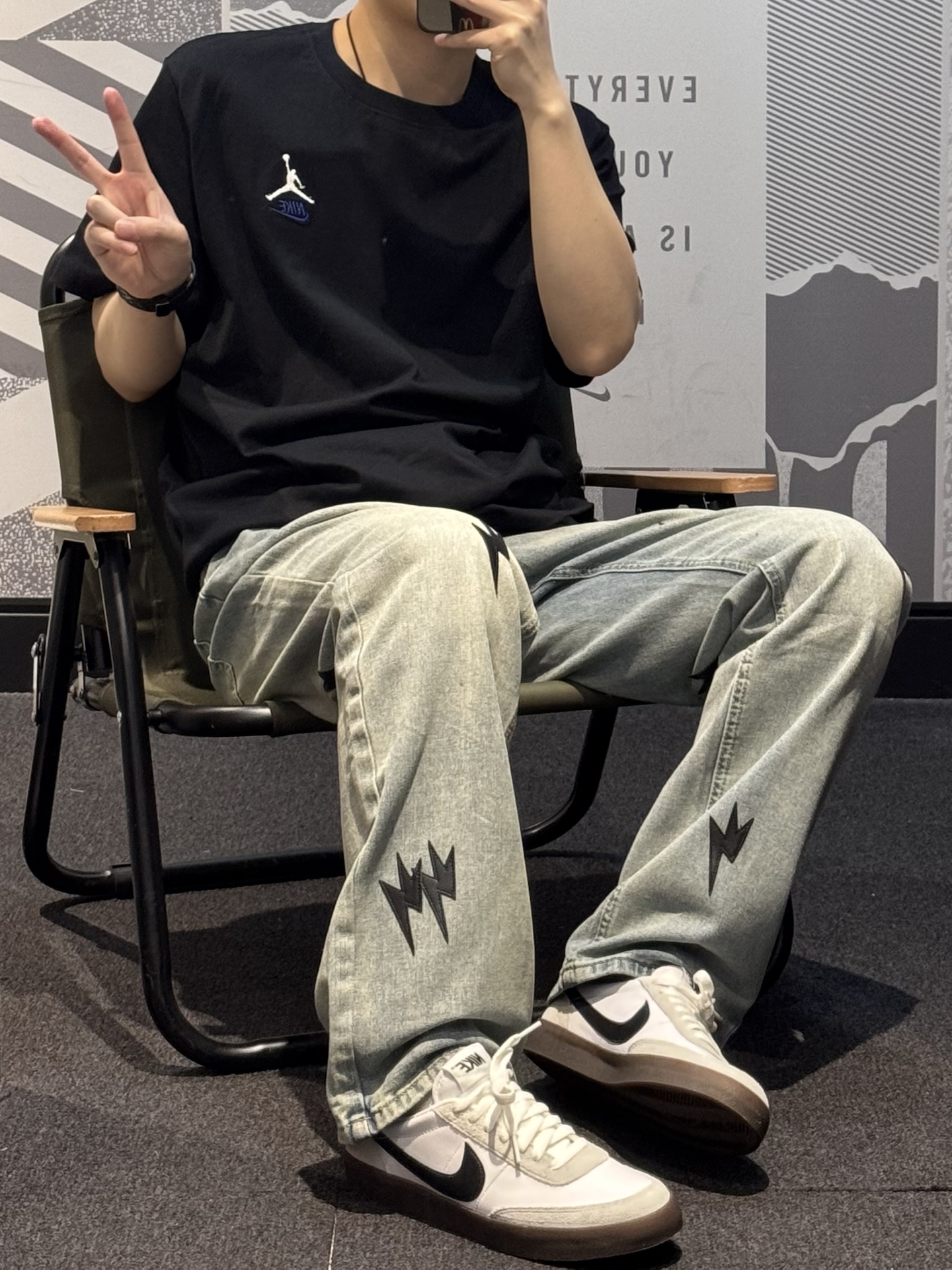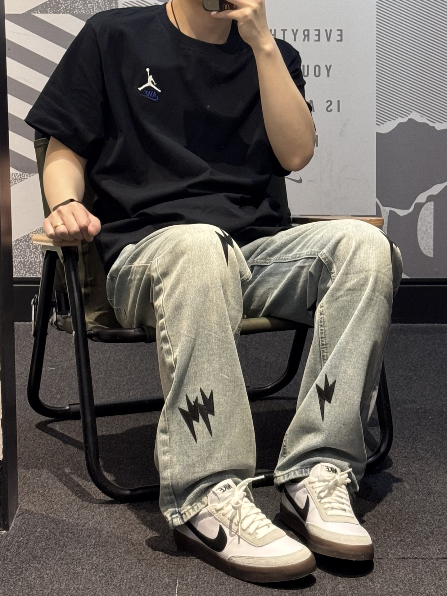 究竟谁懂这条牛仔裤的含金量啊😭 黑色闪电⚡️贴标也太帅噜~ 直筒版型 超好驾驭 不挑腿型 上身贼拉显瘦💢 水洗做旧质感满满 !! 搭配同色系版鞋➕黑色T恤简直酷到不行✌🏻 #一条神裤的无限可能 #给裤子做点减法 #我的态度穿身上 #我真的超会穿 #春夏时髦运动风