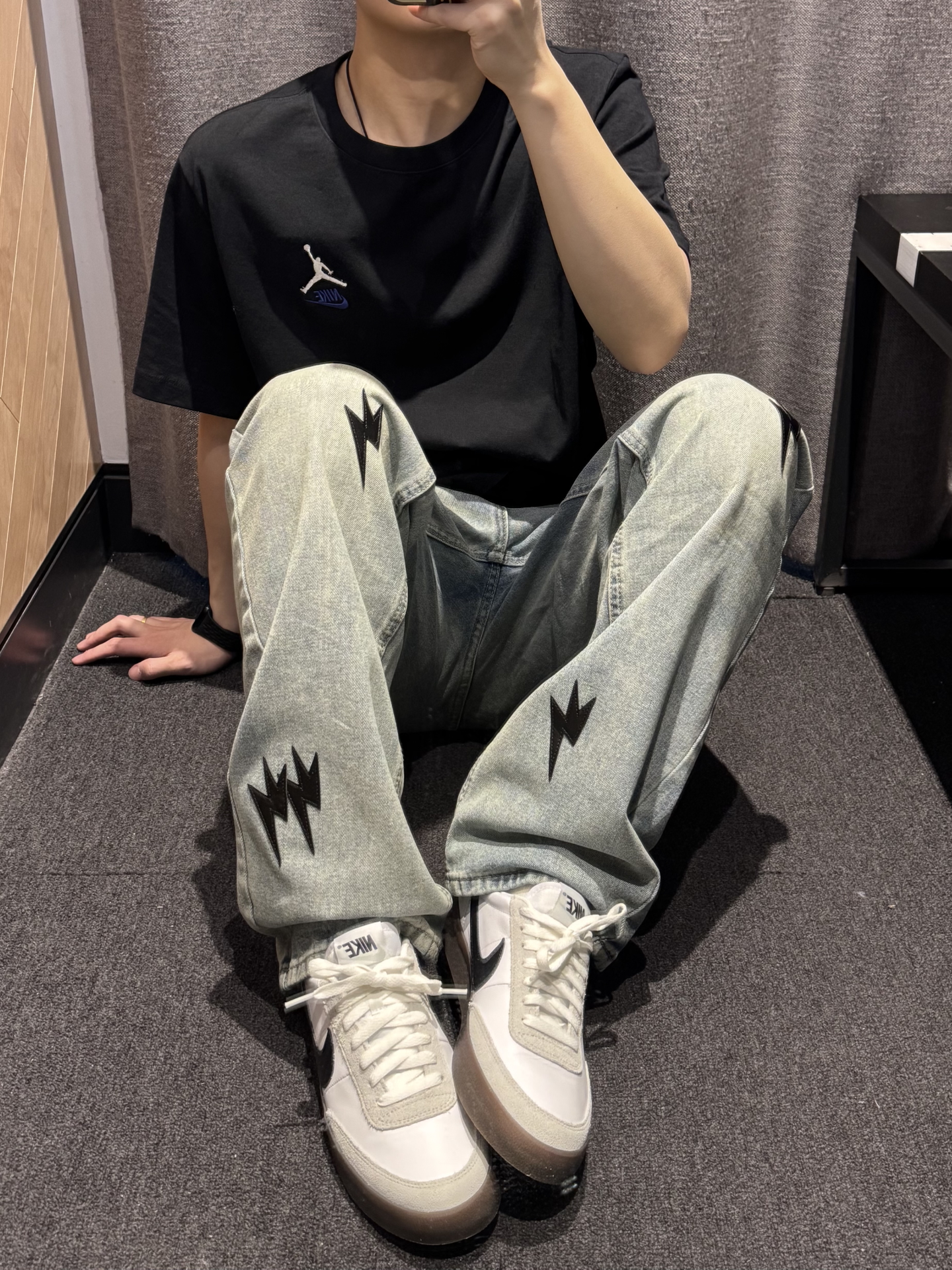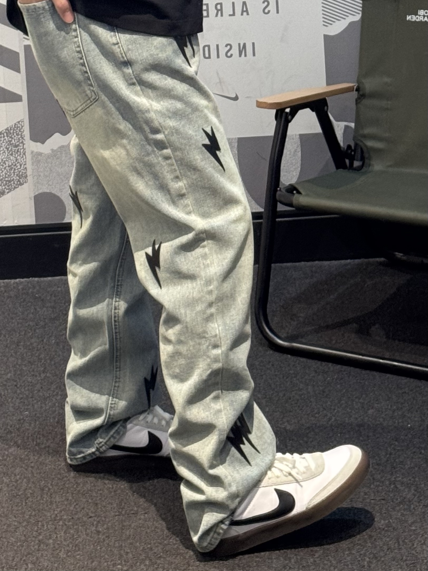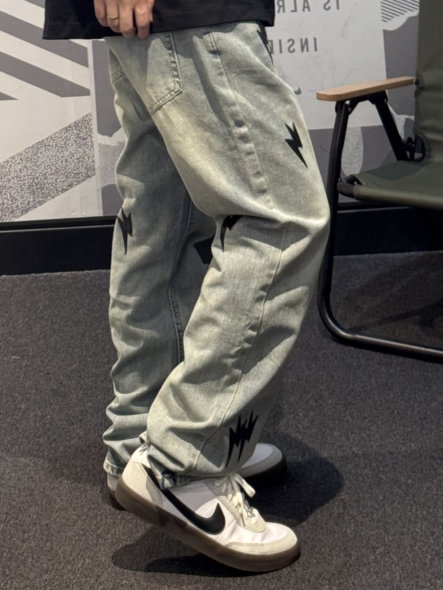 究竟谁懂这条牛仔裤的含金量啊😭 黑色闪电⚡️贴标也太帅噜~ 直筒版型 超好驾驭 不挑腿型 上身贼拉显瘦💢 水洗做旧质感满满 !! 搭配同色系版鞋➕黑色T恤简直酷到不行✌🏻 #一条神裤的无限可能 #给裤子做点减法 #我的态度穿身上 #我真的超会穿 #春夏时髦运动风